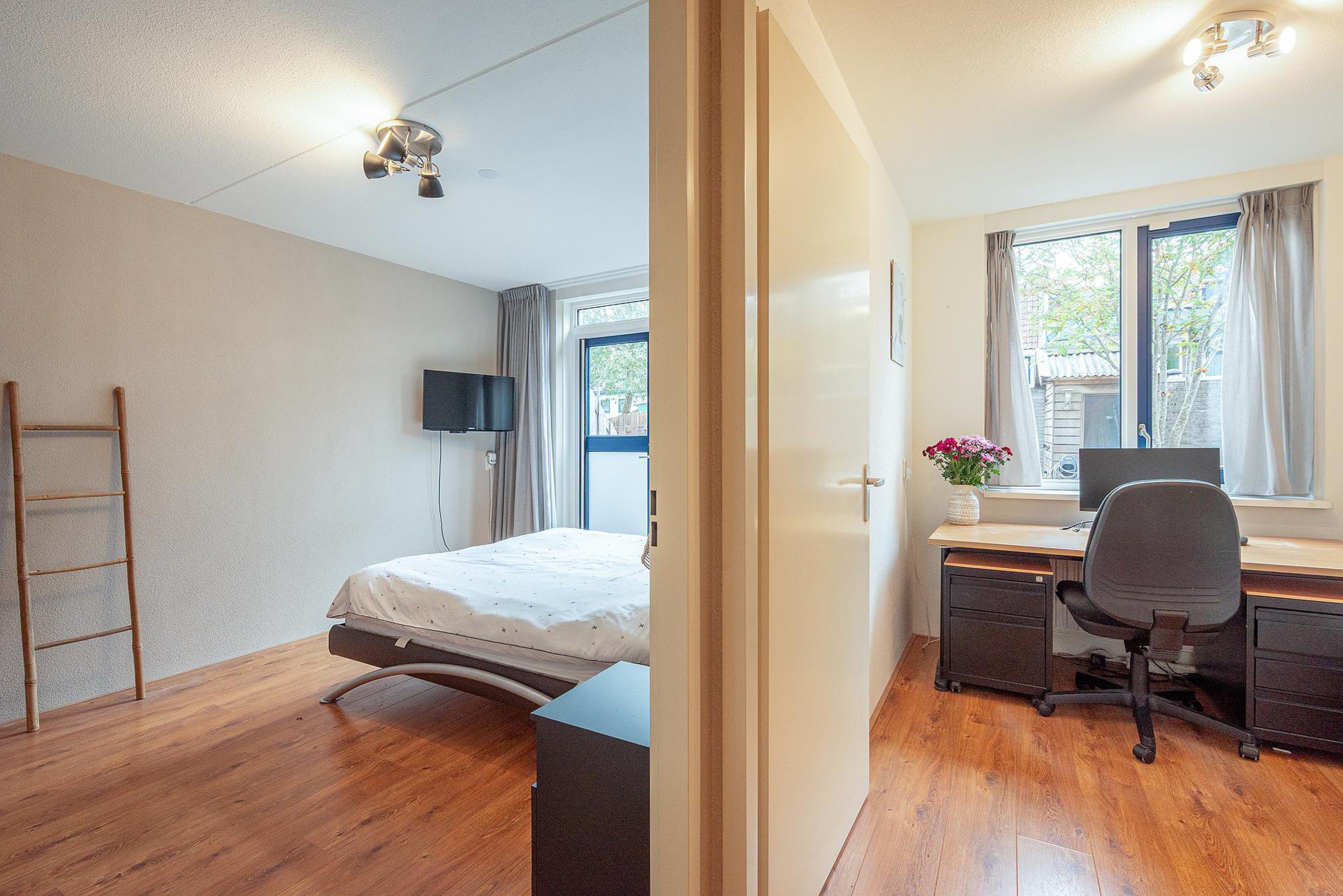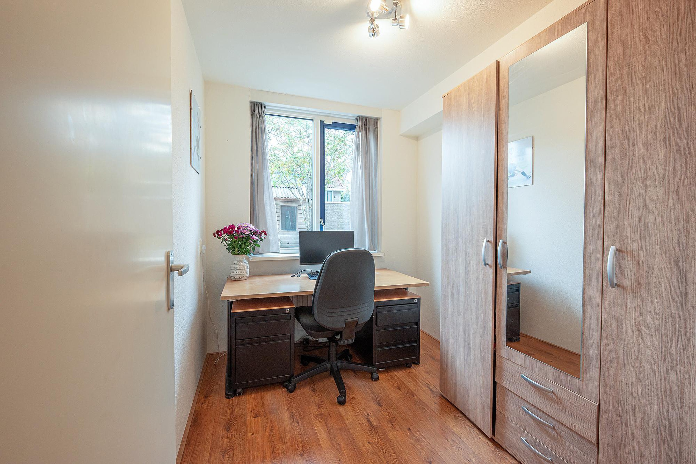 De grootste slaapkamer is voorzien van een vaste kast met schuifdeuren en vanuit deze slaapkamer openslaande deuren naar de achtertuin.