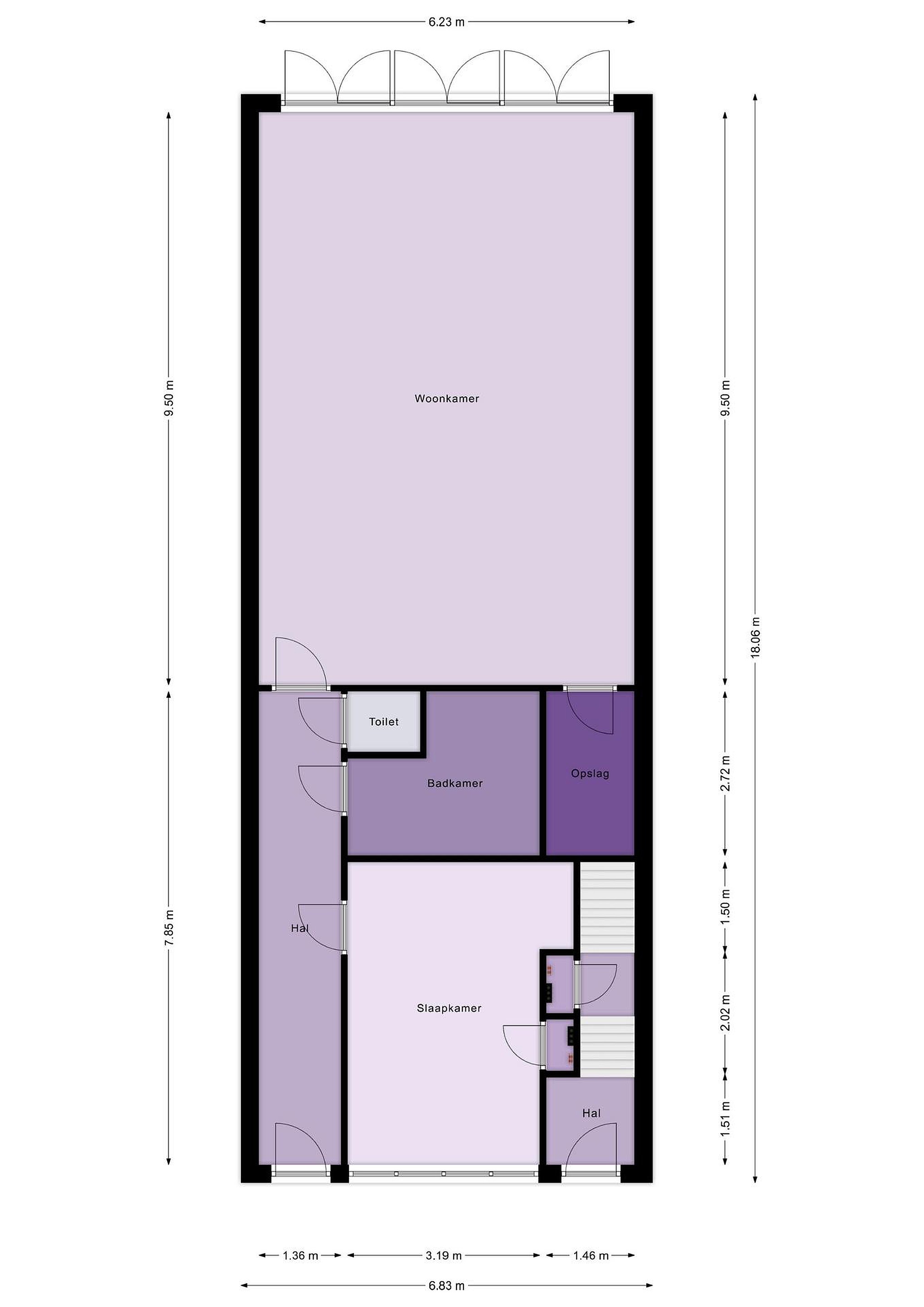De woning is praktisch en eigentijds ingedeeld. Vanuit de hal bereik je de slaapkamer aan de voorzijde, het separate toilet en de moderne badkamer. De woonkamer is royaal en licht, met openslaande deuren naar de tuin. Aan de achterzijde bevindt zich de nieuwe keuken, volledig uitgevoerd met moderne inbouwapparatuur. In een inpandige kast zijn de cv-installatie en aansluitingen voor wasmachine en droger netjes weggewerkt. Door de gehele woning ligt een stijlvolle visgraatvloer met vloerverwarming en alle wanden zijn strak gestuct en sausklaar.