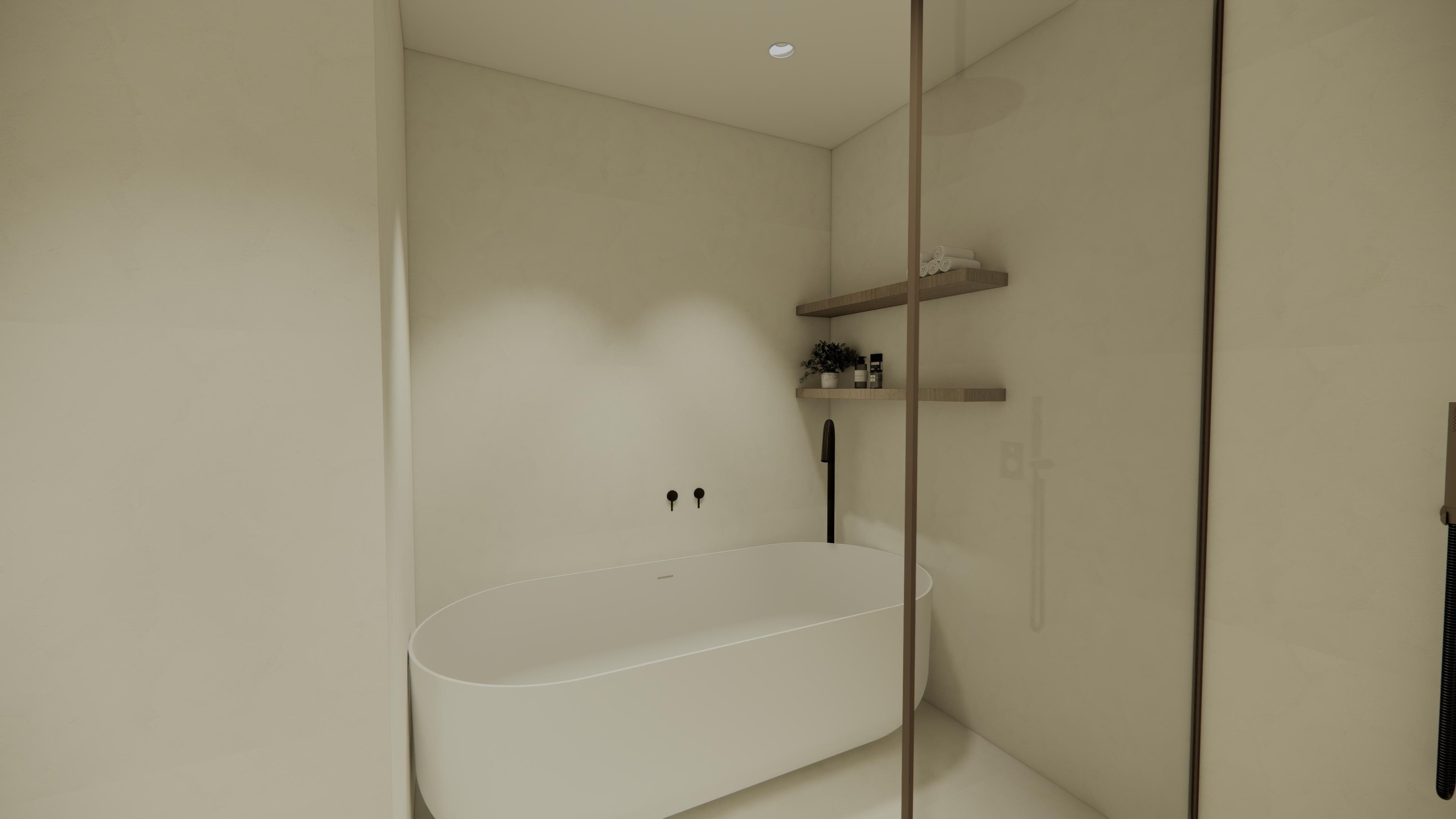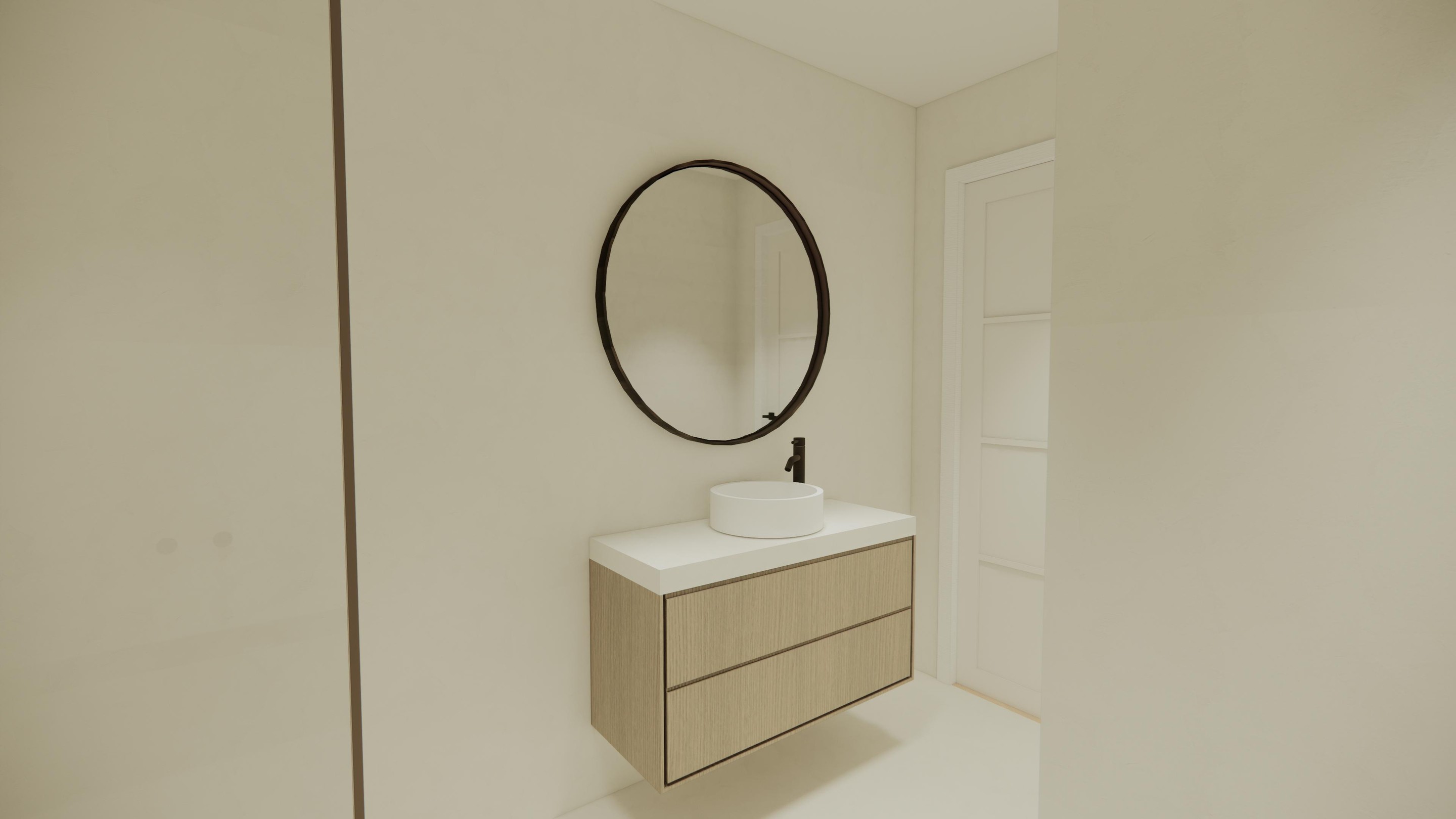 * Nieuwe badkamer met inloopdouche en wastafelmeubel