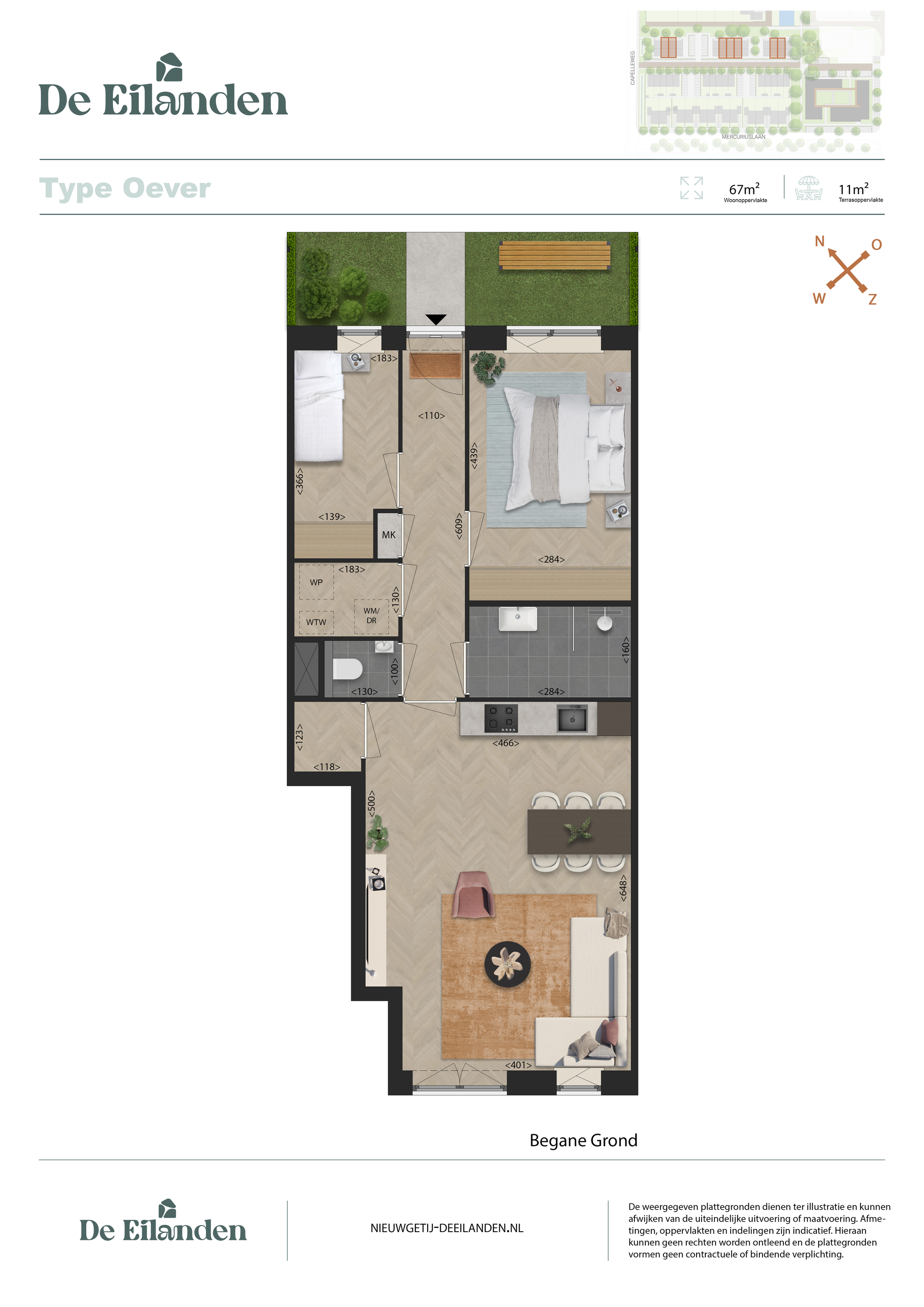De gelijkvloerse tuinwoningen van De Eilanden zijn gemaakt voor wie rustig en comfortabel wil wonen in Oude Tonge, met alles binnen handbereik. U woont hier gelijkvloers, met een eigen entree, veel licht en een buitenruimte aan de groene zijde van het plan. Dat maakt deze woningen prettig voor wie nu al gemak zoekt, maar ook voor wie later geen trap meer wil lopen.