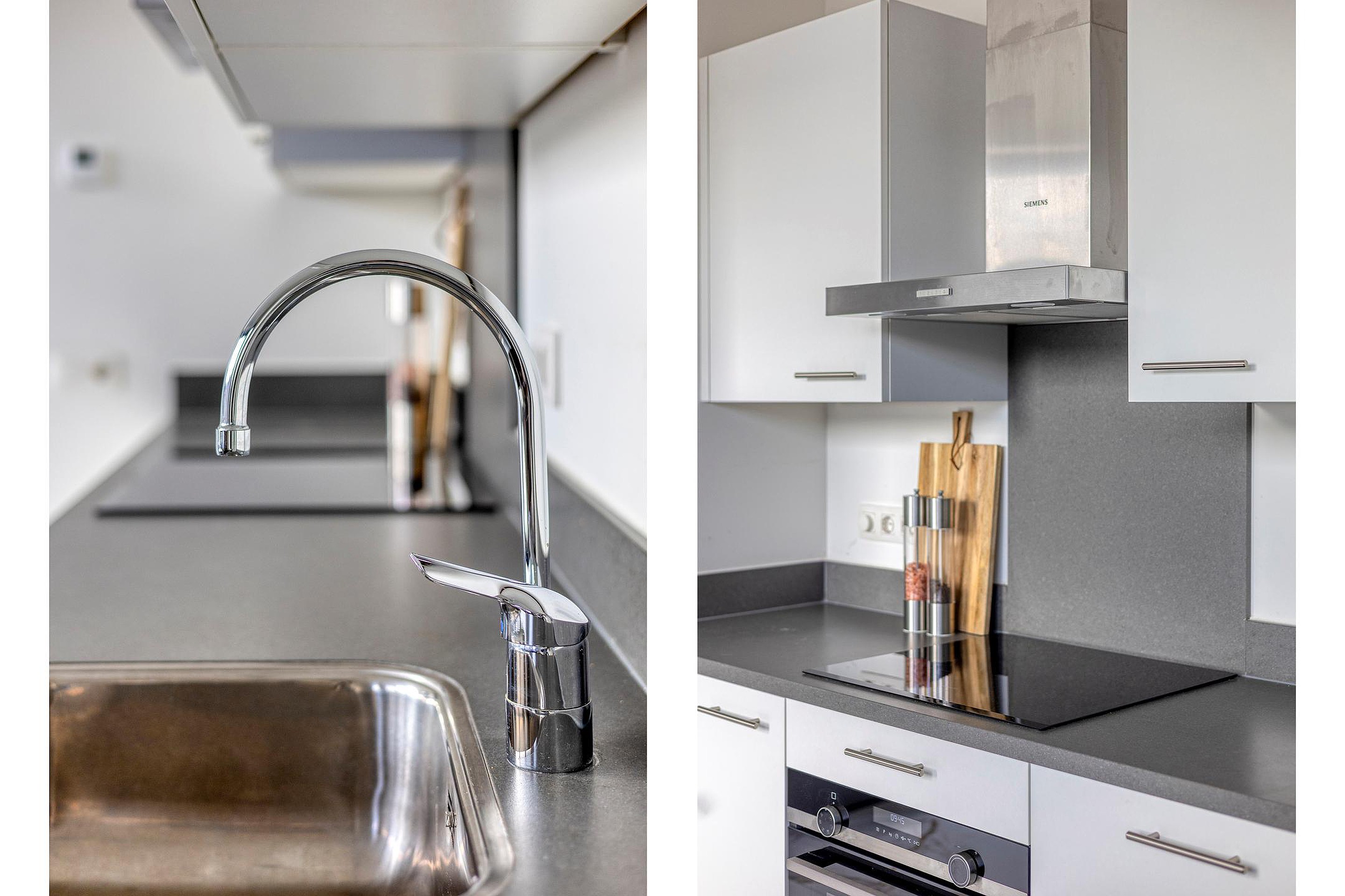 - Open keuken met hoogwaardige Siemens inbouwapparatuur (inductiekookplaat, combi-oven, koelkast, afzuigkap en vaatwasser)