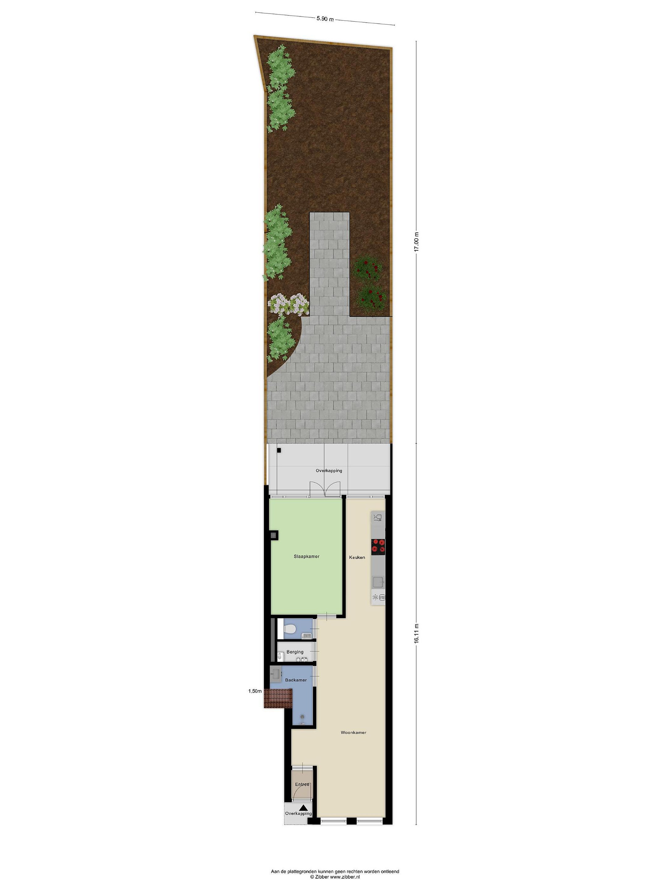 - Zeer diepe achtertuin, circa 100 m2