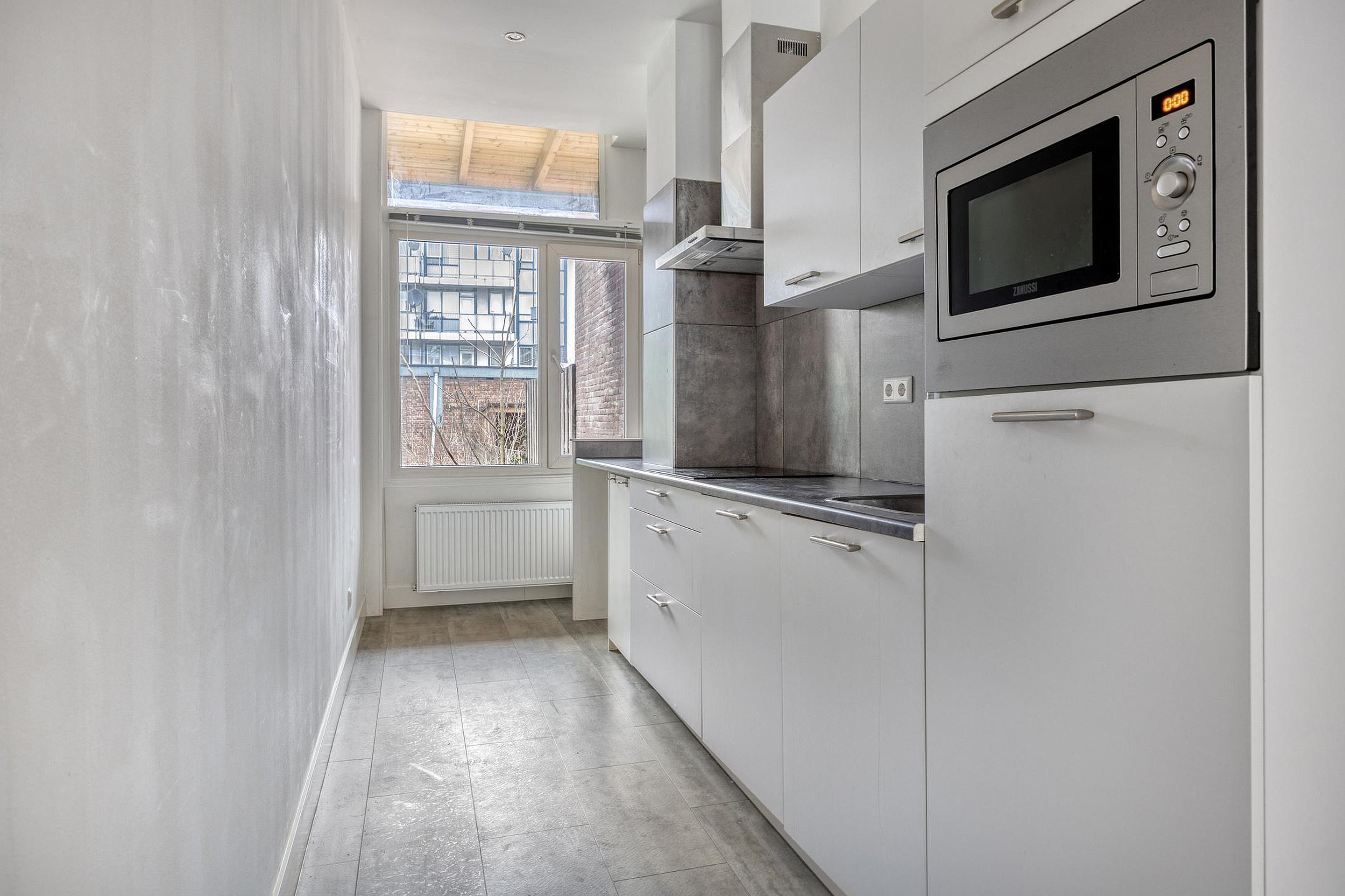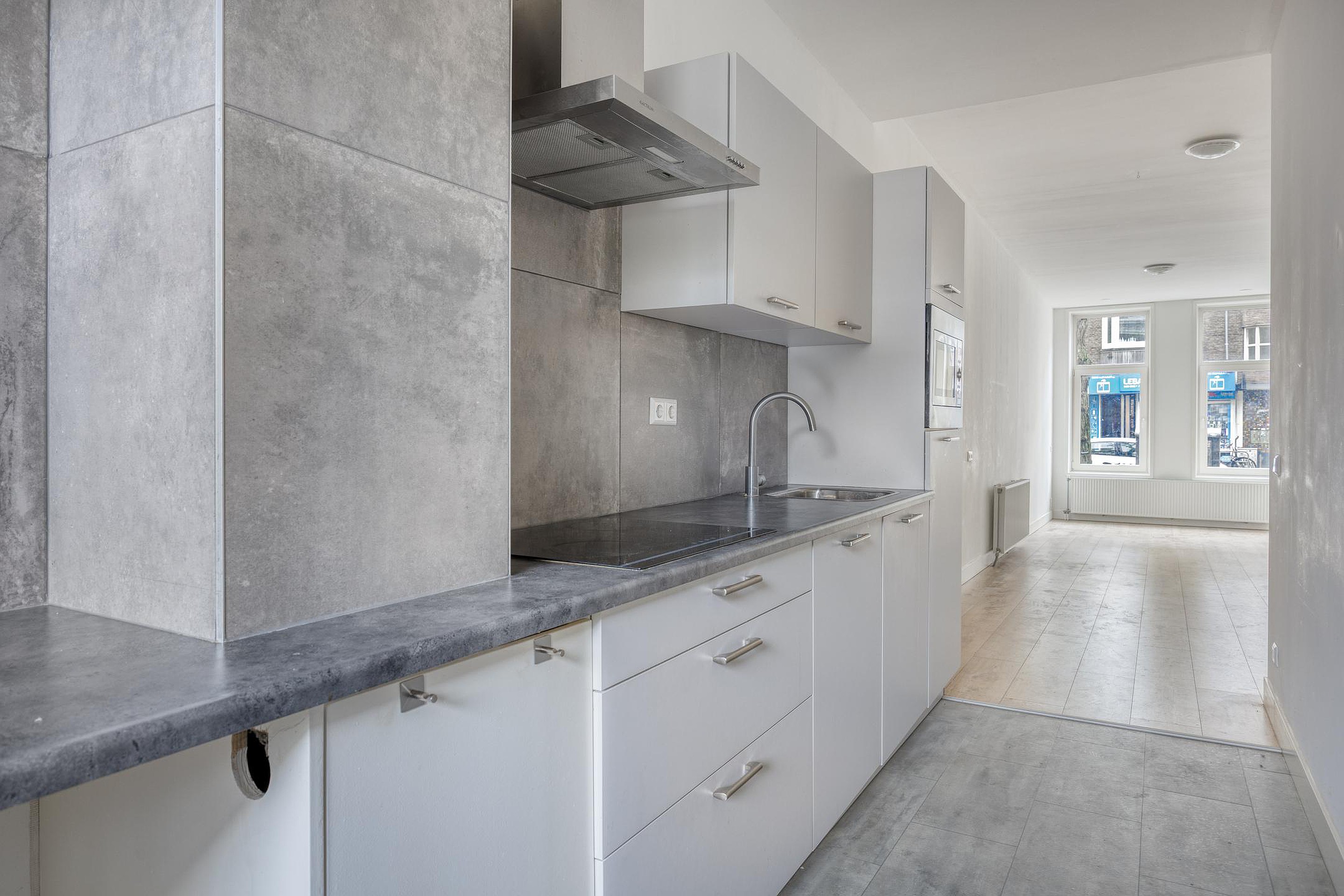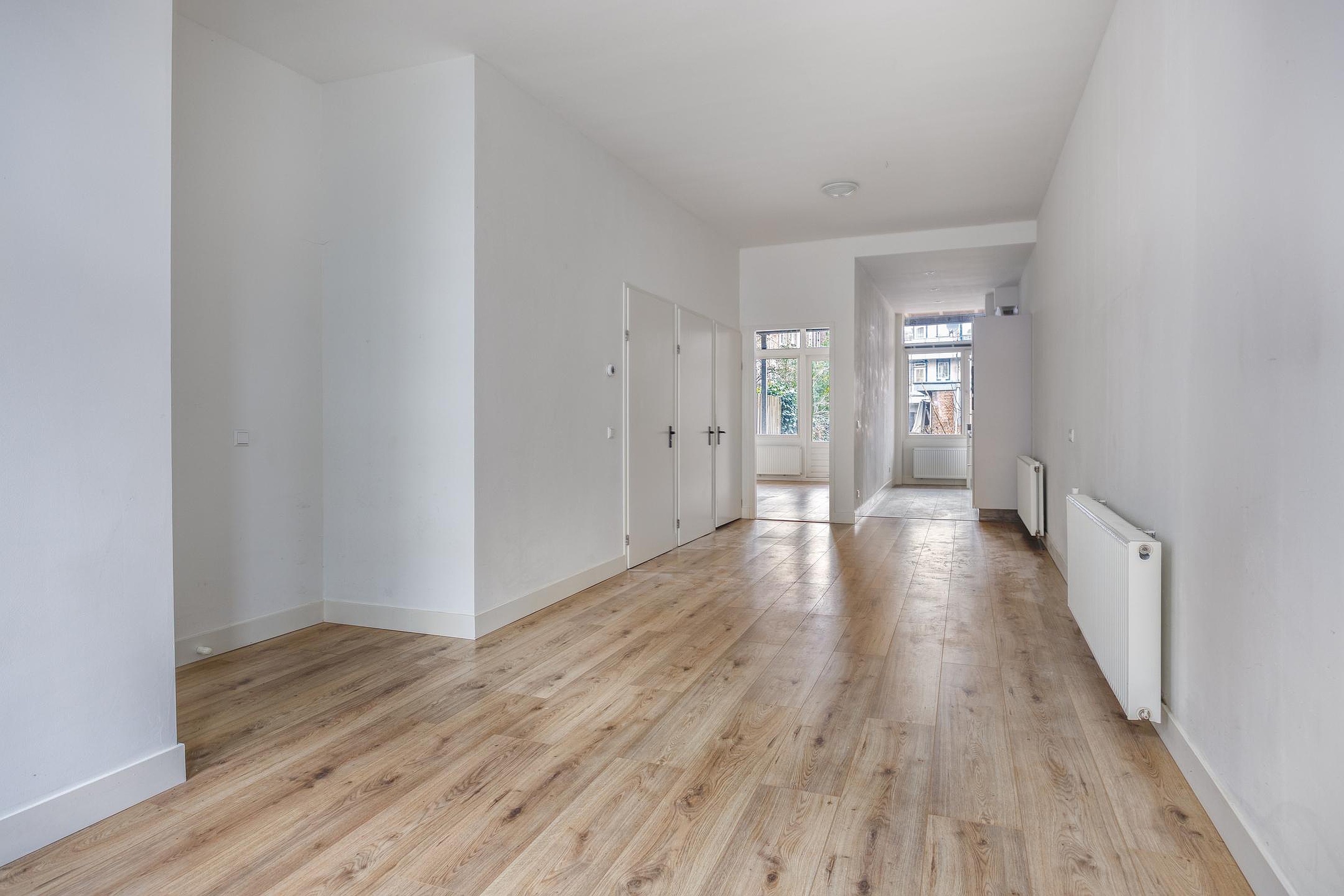 Diepe woonkamer aan de voorzijde. Badkamer met douche en wastafel. Separaat toilet. Fijne halfopen keuken aan de achterzijde, voorzien van inbouwapparatuur Ruime slaapkamer aan de achterzijde met toegang tot de fantastische 19 meter diepe achtertuin op het noordwesten.