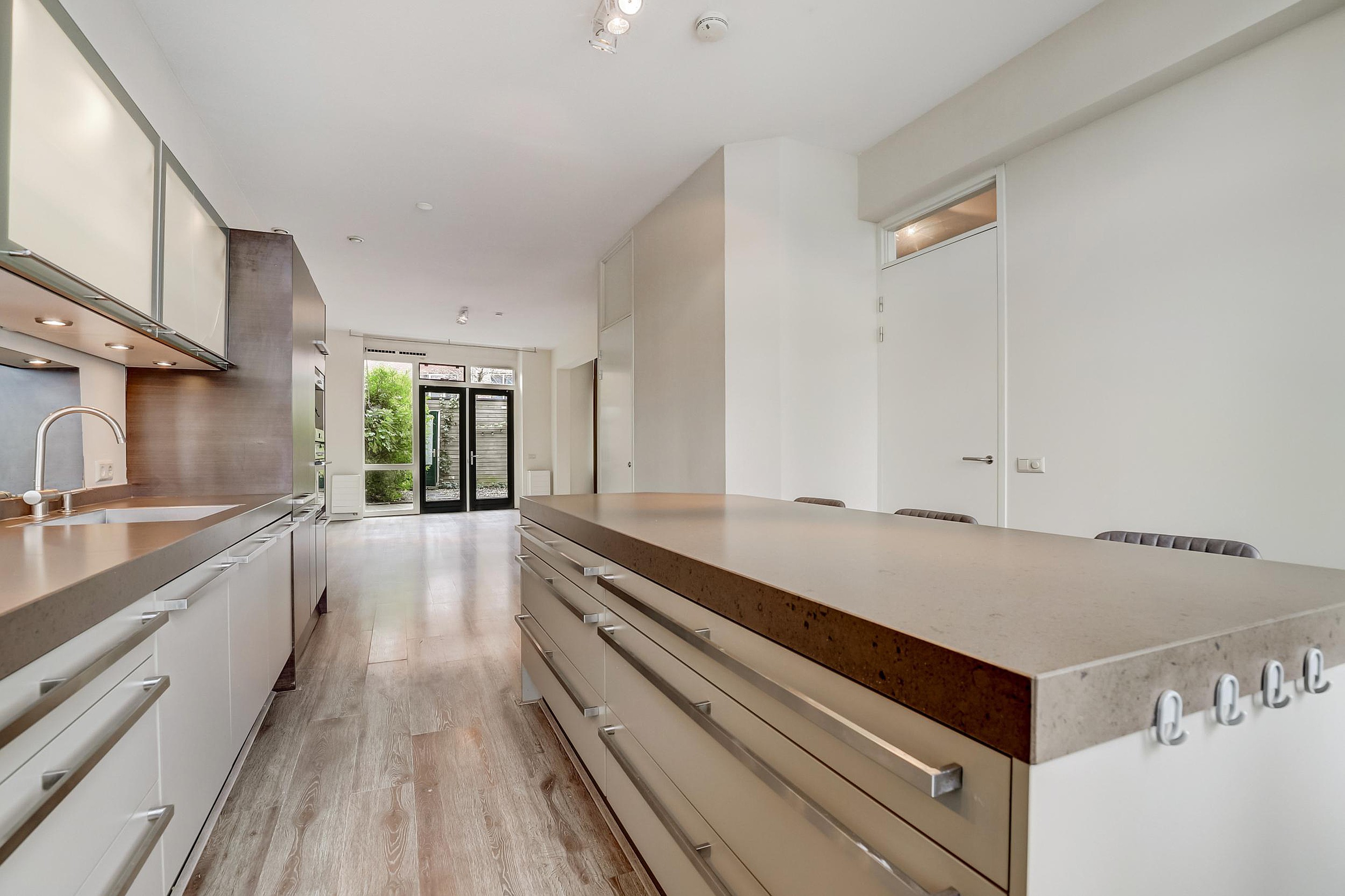 De woonkeuken heeft met een goede lichtinval door de grote gezellige raampartij.