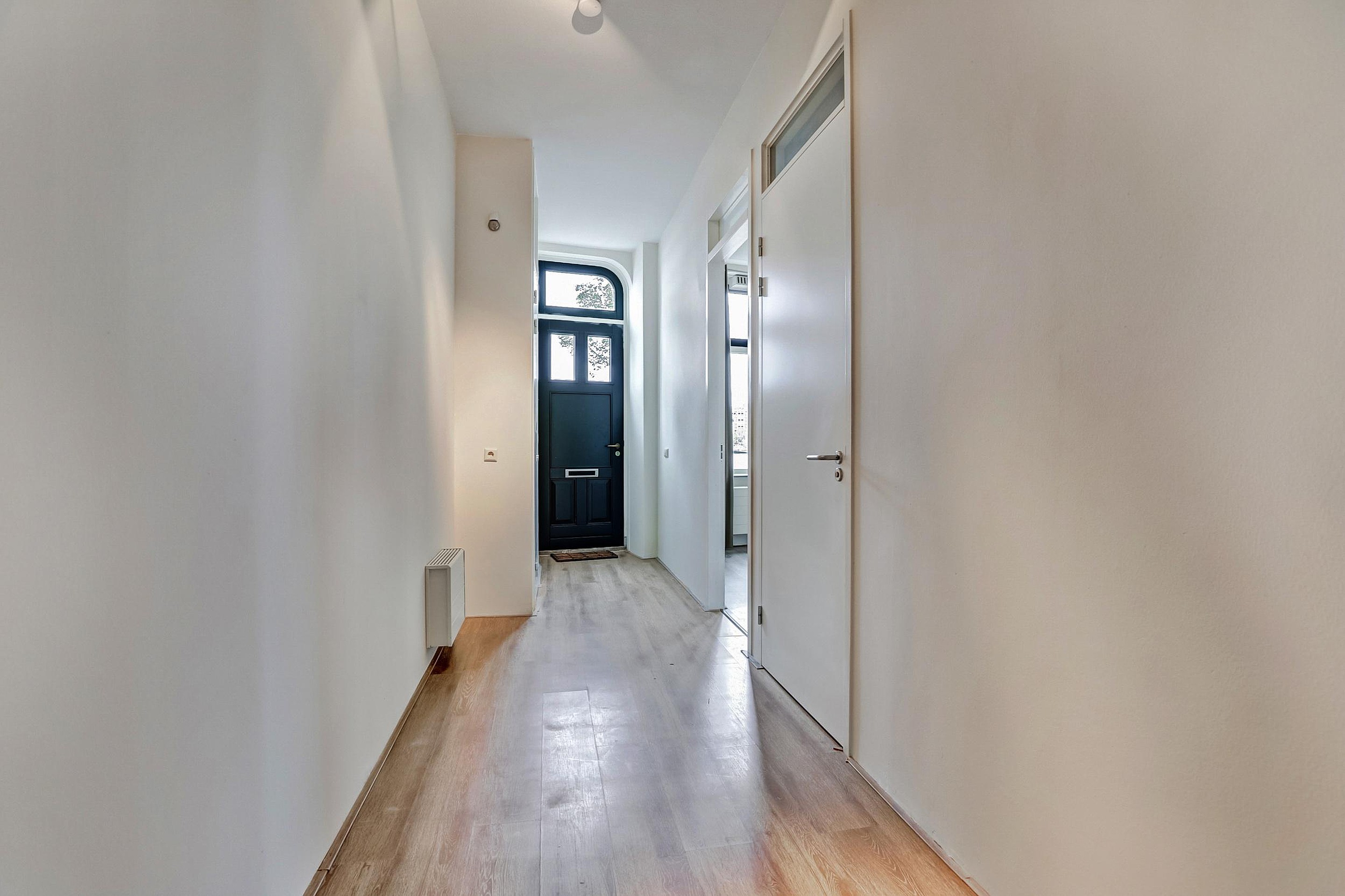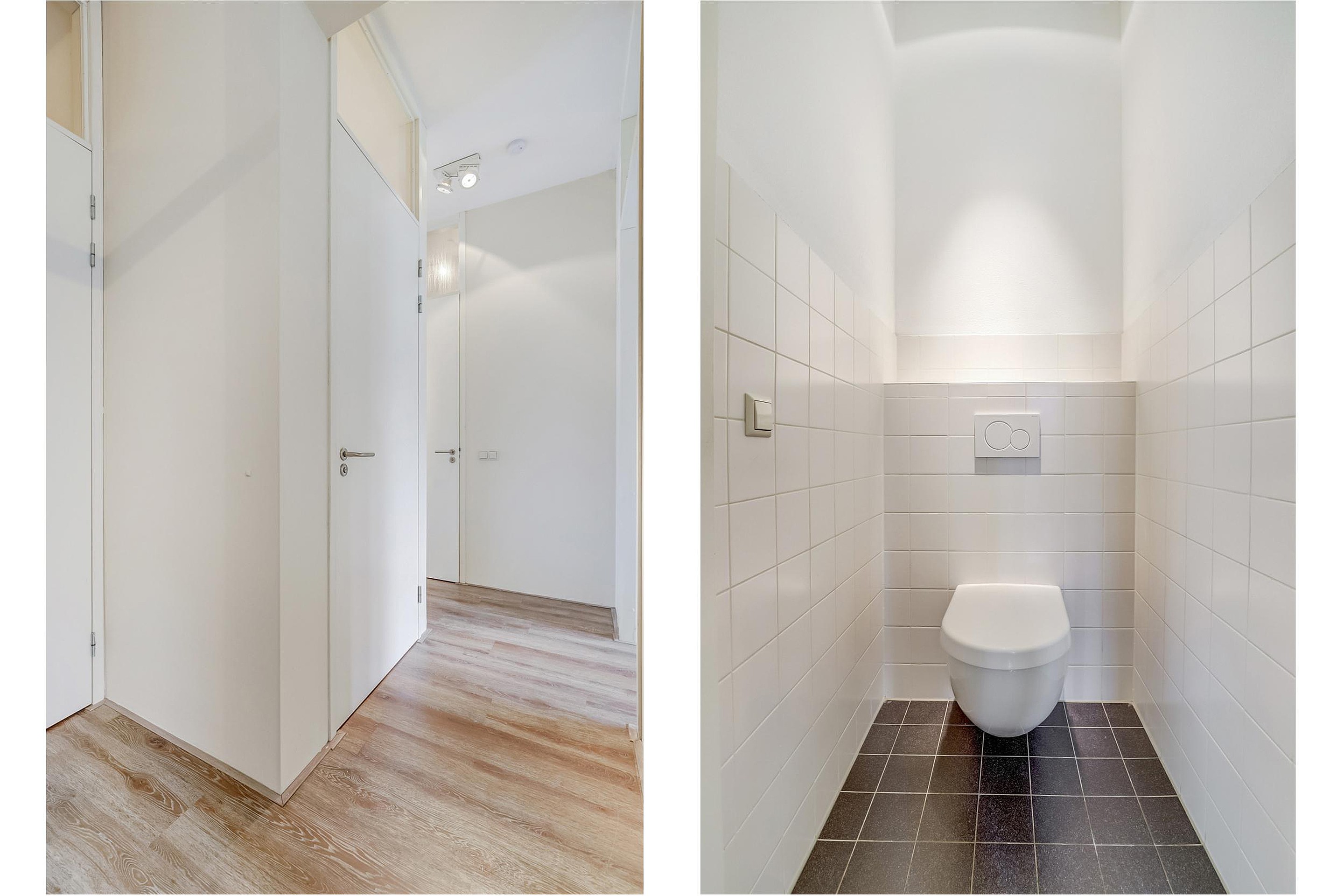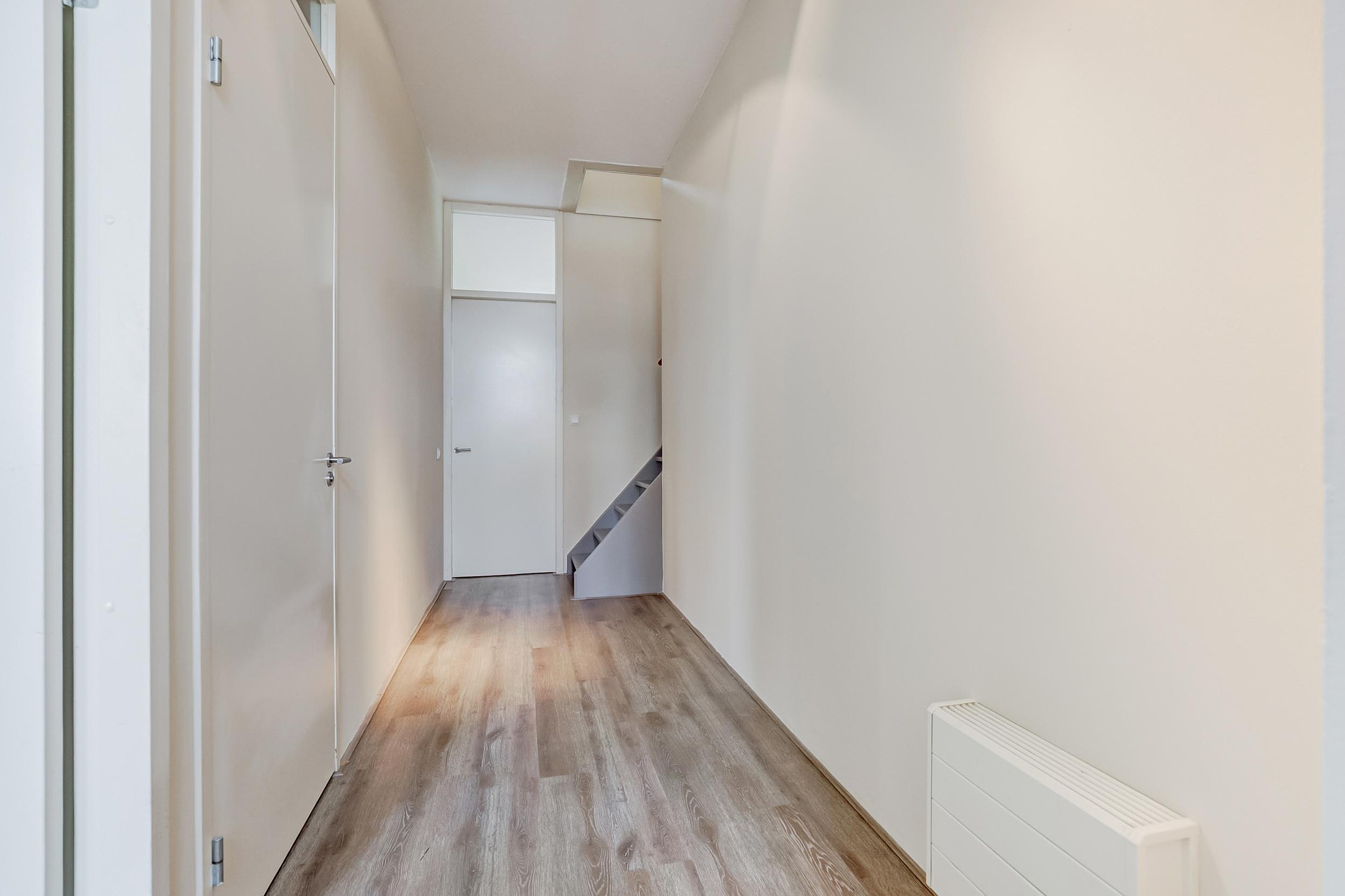 Je komt eerst in een zeer royale gang met toilet en meterkast en dan kun je kiezen voor toegang naar de woonkeuken of verder in de gang direct het woongedeelte in te lopen.