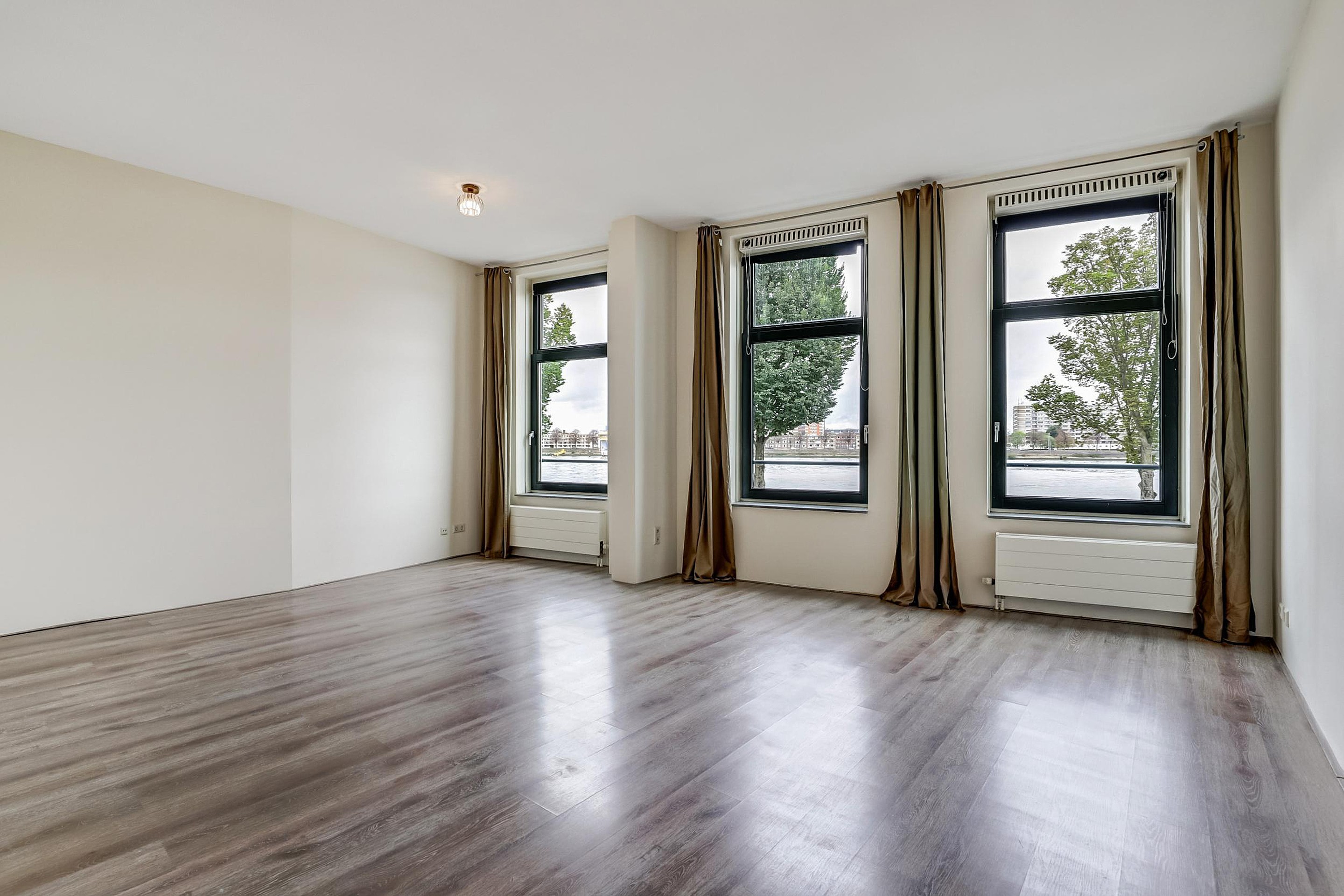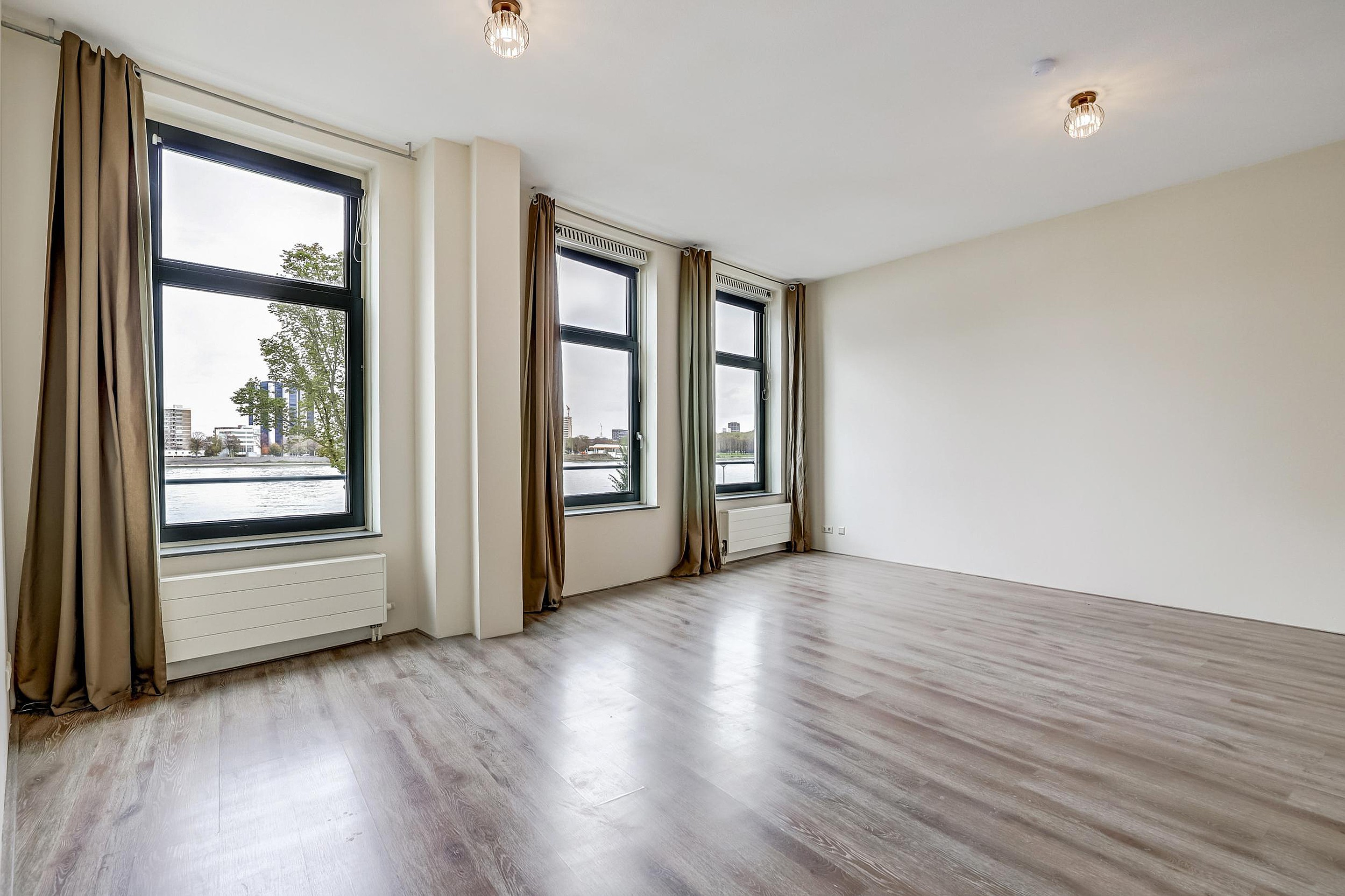 De drie royale slaapkamers zijn voorzien van een lichte en deels kleurrijke wandafwerking en je kunt een nieuwe vloer door laten lopen waardoor alle ruimtes een geheel vormen. Bovendien is er in iedere kamer een grote raampartij geplaatst die zorgt voor een uitstekende inval van daglicht waardoor er een rustgevende sfeer ontstaat. Als je de gordijnen openschuift kijk je uit over de Maas of de groene binnen tuinen aan de achterzijde van het charmante wooncomplex.