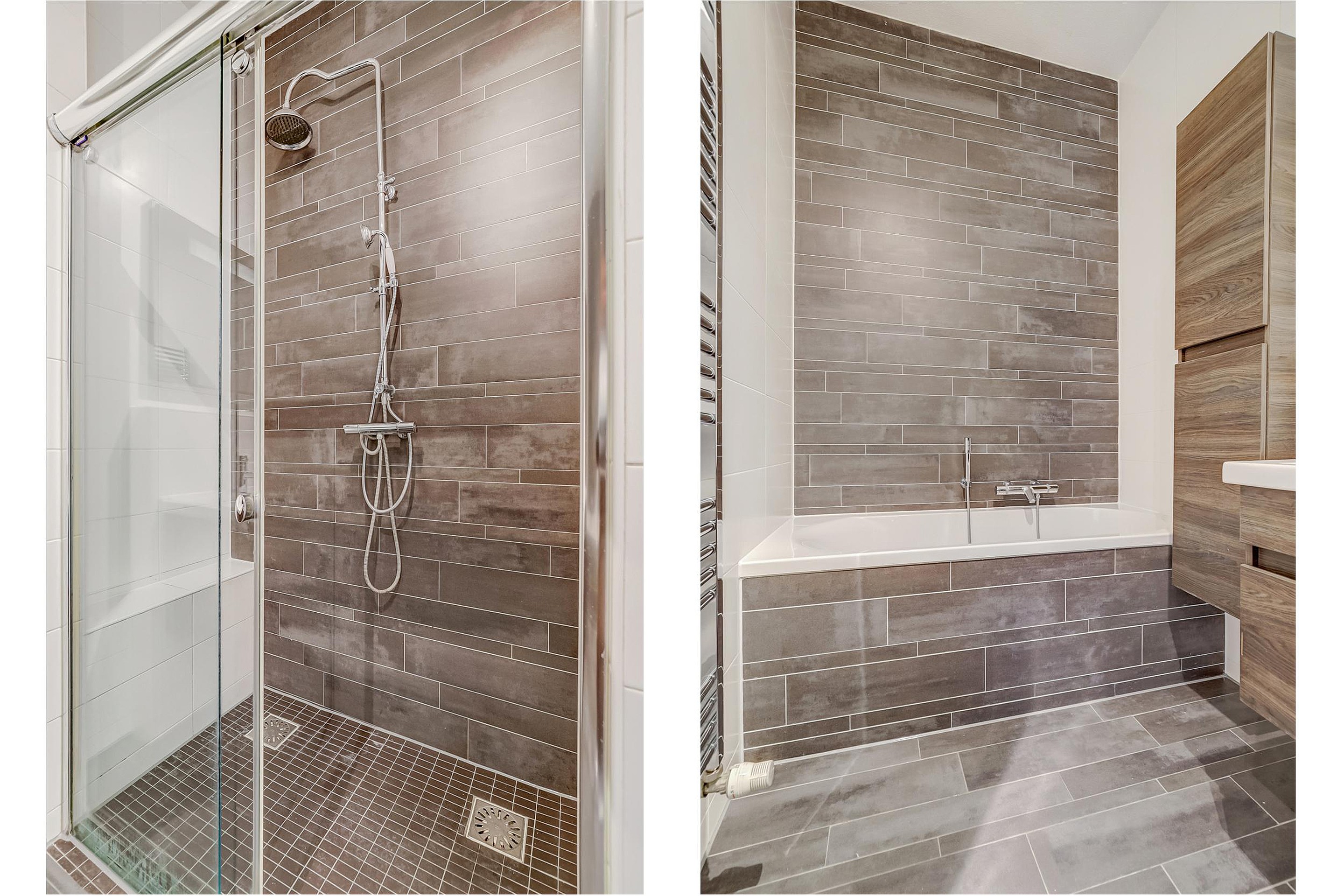 In de gang is een grote inpandige berging, 2e toilet en een wasmachine ruimte. De badkamer is ruim en heeft een grote inloopdouche, ligbad, chromen design radiator en dubbel wastafelmeubel.