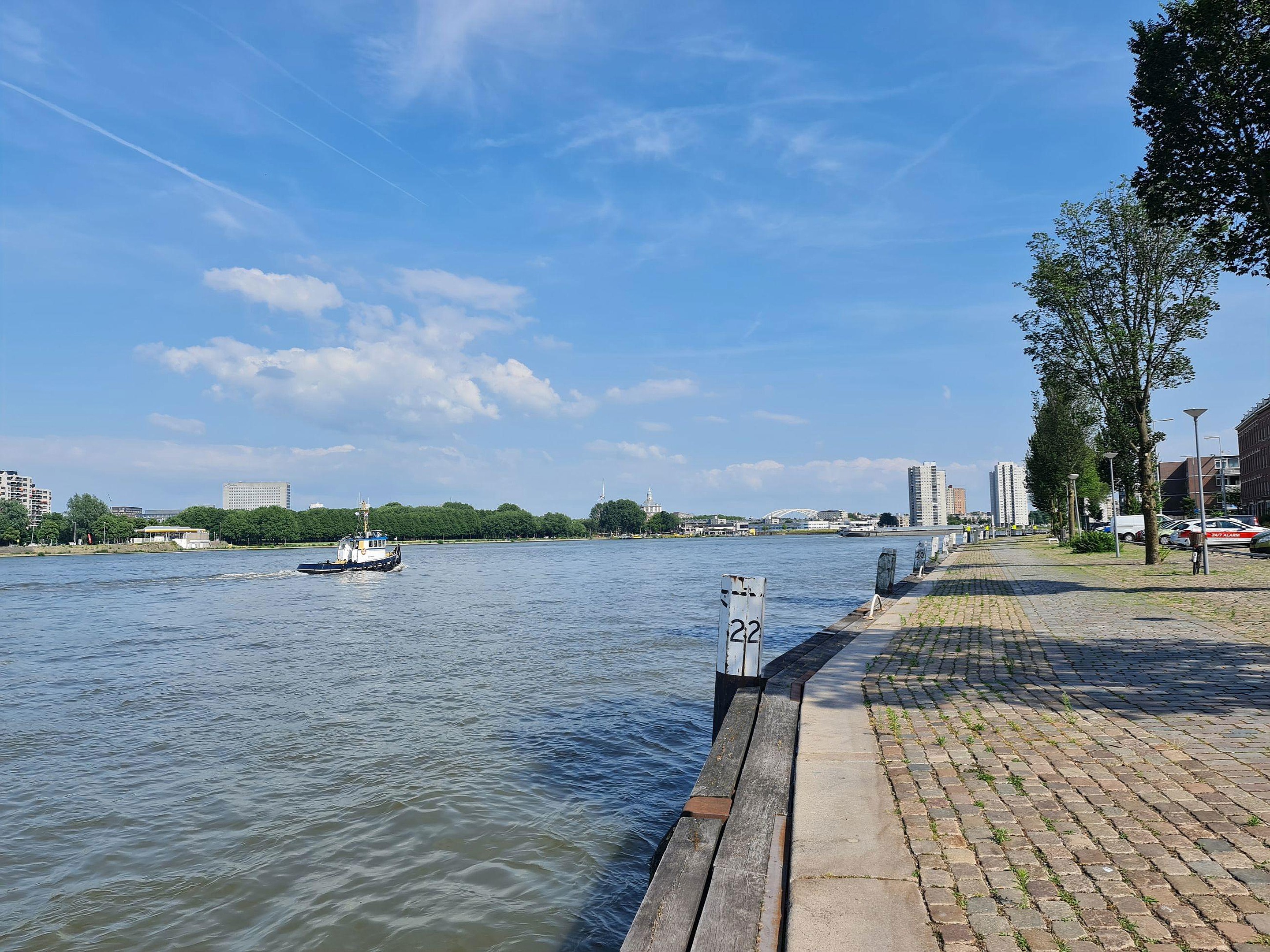 Op deze locatie ben je altijd verzekerd van vrij uitzicht over de Maas met scheepvaartverkeer en zicht op Kralingen en de stad. Ligt ook lekker centraal want met de fiets ben je in 10 minuten in het stadscentrum.