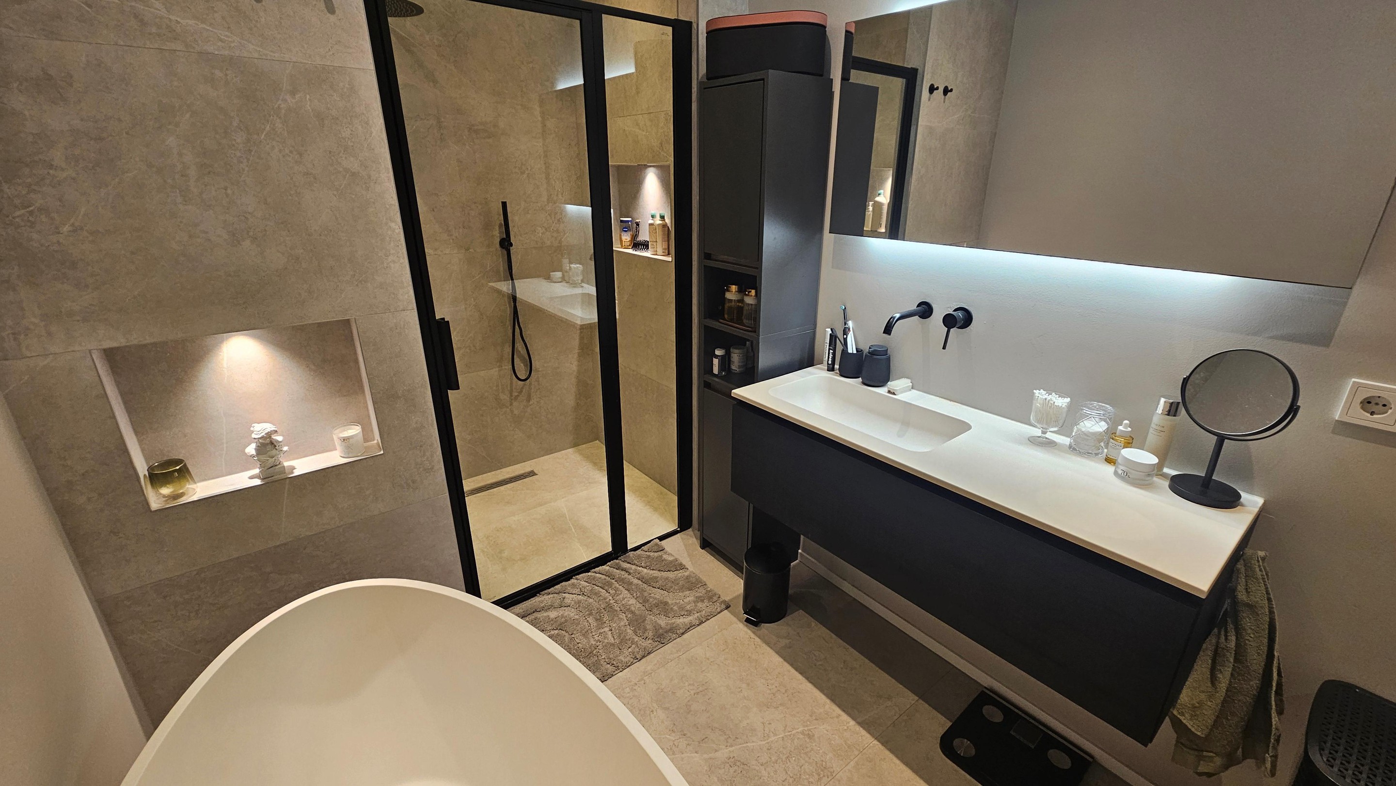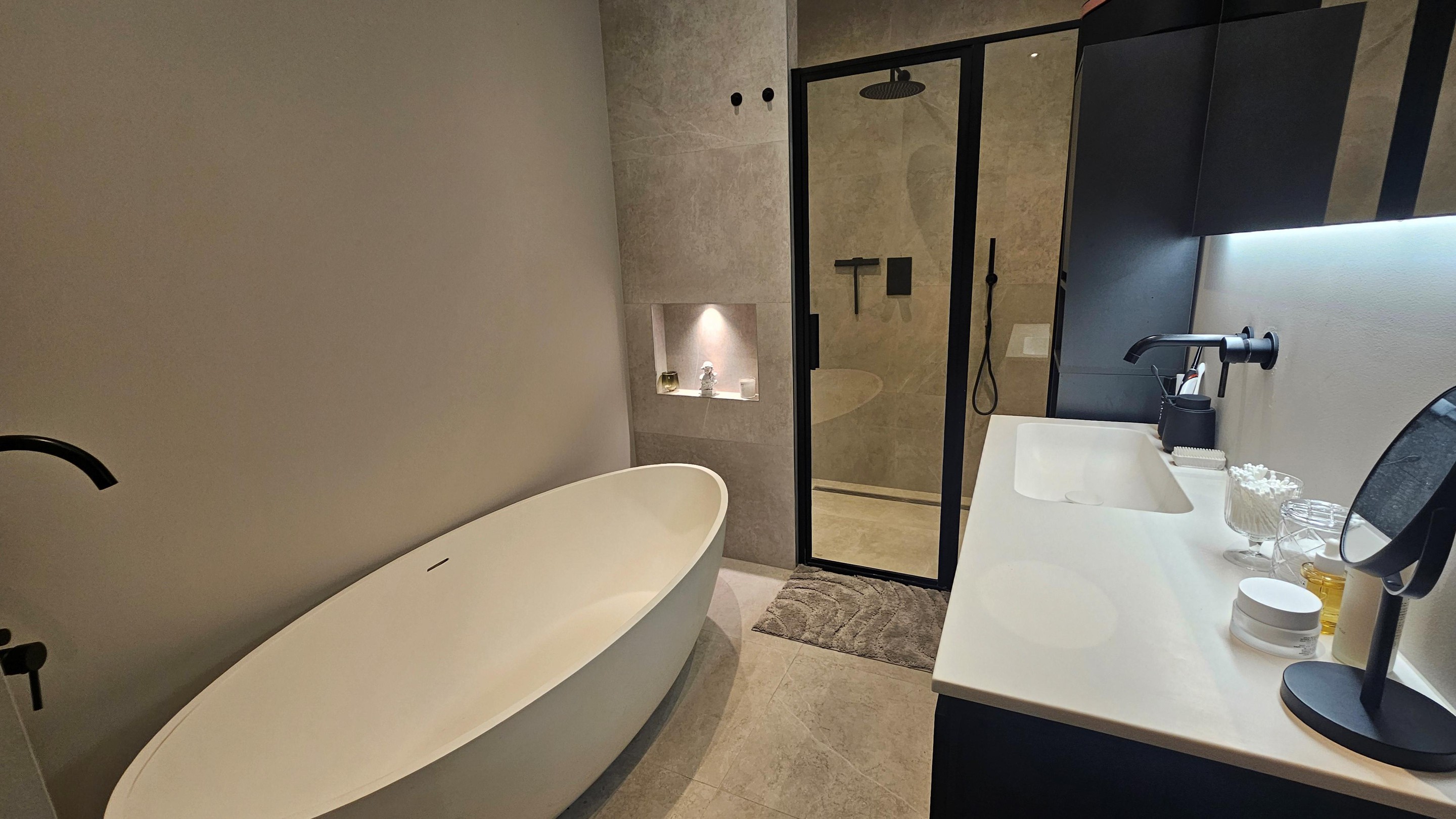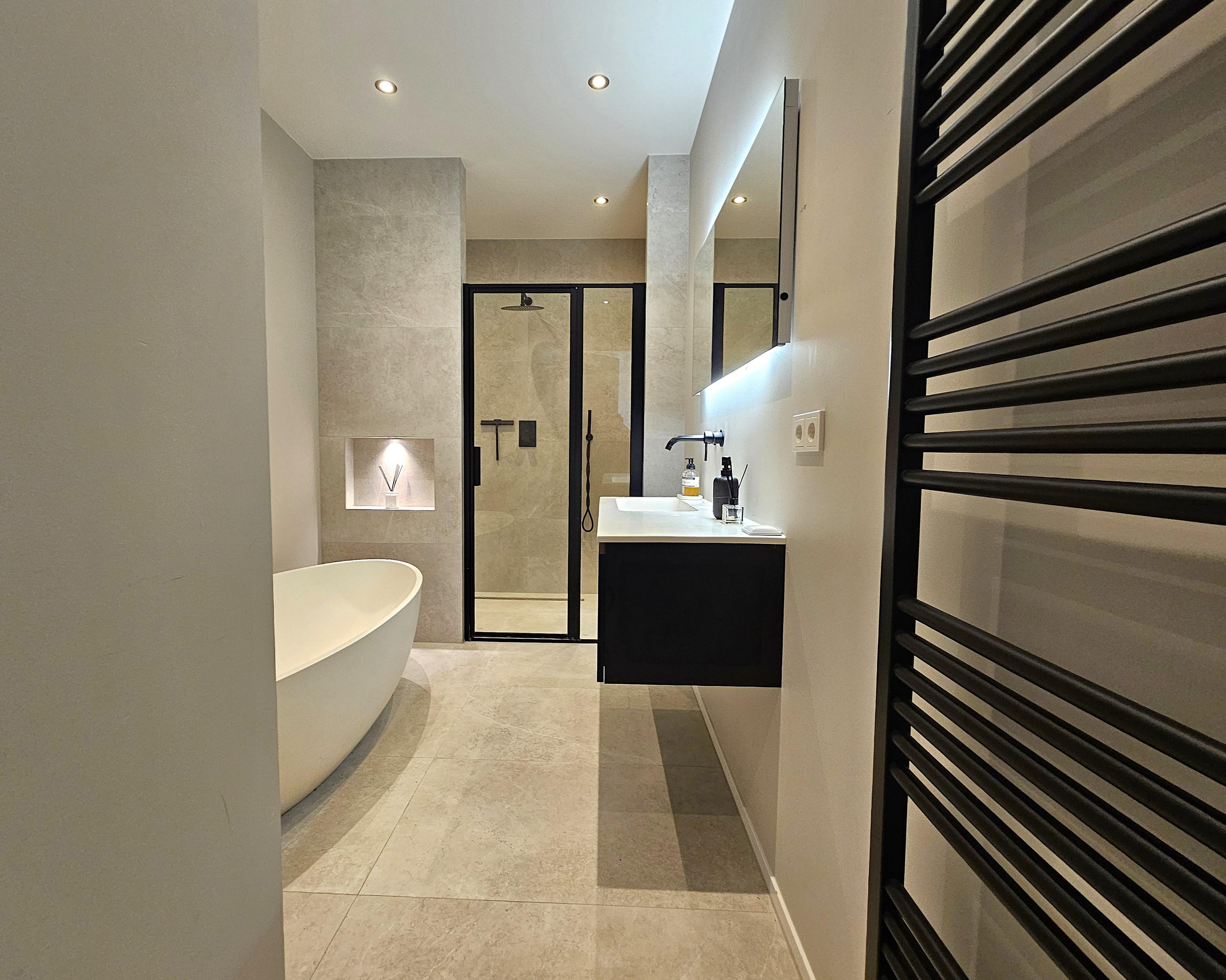 Luxe badkamer: ca. 9 m2 met inloopdouche, ligbad, dubbele wastafel