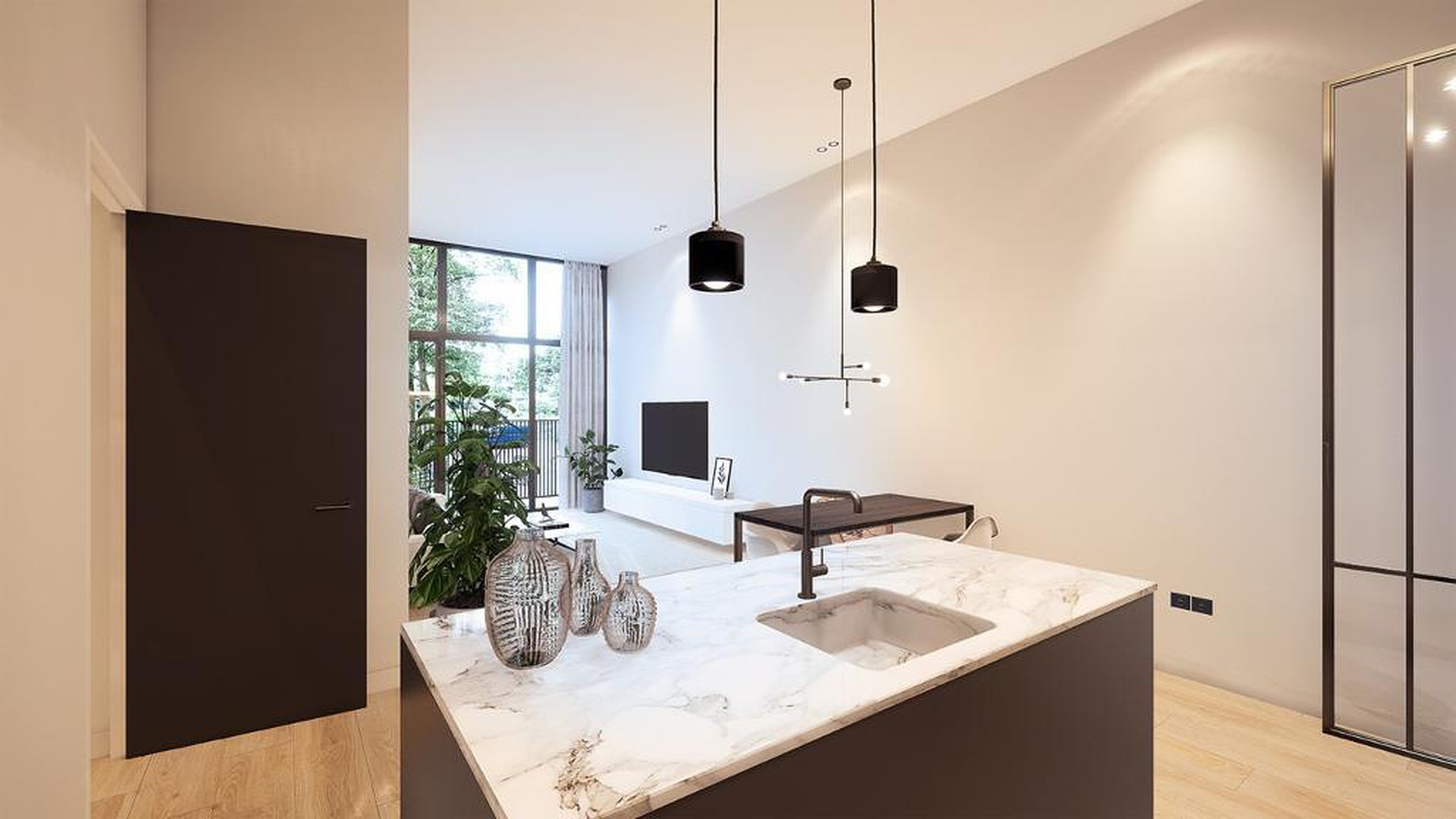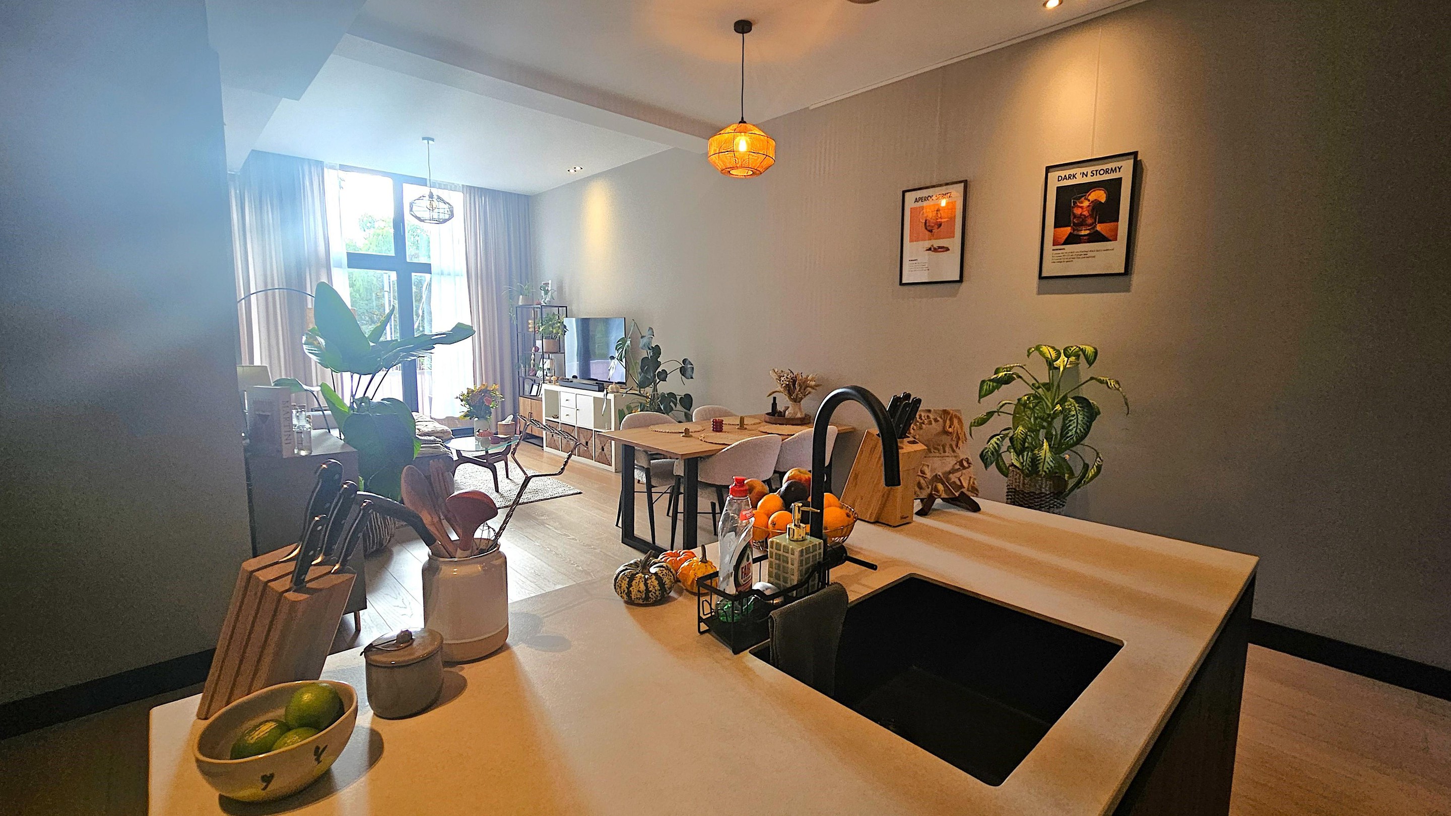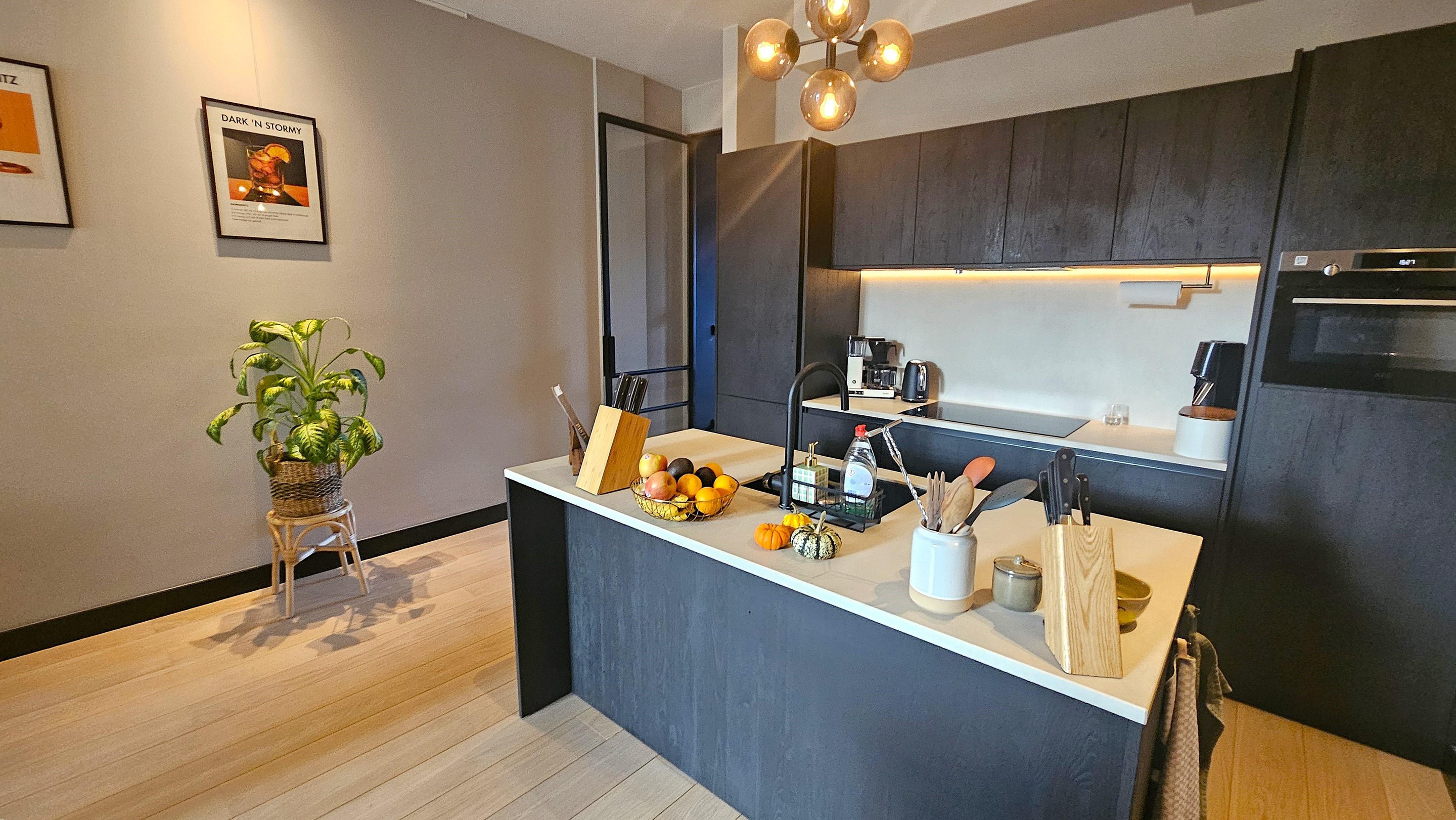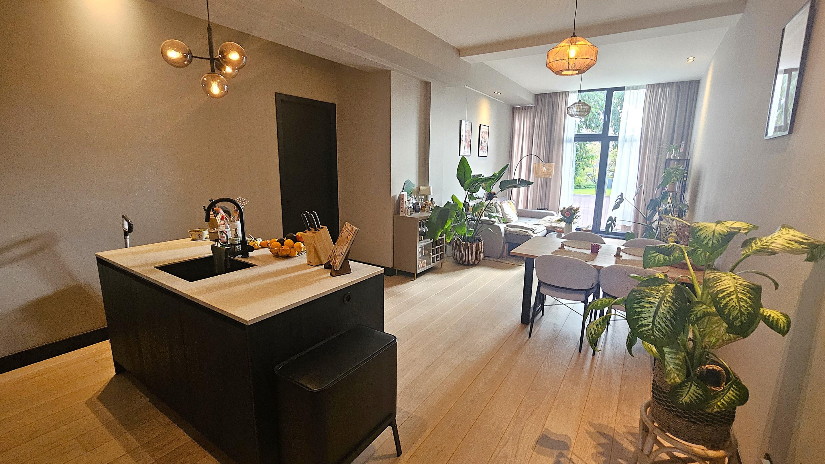 Begane grond wonen – wie wil dat nou niet? Comfortabel gelijkvloers, met een eigen voordeur en geen gedoe met trappen. Binnen tref je een riante woonkamer met een open keuken die direct uitnodigt om vrienden over de vloer te halen. Koken doe je hier trouwens met plezier, dankzij de luxe inbouwapparatuur en een doordachte indeling. De keuken loopt naadloos over in de living, compleet met grote raampartijen die zorgen voor een heerlijk lichte en ruimtelijke woonsfeer.