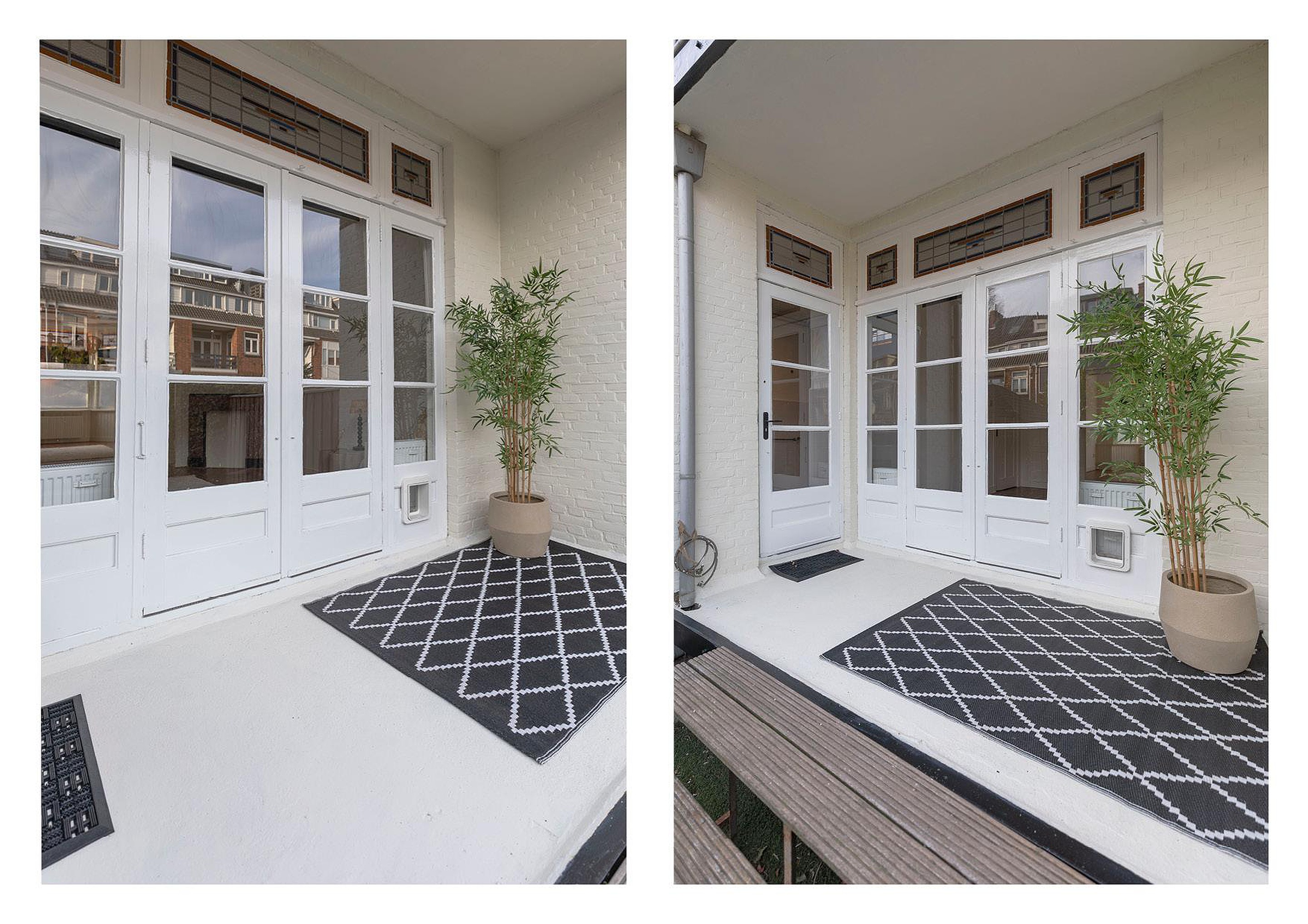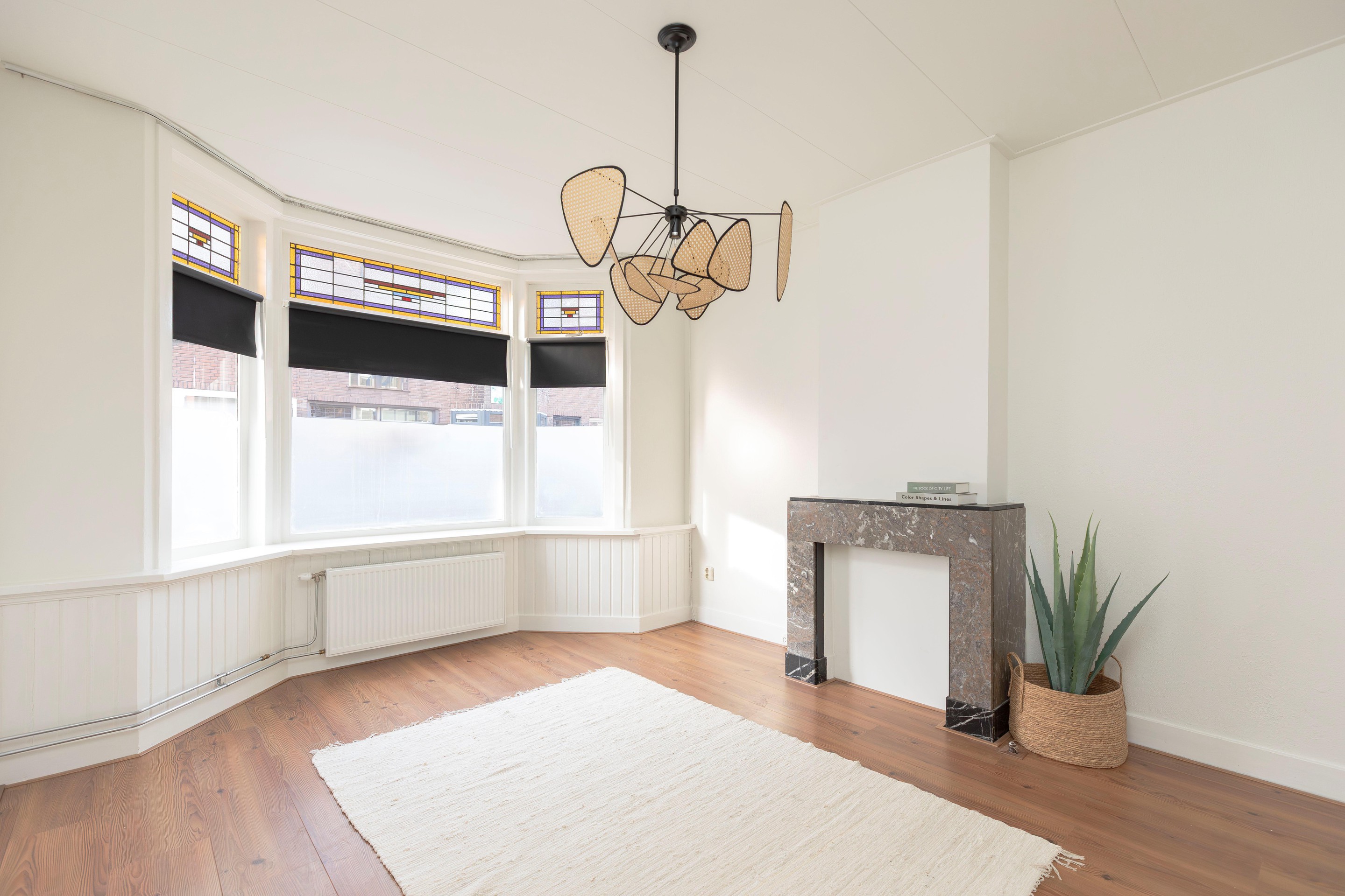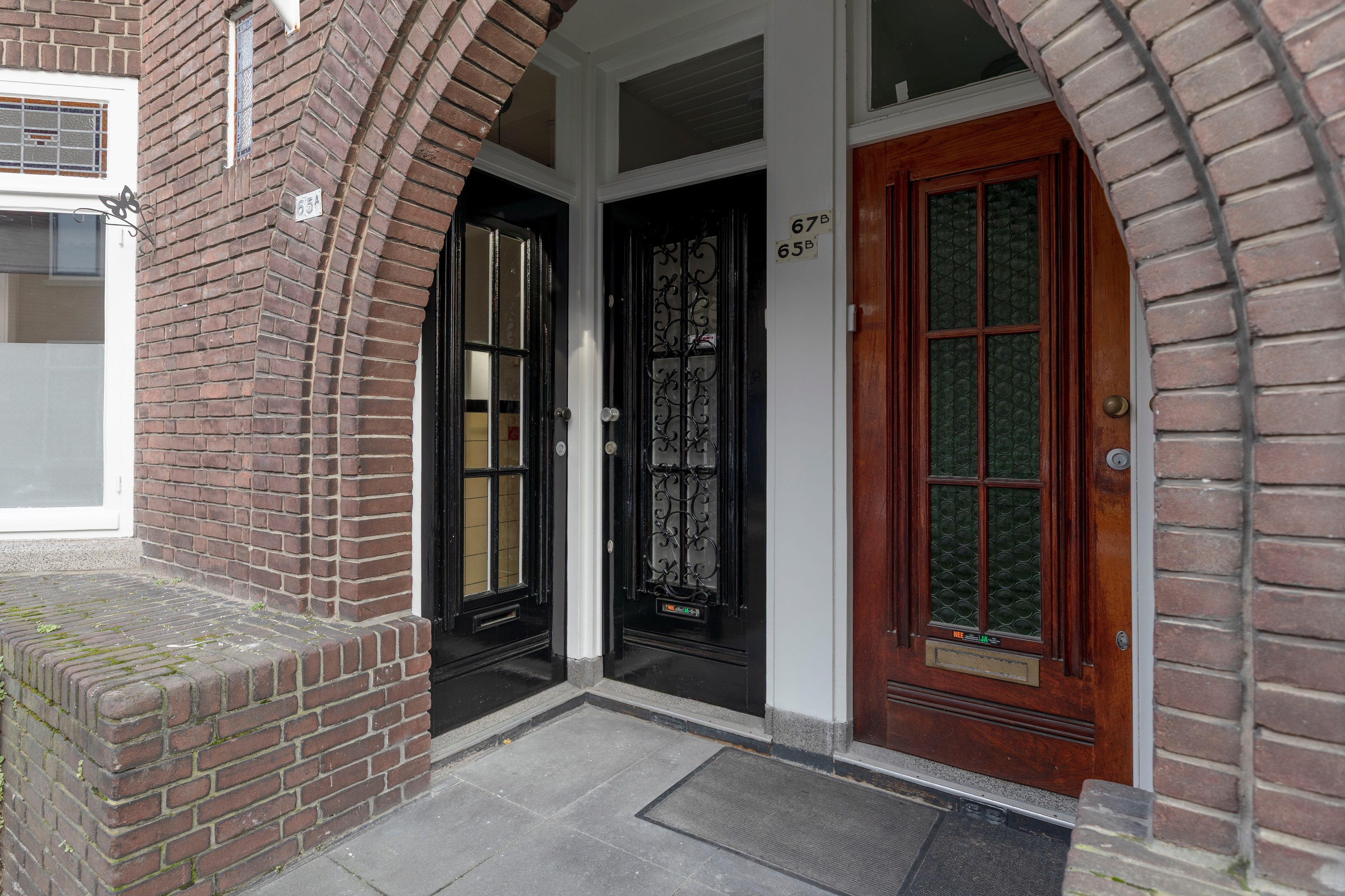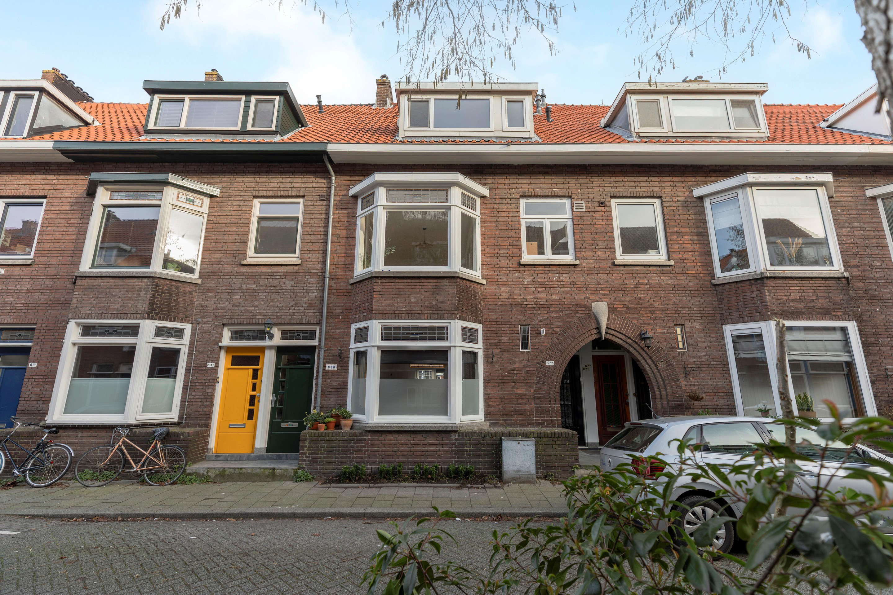 Al bij het bekijken van de woning vanaf de straat valt op dat dit een sfeervolle woning is. De nette gevel, de glas-in-loodbovenramen en de toog die naar de voordeur leidt, dragen hieraan bij.