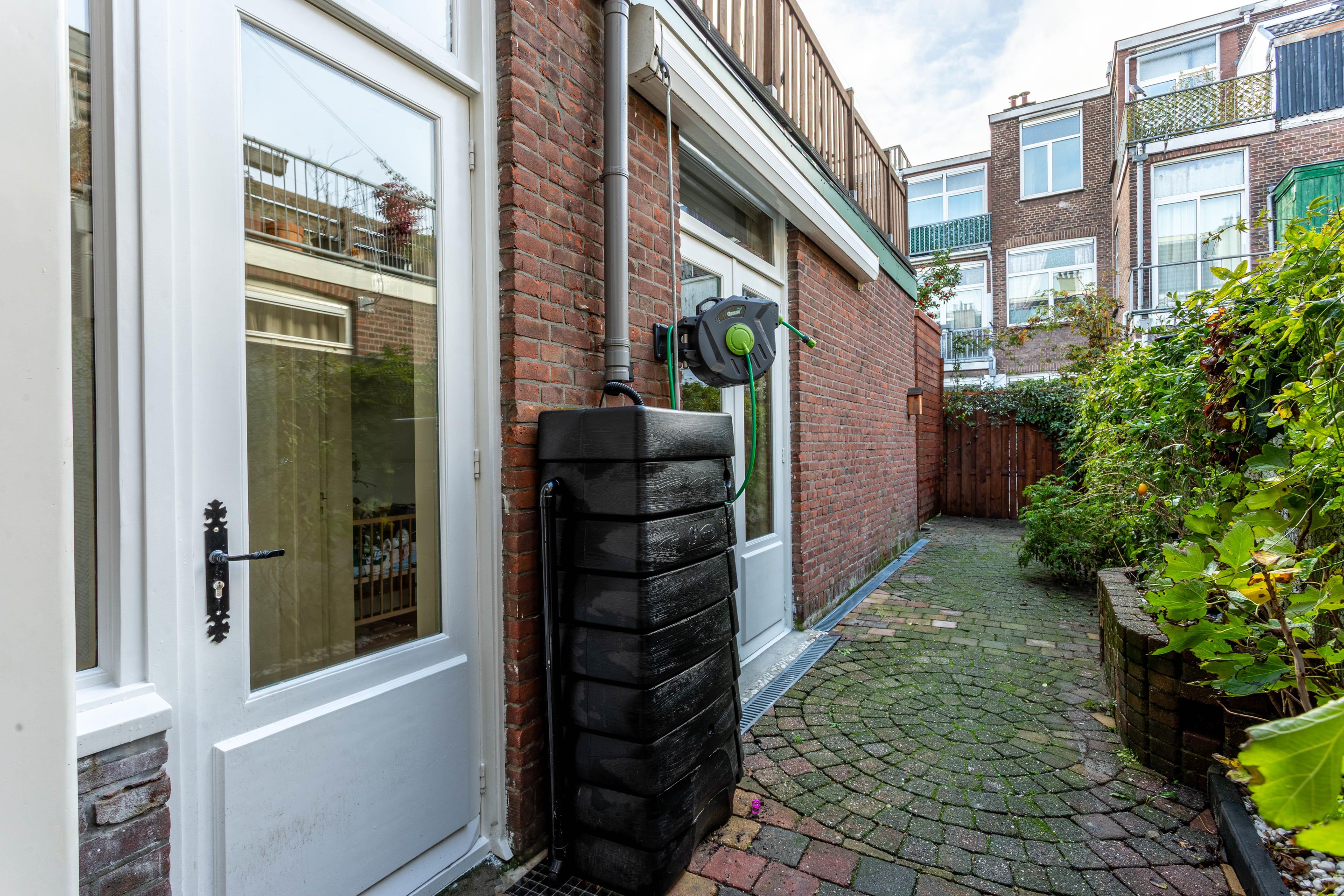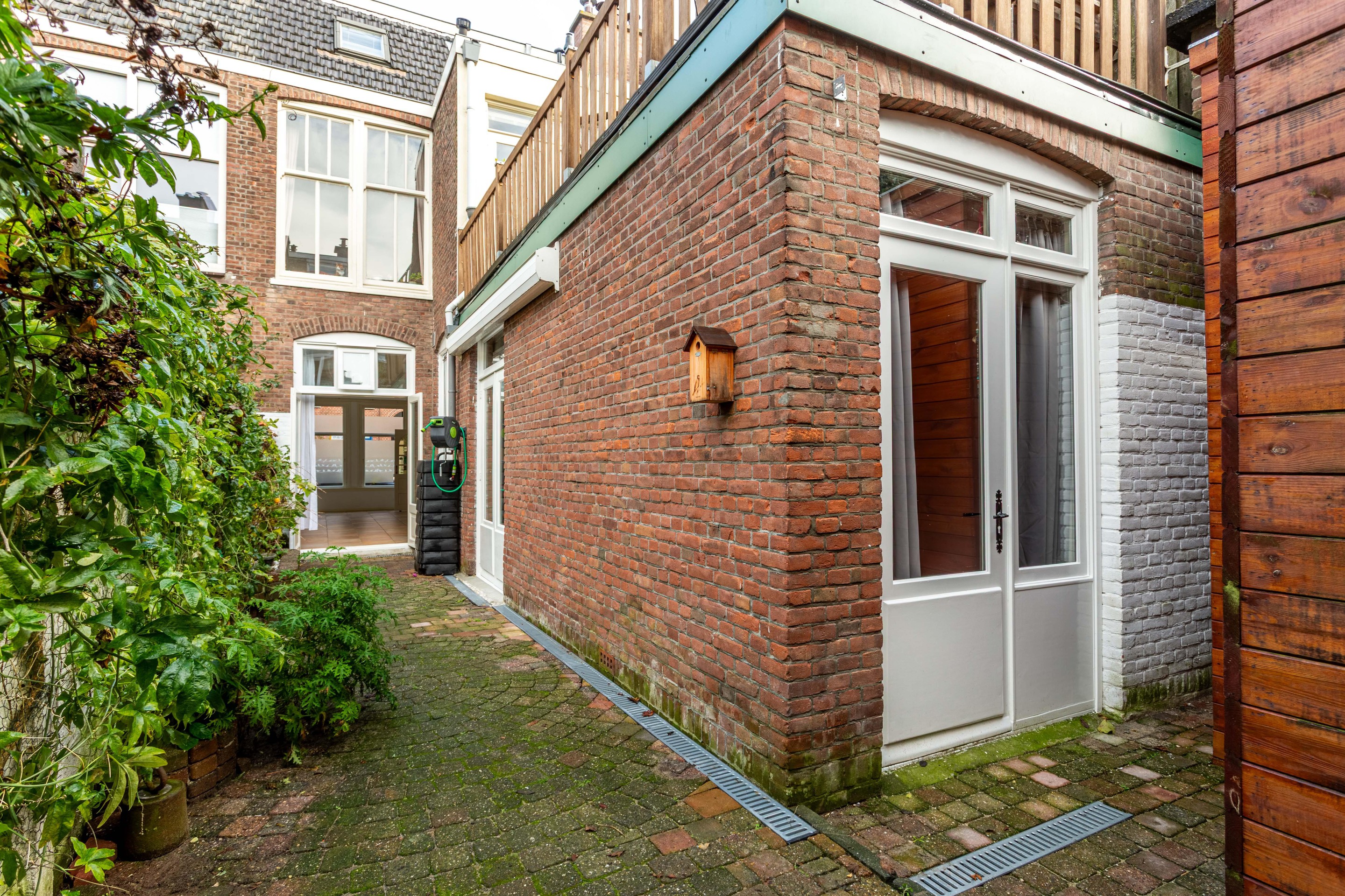 De tuin is een echte verrassing. Dankzij de gunstige zonligging kun je hier vrijwel de hele dag van de zon genieten. Een plek om in de zomer te ontbijten, te borrelen met vrienden of rustig te spelen met een kind in de middagzon. De nieuwe, vrijstaande houten berging maakt het geheel compleet en biedt praktische ruimte voor fietsen, speelgoed of tuingereedschap.