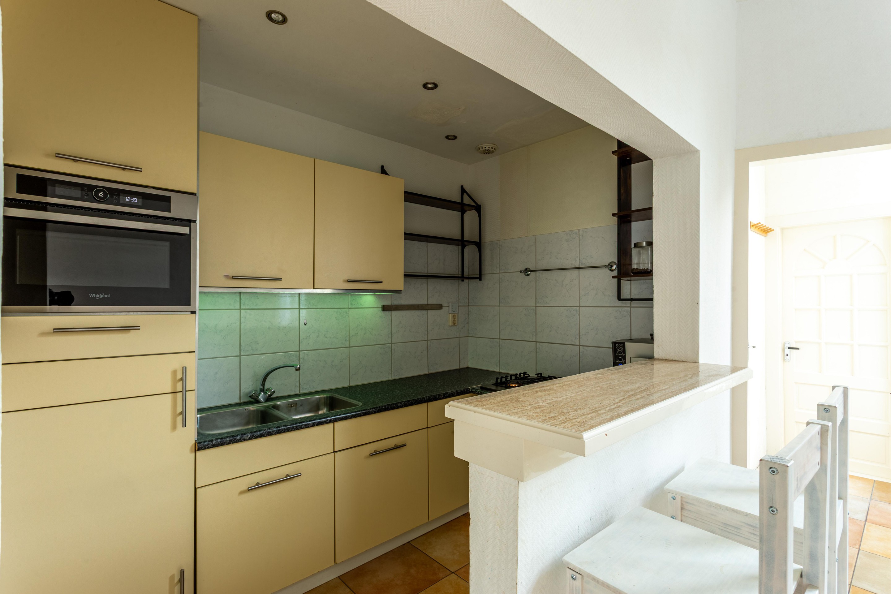 At the rear of the apartment, you will find two bedrooms, quietly located. Whether you prefer a spacious main bedroom with a home office or guest room, or wish to create a children’s bedroom, the layout is flexible and adapts easily to different stages of life. The semi-open kitchen and bathroom are neat and well maintained, while still offering the opportunity to modernise them over time and fully personalise the home.