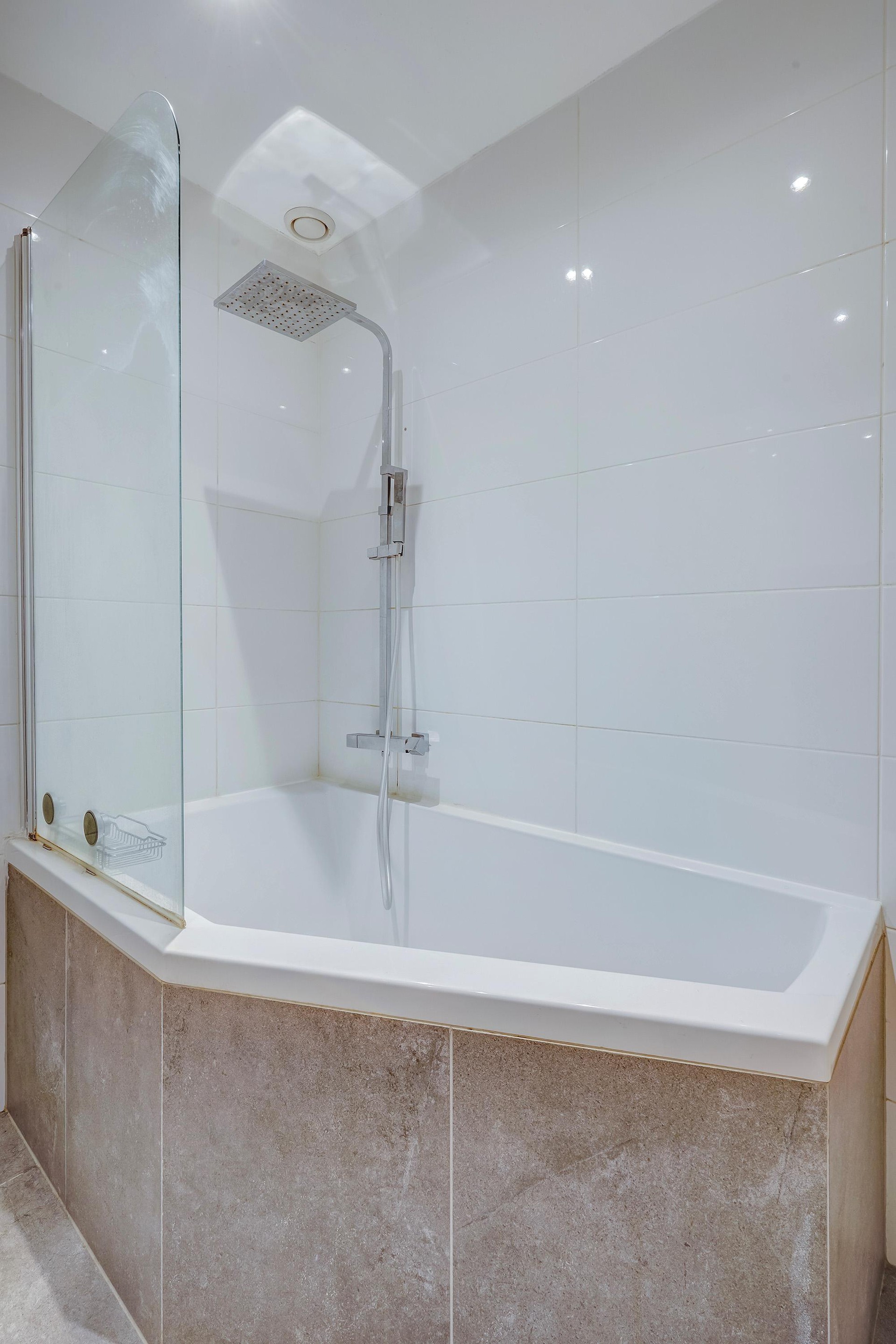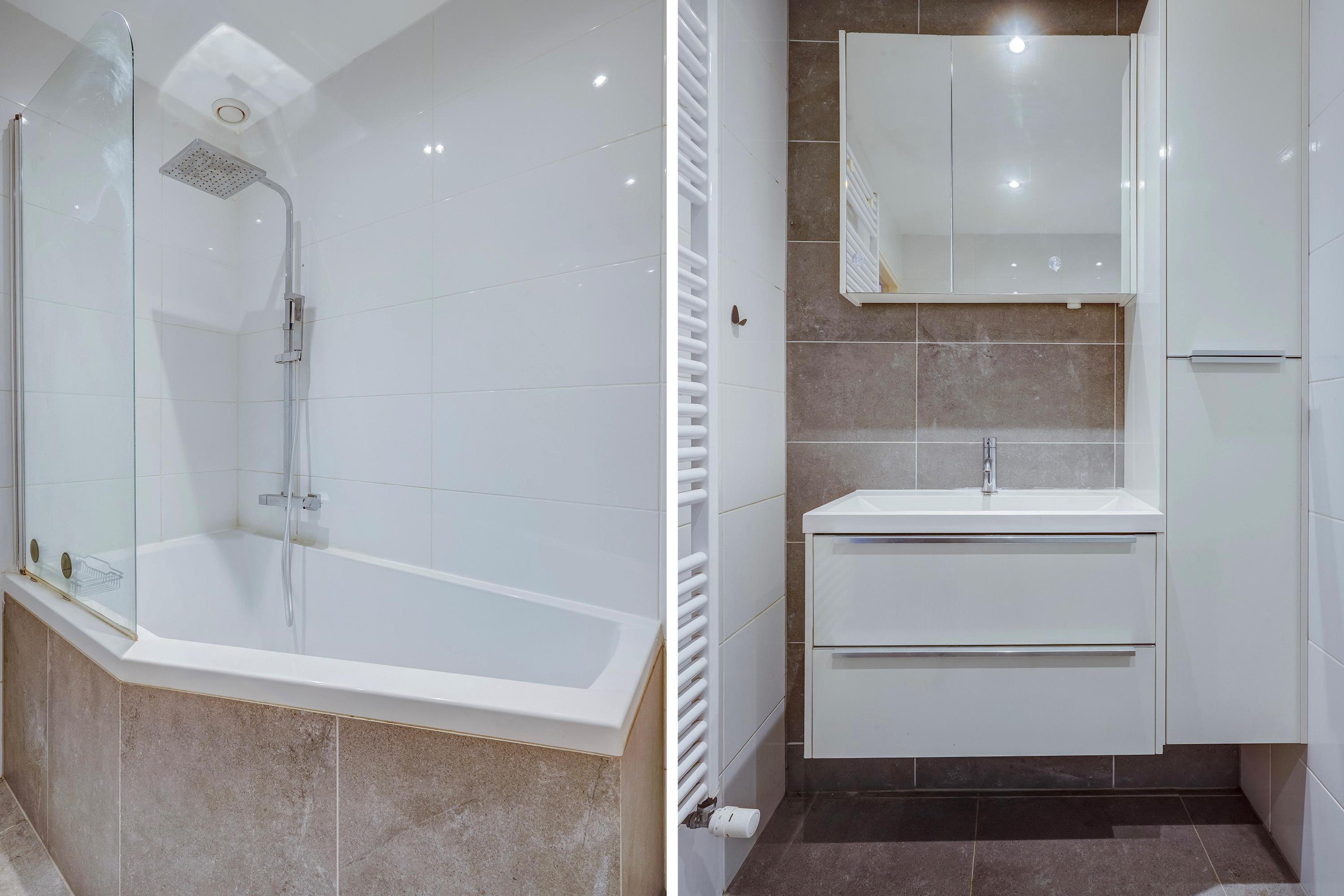 De badkamer is modern uitgevoerd en voorzien van een ligbad, regendouche en wastafel. De vloerverwarming maakt deze ruimte extra comfortabel en aangenaam.