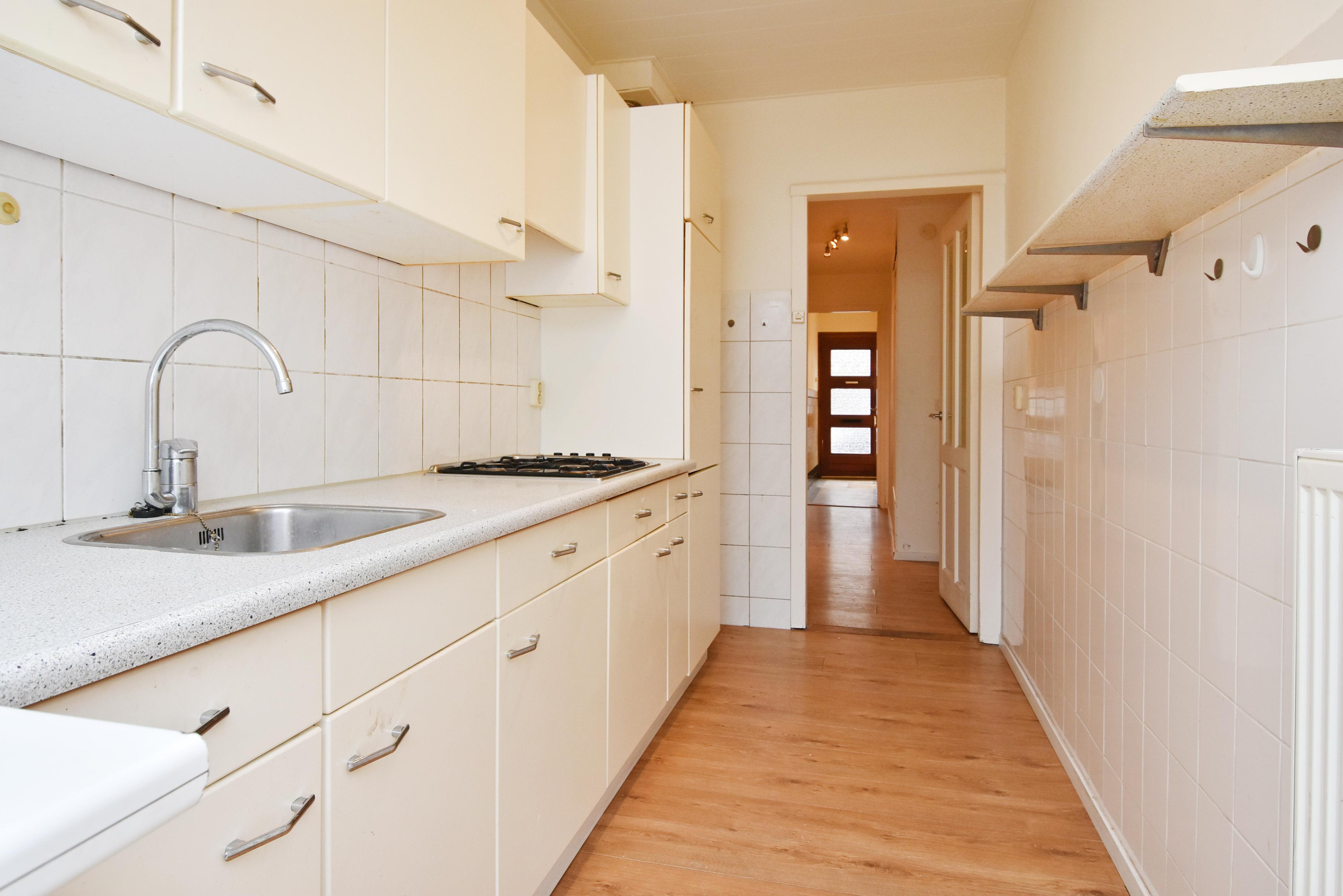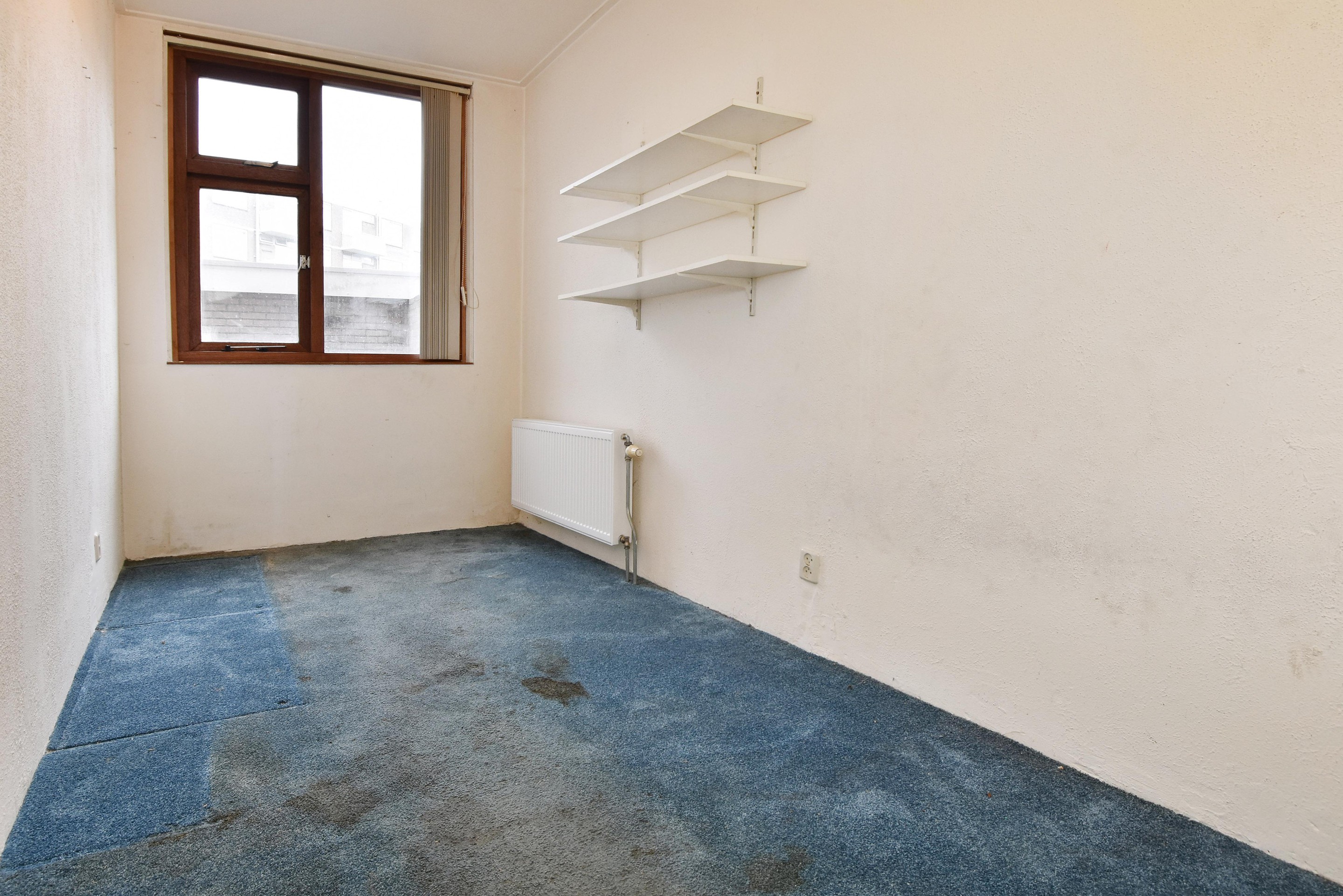 Verder beschikt de woning over een tweede slaapkamer aan de voorzijde en een derde slaapkamer aan de achterzijde. De tussen gelegen badkamer is voorzien van een vaste wastafel en douche.