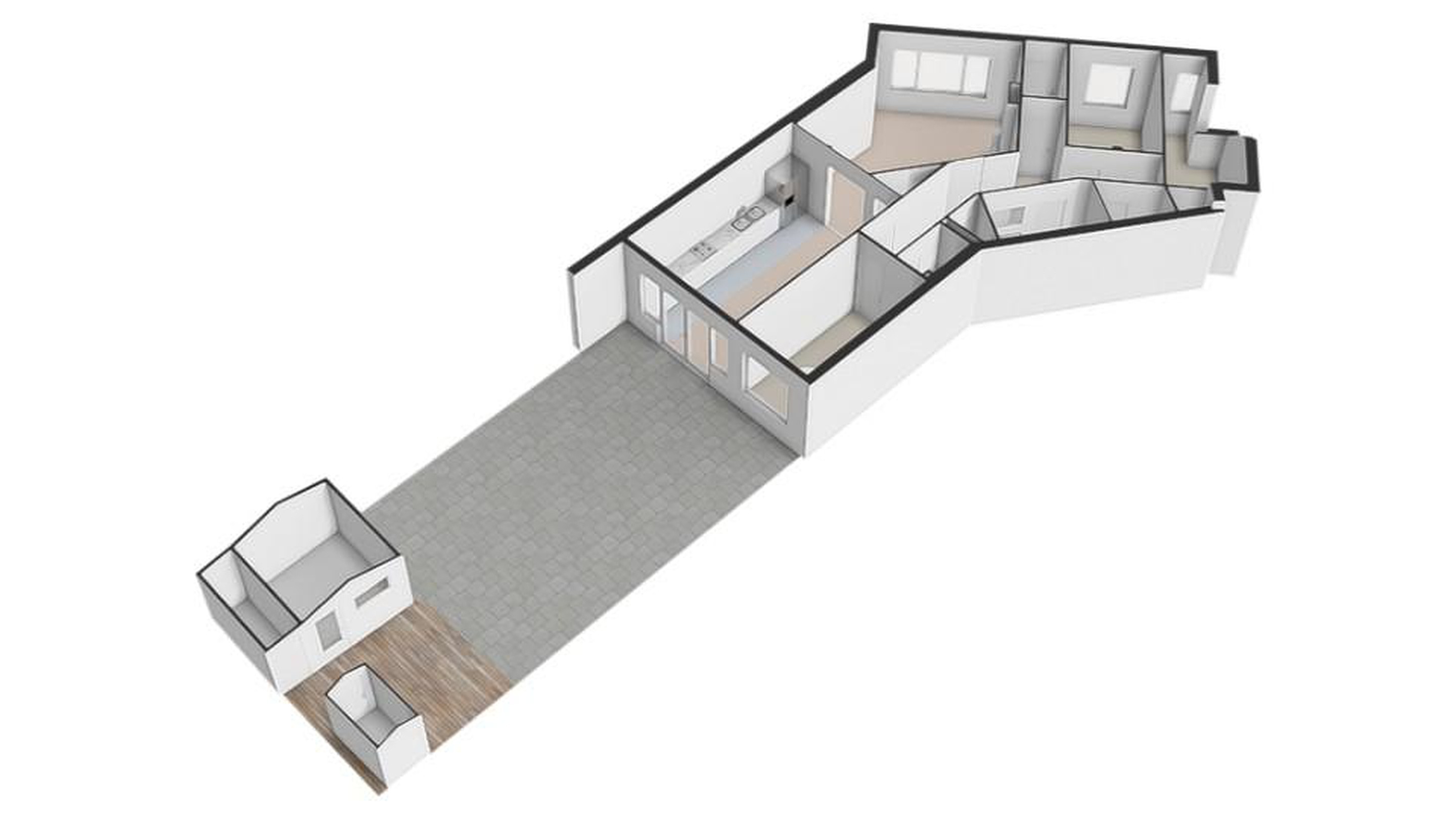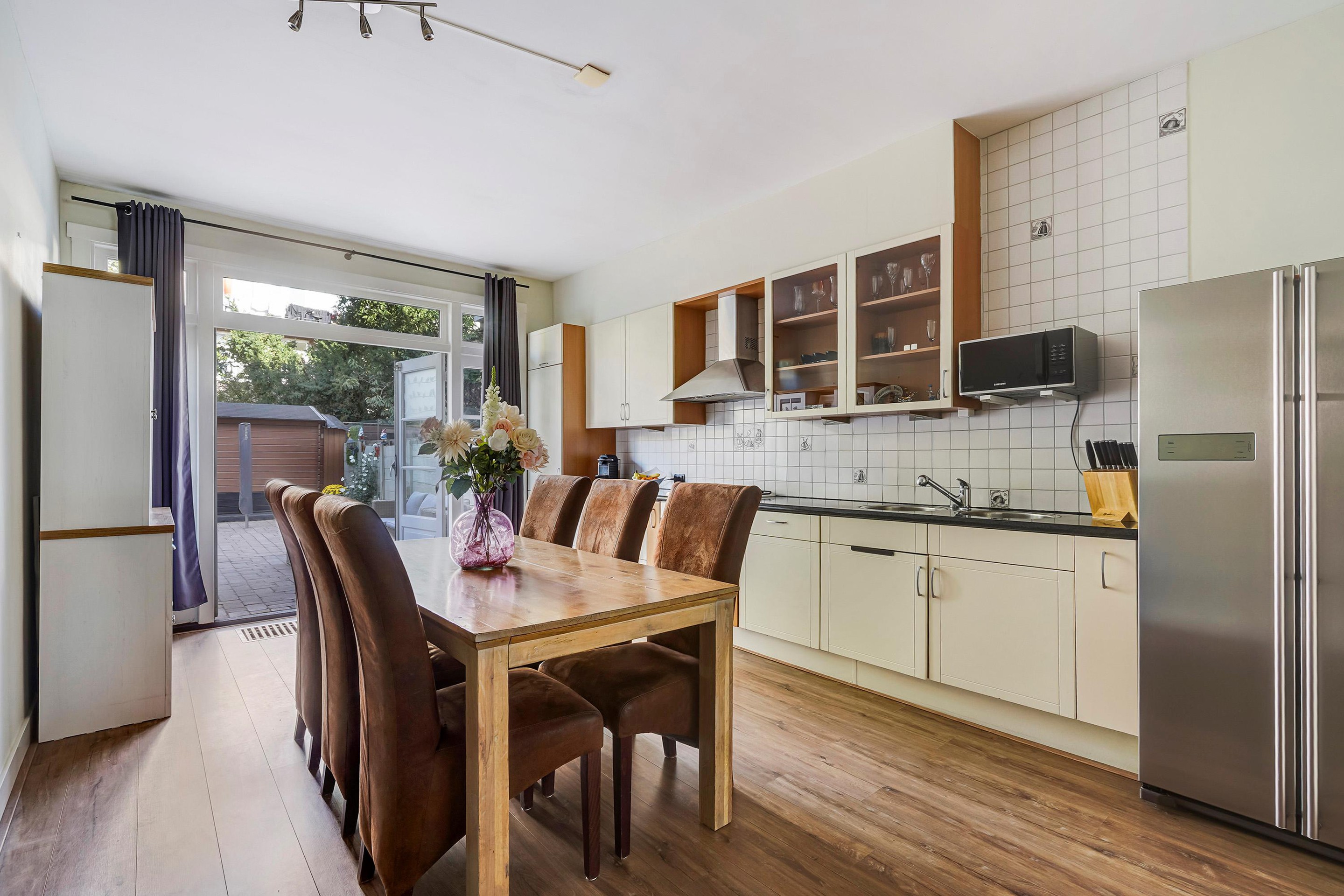 - Geheel v.v. dubbel glas (voorzijde v.v. kunststof kozijnen, achterzijde houten kozijnen)