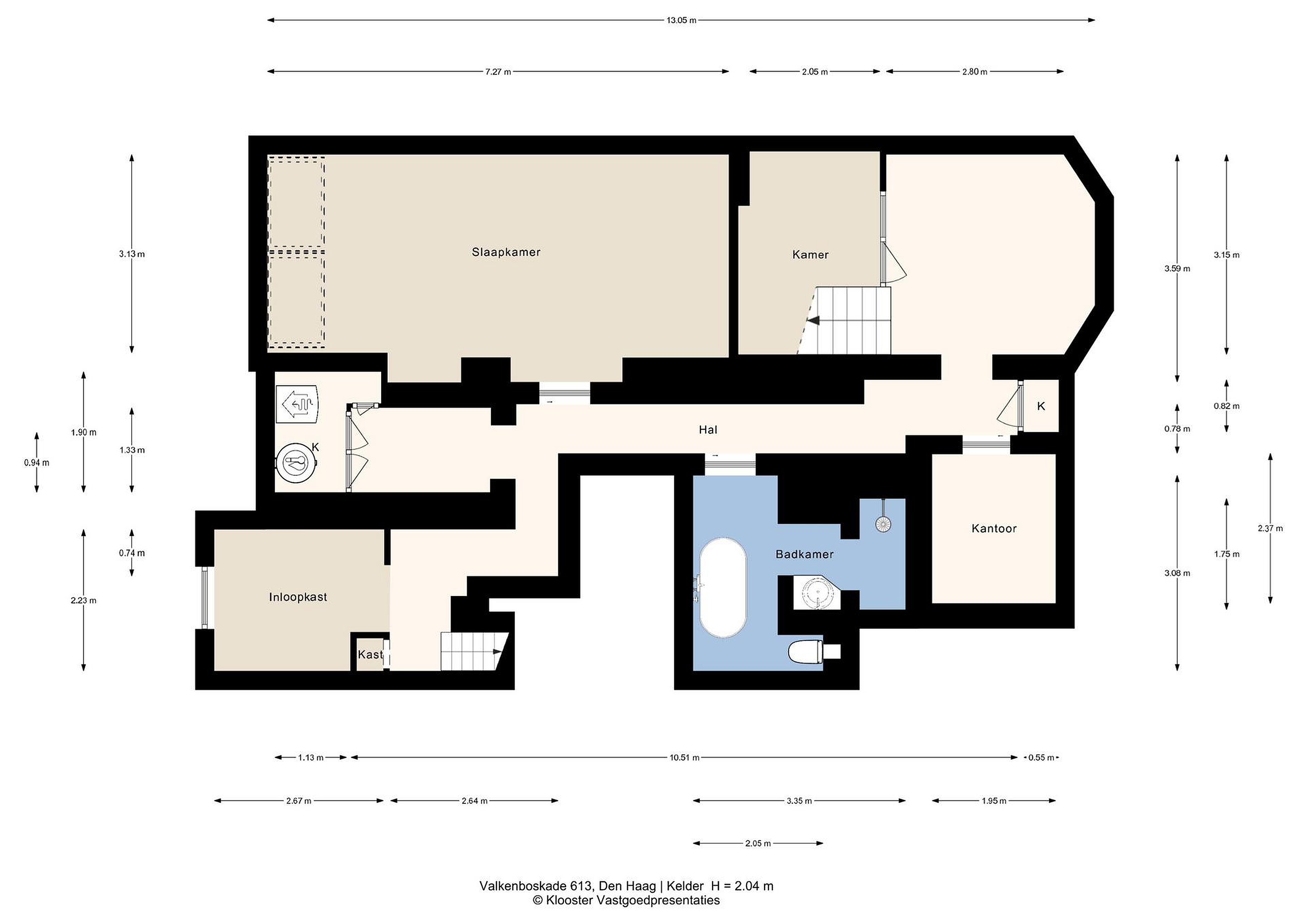 Onder de begane grond is nog een volledige verdieping beschikbaar, met een hoogte van 2,05 m. Ook deze verdieping is vakkundig verbouwd en voorzien van de nodige luxe. Niet onbelangrijk is de aanwezigheid van een droge, optimale woonkelder, zorgvuldig gerenoveerd en met een doordacht ventilatiesysteem uitgerust.