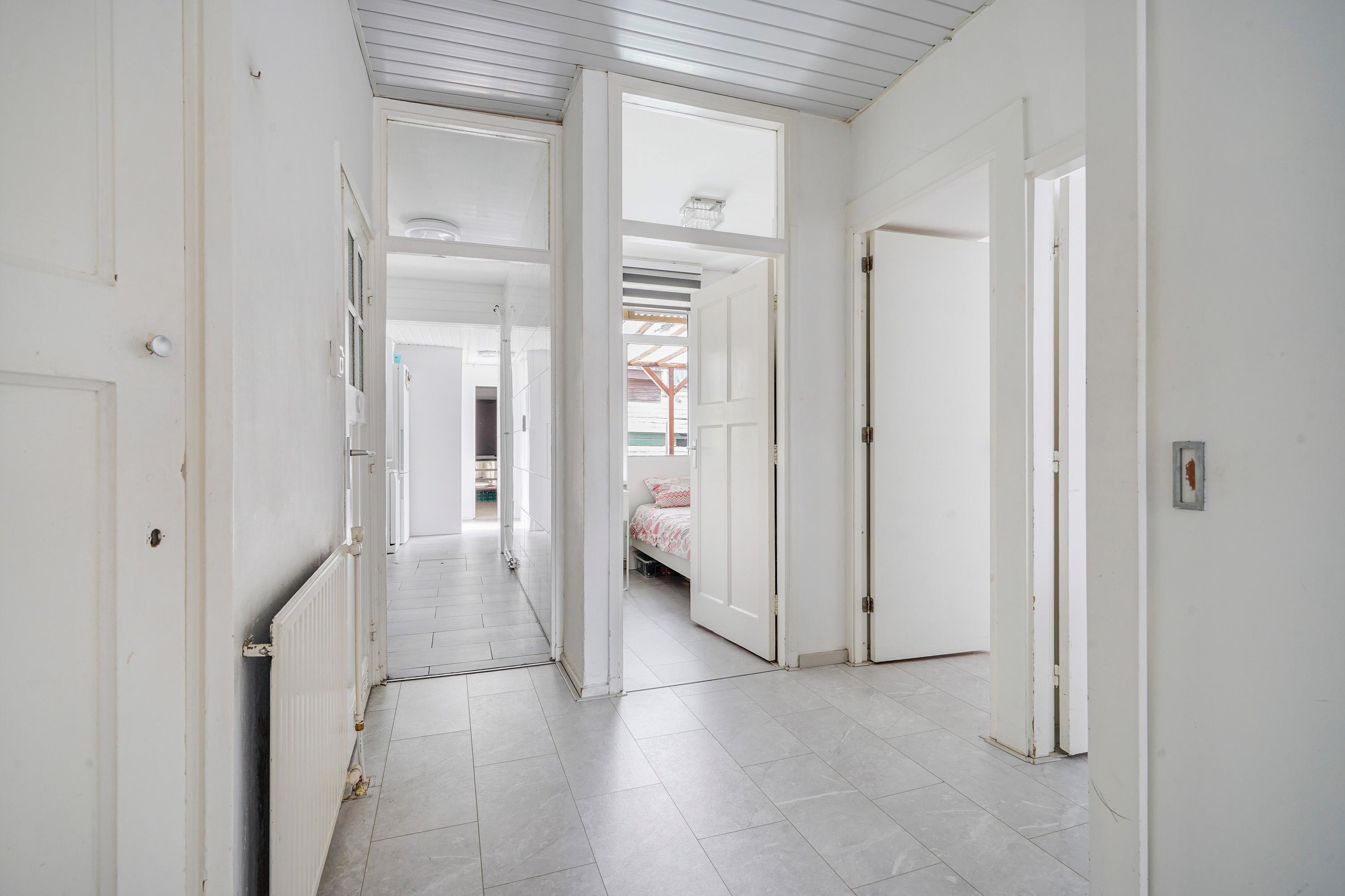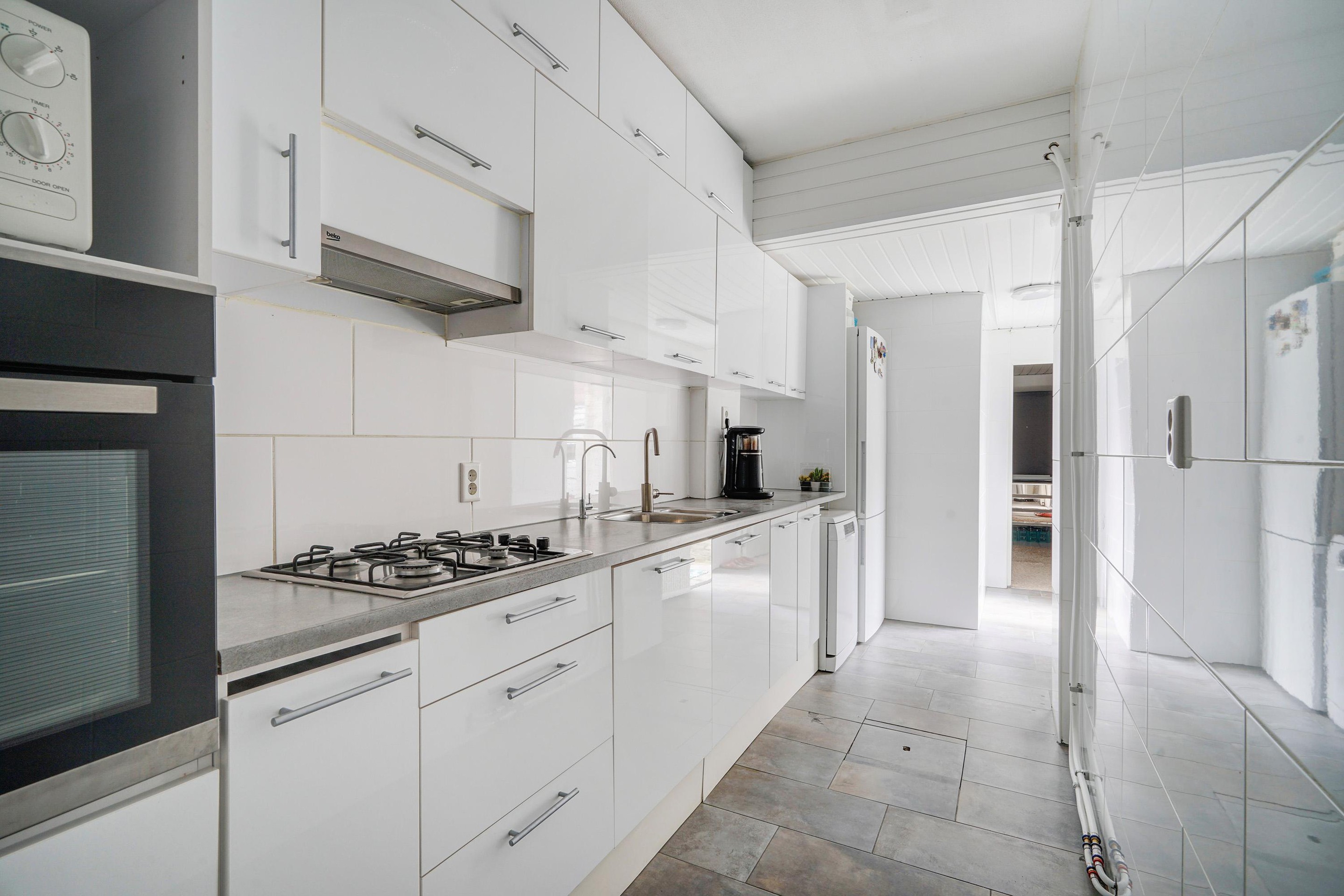 Entree woning, hal v.v. meterkast en toilet (hangend met fontein), ruime kast in de hal, vanuit de hal toegang tot de woonkamer, de woonkamer is voorzien van veel lichtinval, nette laminaatvloer en een prima zit-*en eethoek. Aan de achterzijde een ruime slaapkamer met openslaande deuren naar de tuin, de tweede slaapkamer (tussenkamer) is eveneens aan de achterzijde gelegen. De keuken is netjes onderhouden en v.v. 4 pits gaskookplaat, oven, vaatwasser, afzuigkap, koel-/vriescombinatie (los), aan de voorzijde treft u de derde slaapkamer aan en de badkamer is in de uitbouw gelegen v.v. inloopdouche, wastafel, wasmachine-/droger opstelling en handdoekradiator