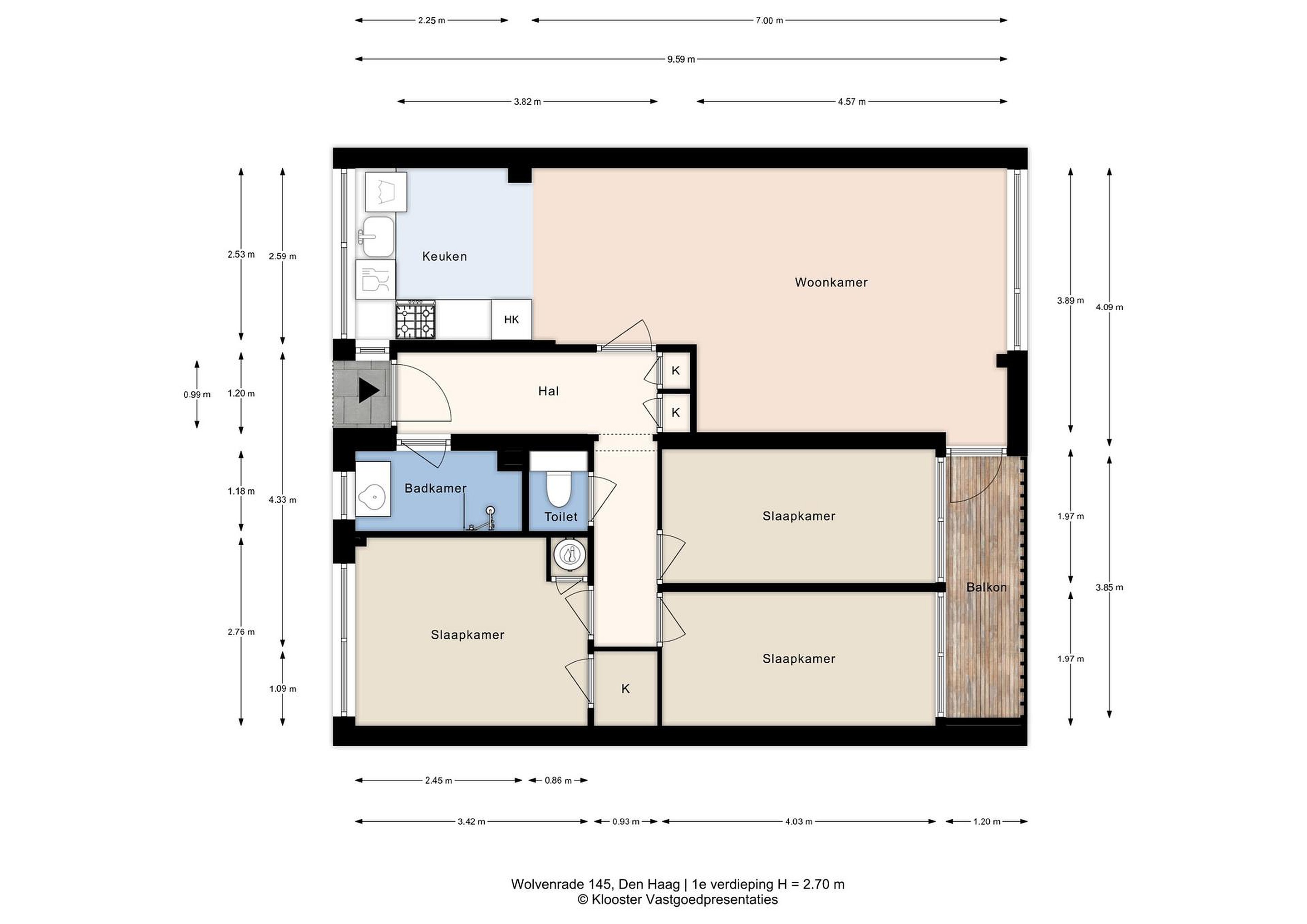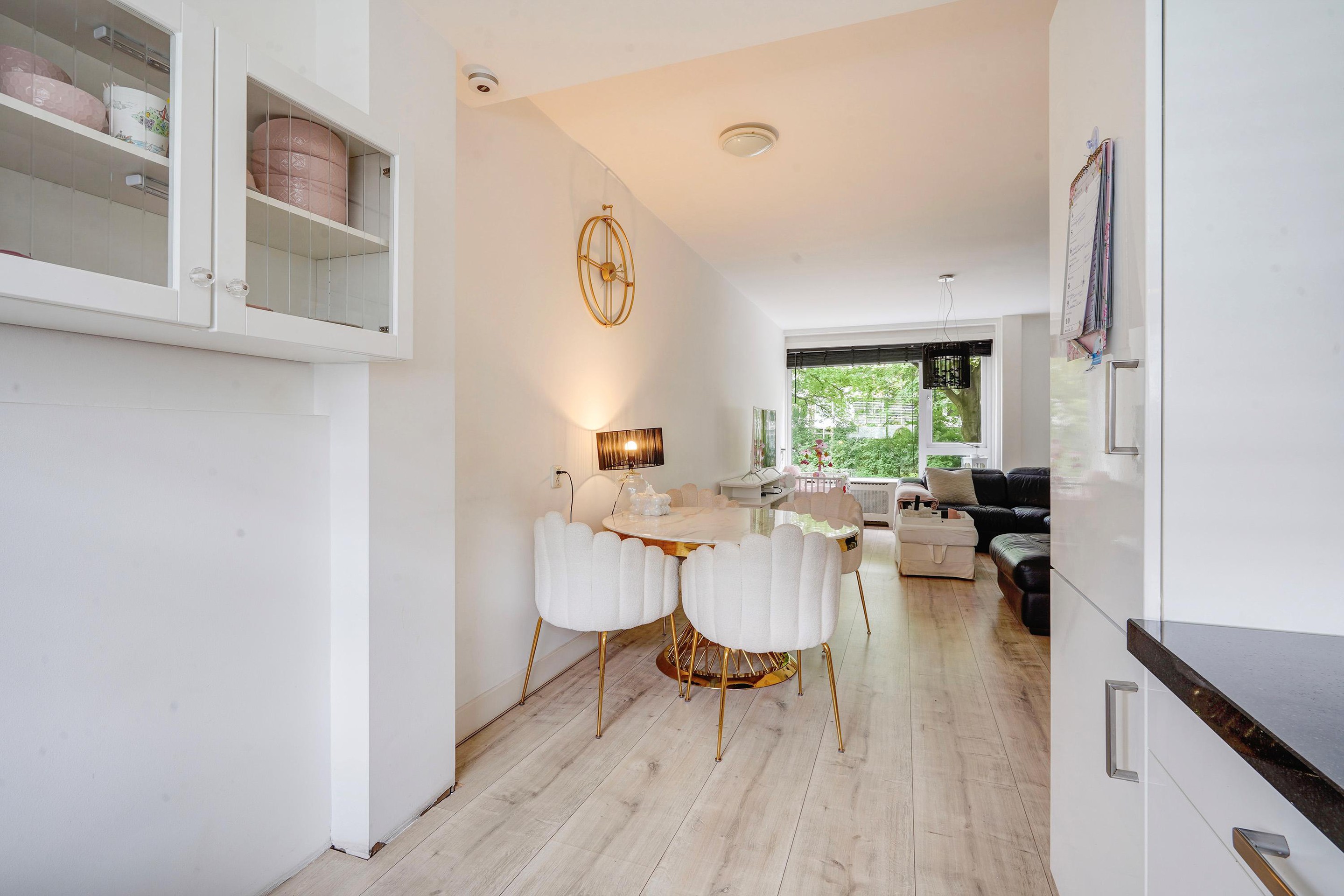 Het hart van de woning wordt gevormd door de lichte L-vormige woon- en eetkamer. Aan de voorzijde treft u de ruime eetkeuken met grote raampartijen, waardoor er een prettige en lichte sfeer ontstaat. De keuken is uitgerust met een 4-pits kookplaat, afzuigkap, koelkast, magnetron en vaatwasser. Vanuit de woonkamer heeft u toegang tot het ruime balkon, waar u heerlijk kunt genieten van de zon en het uitzicht.