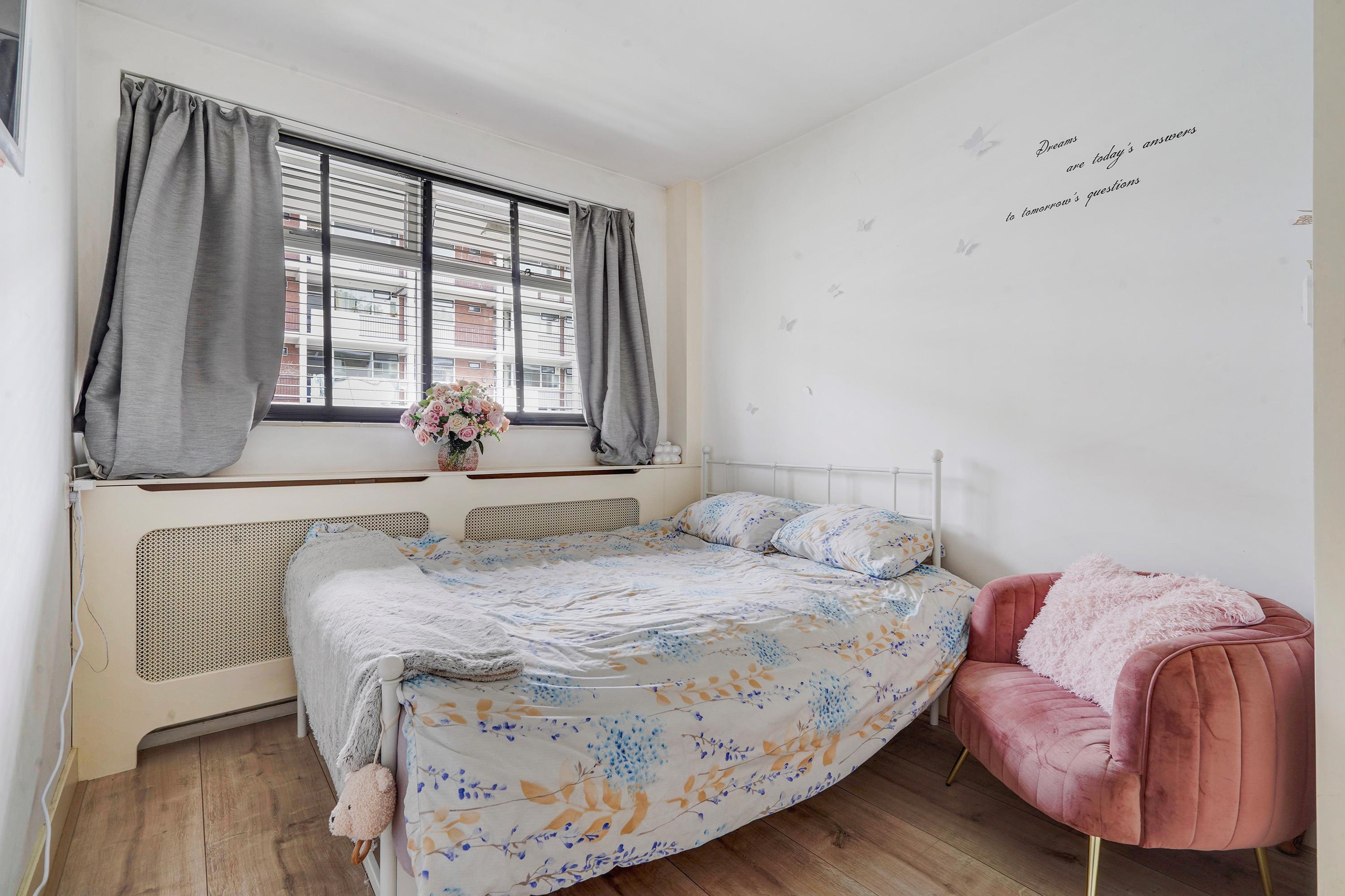 De master bedroom ligt aan de achterzijde en is royaal van formaat, met veel lichtinval en een handige inbouwkast. Aan de voorzijde bevinden zich nog twee slaapkamers van gelijke afmeting, ideaal te gebruiken als kinder-, werk- of logeerkamer. In de hal bevindt zich bovendien een ruime bergkast met de meterkast.