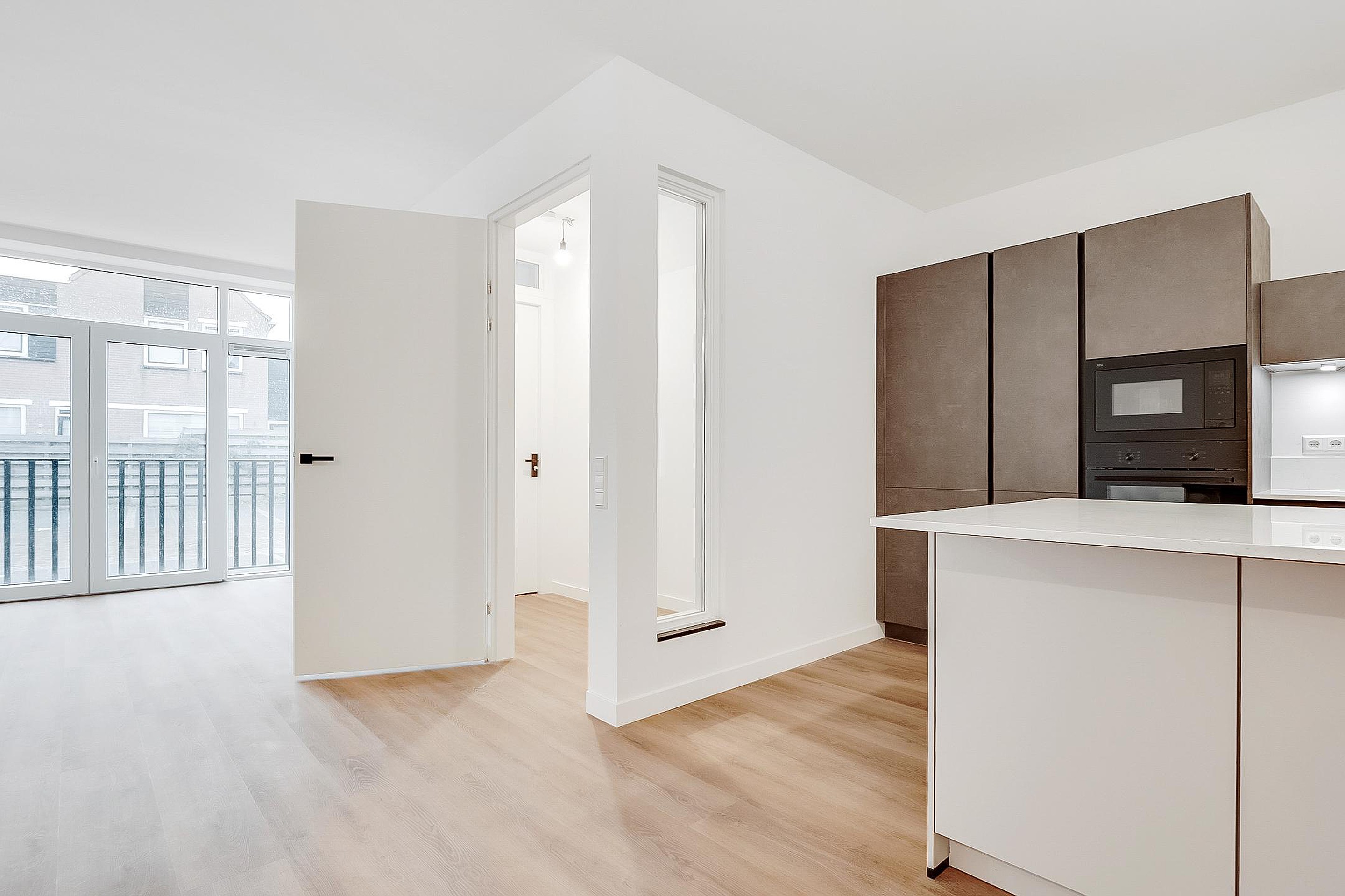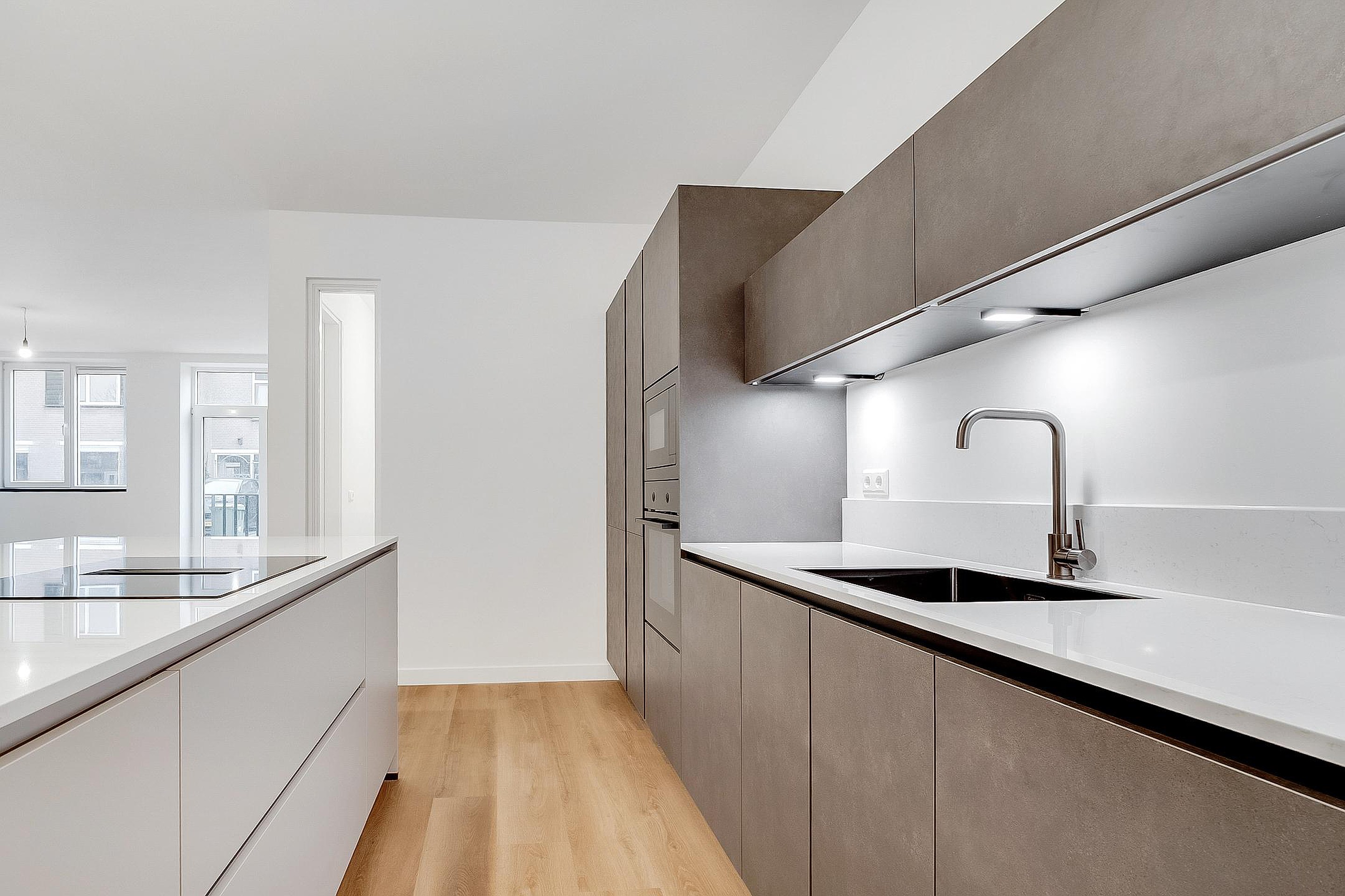 De ruime en lichte woonkamer, met heerlijk frans balkon aan de zonnige zuidwestzijde, vormt het centrale gedeelte van de woning en biedt voldoende plaats voor een comfortabele zit- en eethoek. De open keuken sluit hier naadloos op aan.