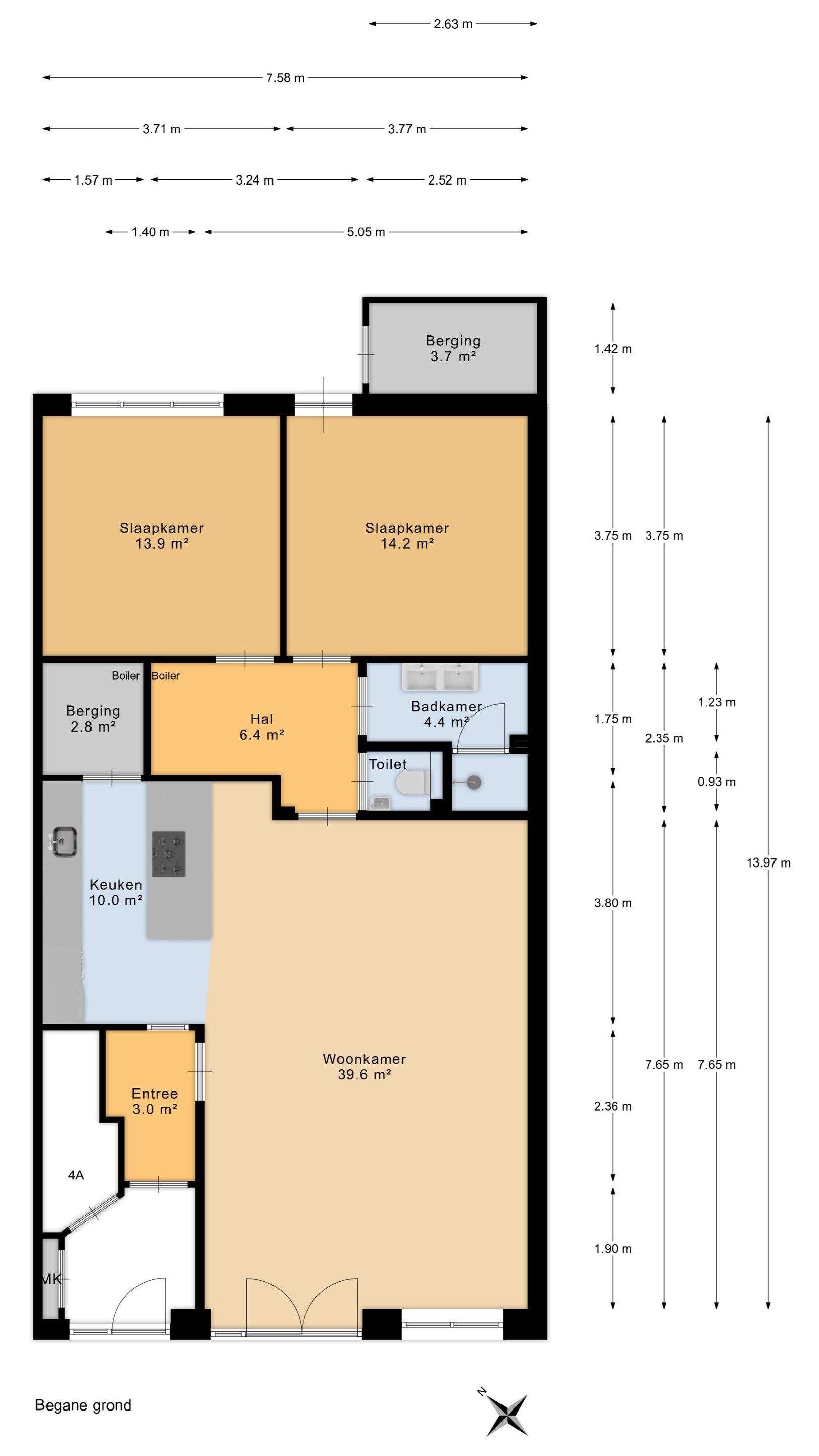 Entree : Via de entree bereikt u de hal met toegang tot het onder- (nr4) en boven (nr 4a) appartement.