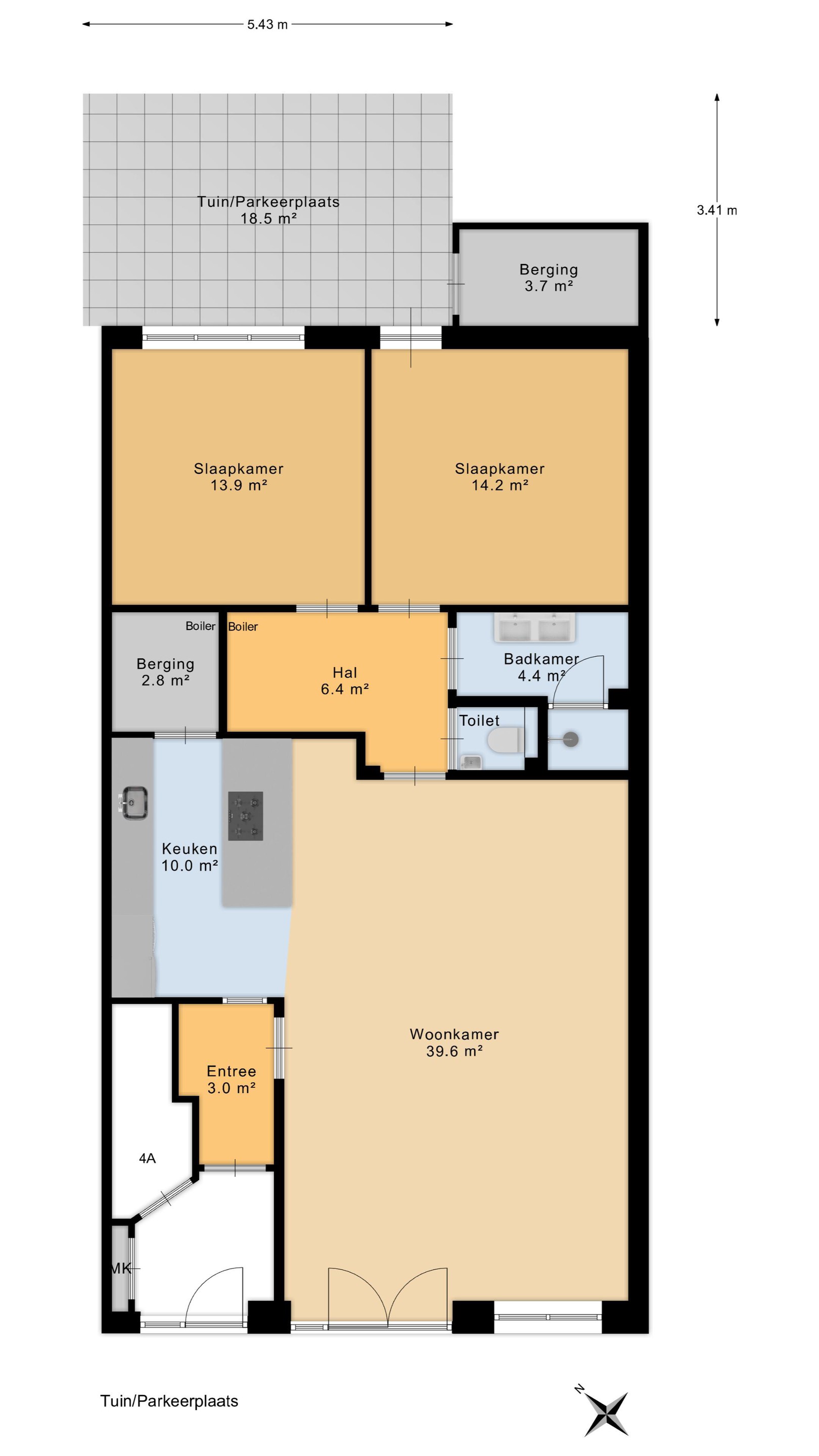 Achter de woning bevindt zich de tuin, welke desgewenst kan worden ingericht als parkeerplaats op eigen terrein. Tevens is er een externe berging aanwezig.