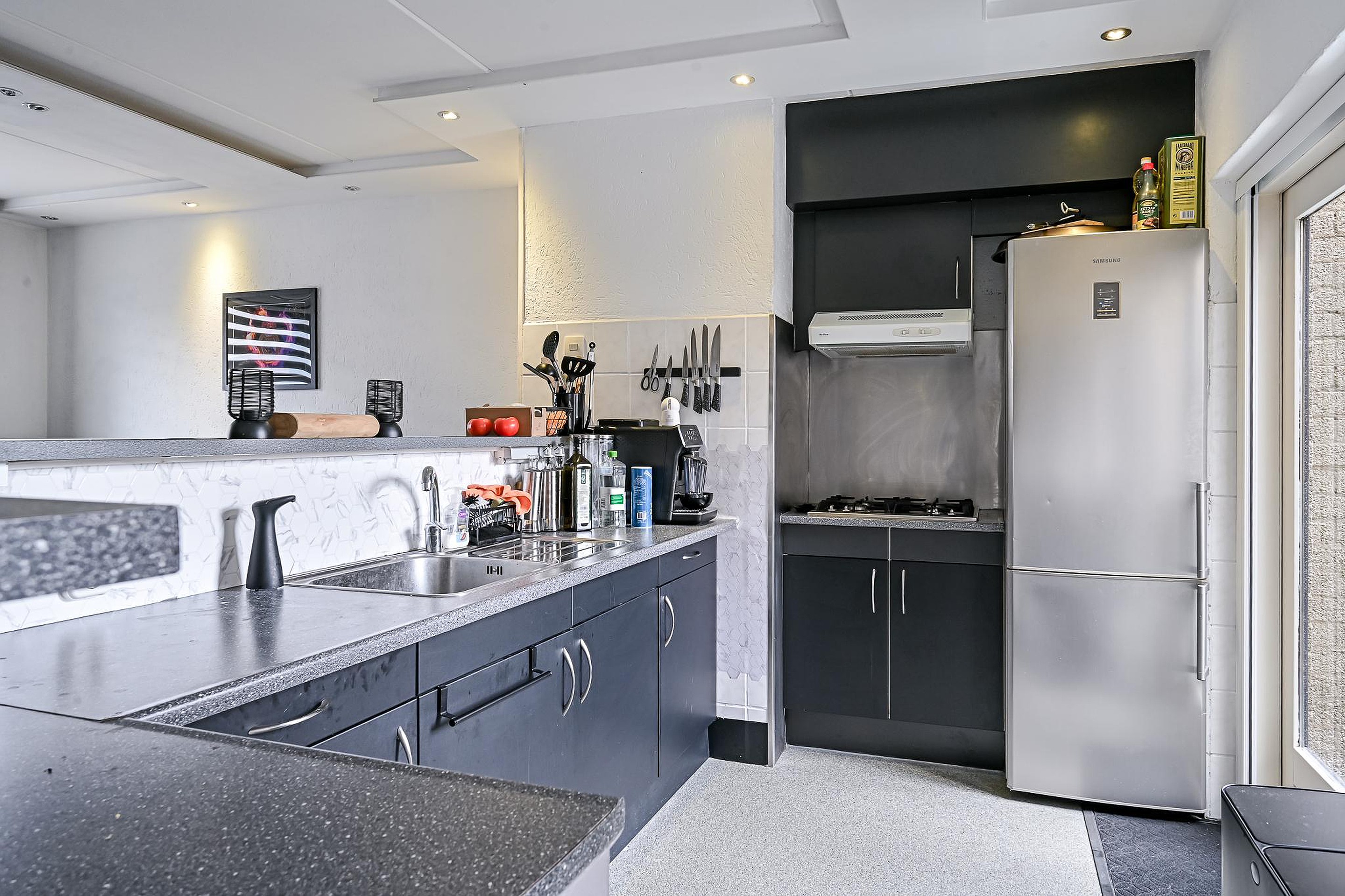 De open keuken is voorzien van een eetbar, vaatwasser, gasfornuis en koel-/vriescombinatie en sluit mooi aan op de woonkamer. Vanuit hier heb je direct toegang tot de knusse achtertuin, een fijne plek om buiten te zitten.