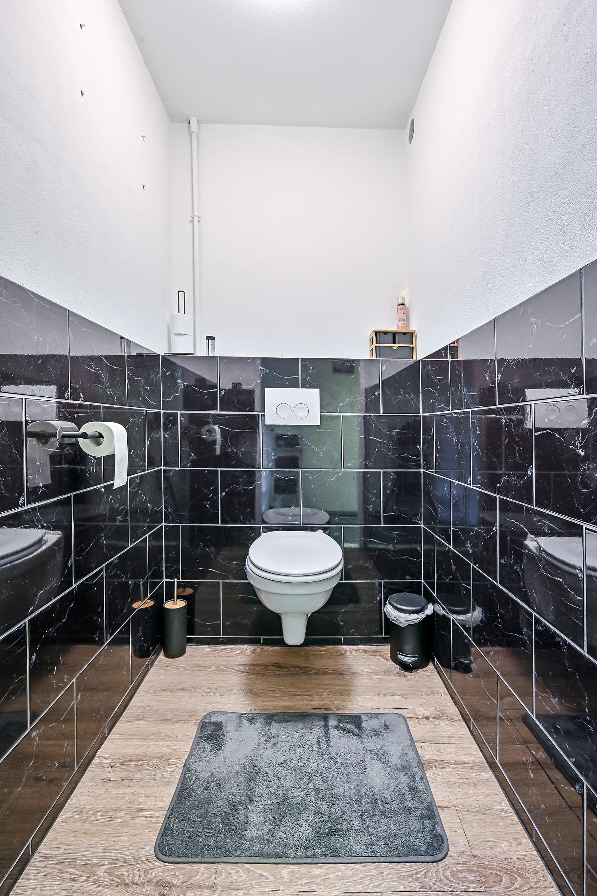 Via een tussenhal bereik je het separate toilet (2023) en de badkamer. De badkamer is voorzien van een ligbad, wastafel met meubel, toilet en mechanische ventilatie.