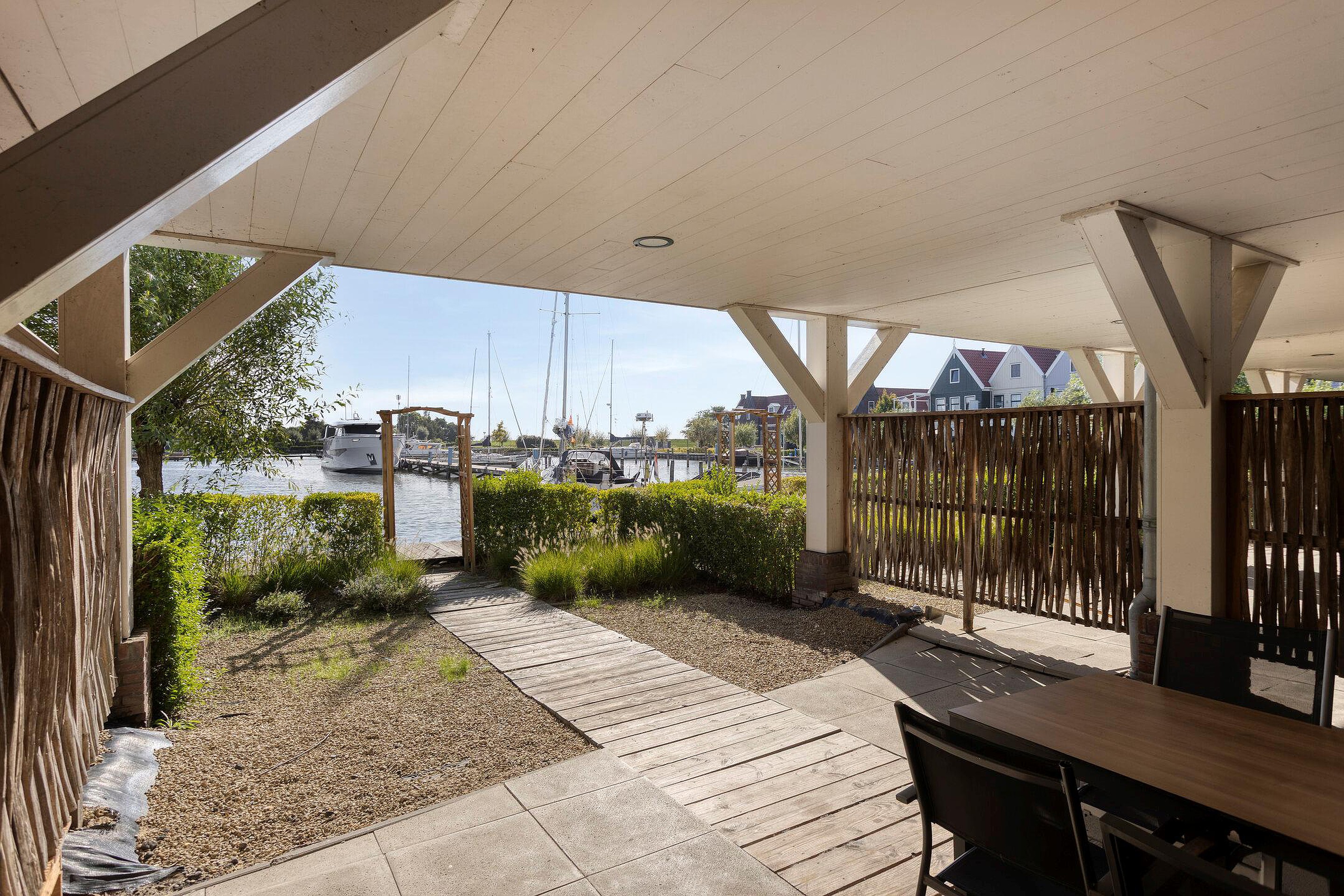 Het appartement beschikt over een groen aangelegde tuin met grote overkapping, grenzend aan de haven. Hier kun je in alle rust genieten van de buitenlucht en het schitterende uitzicht. De ruime overkapping biedt mogelijkheden voor een comfortabele lounge- of eethoek. Daarnaast is er voldoende ruimte voor groenliefhebbers om een eigen invulling te geven aan de tuin.