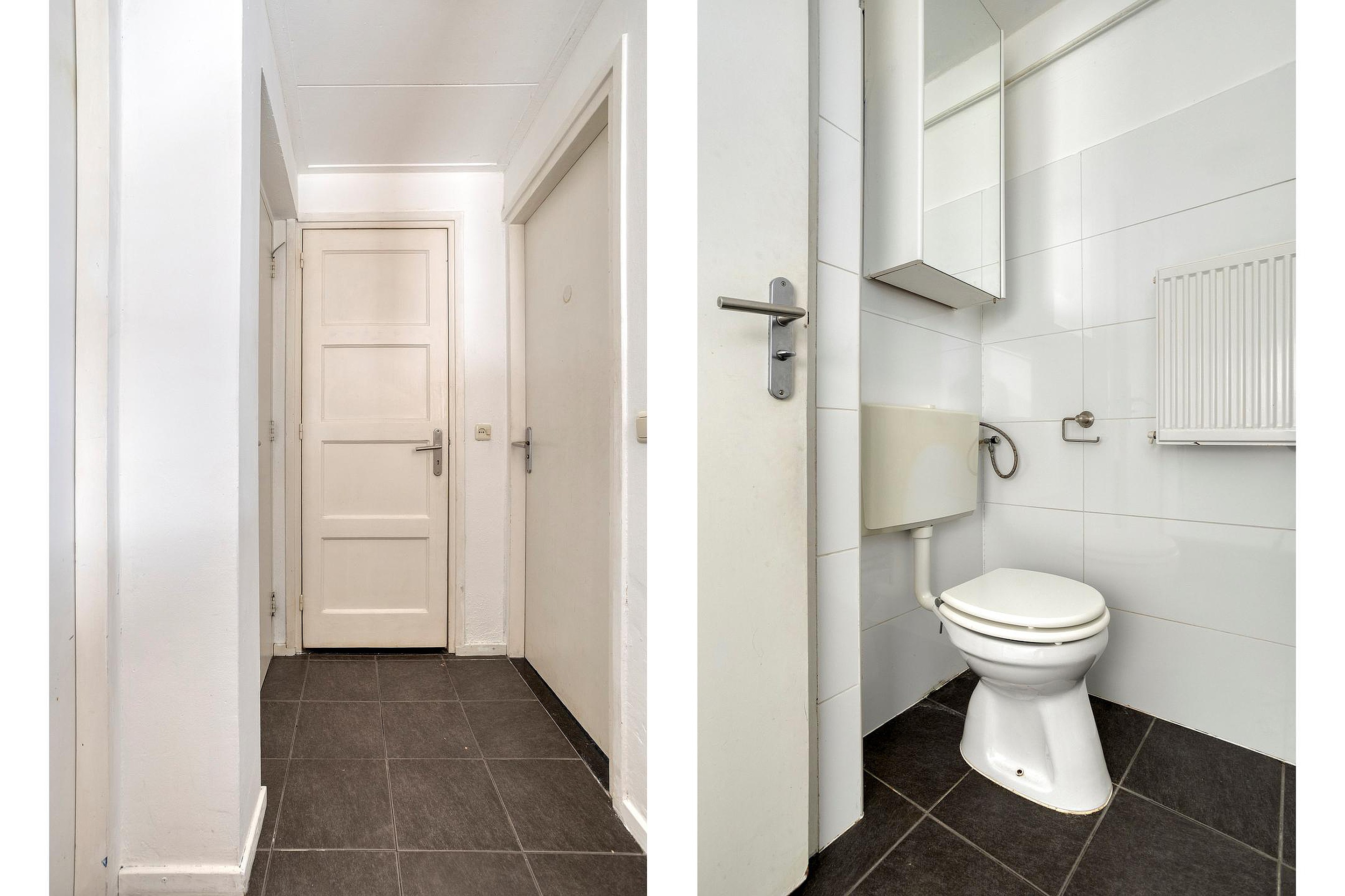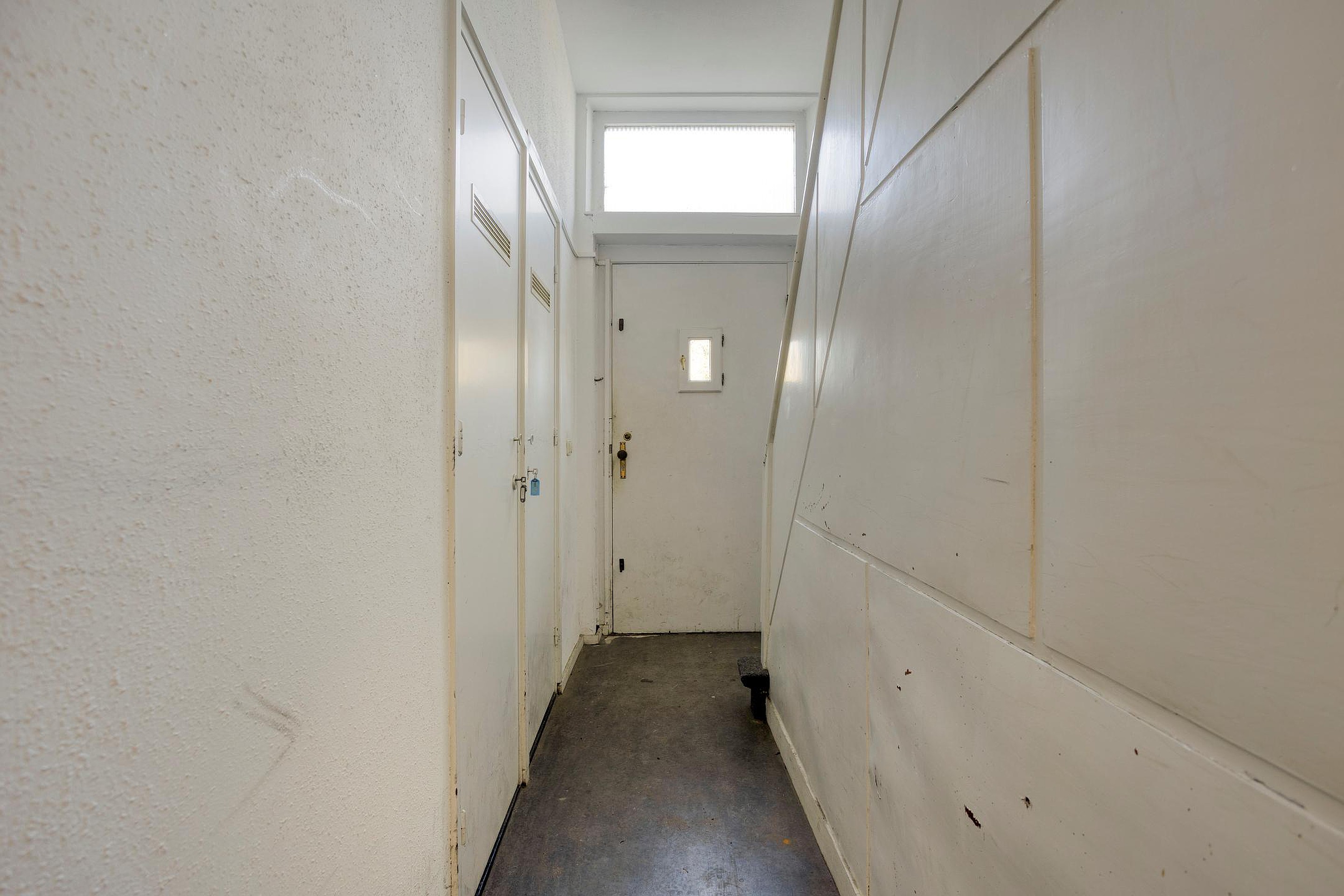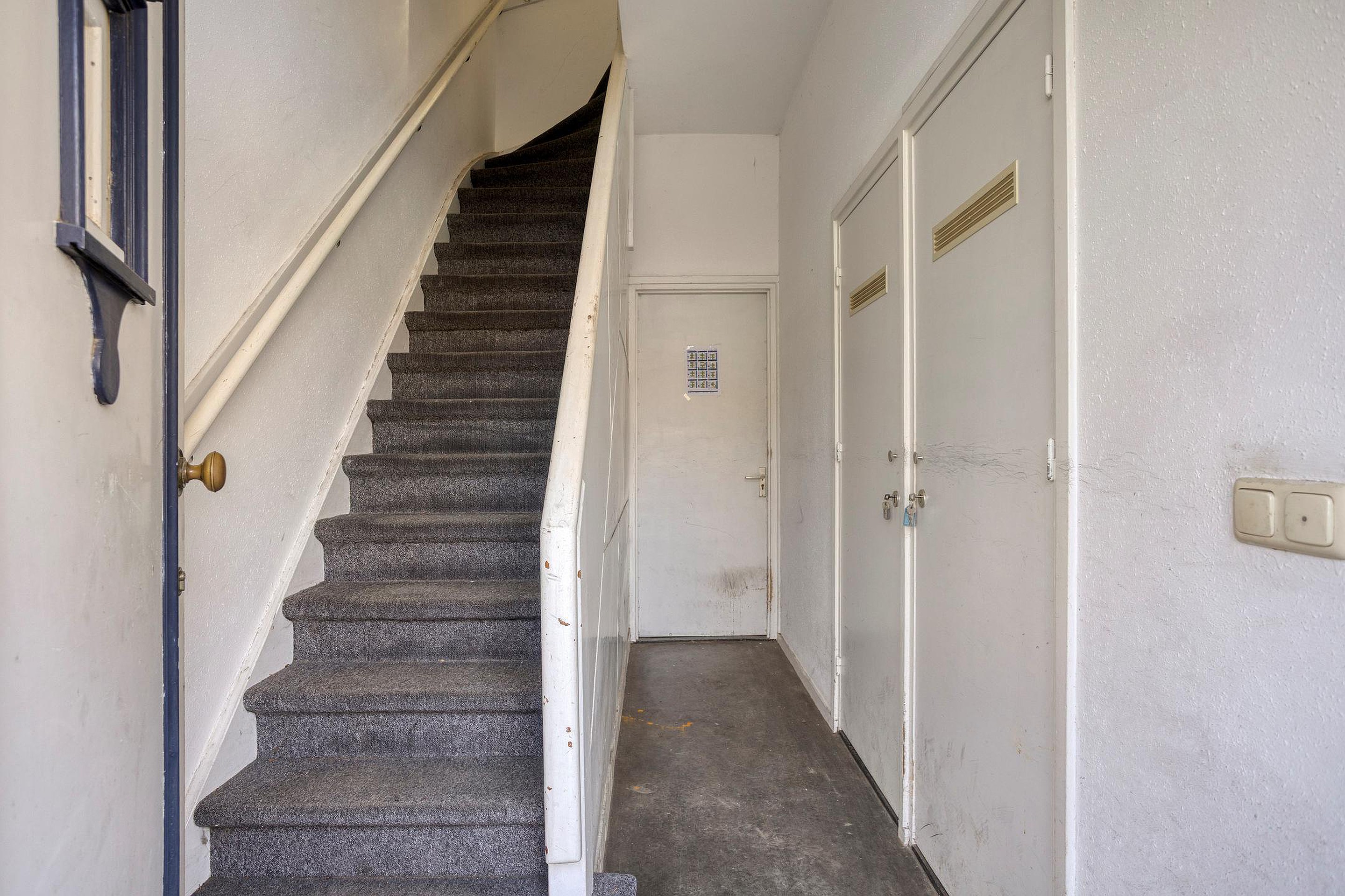 Gezamenlijke entree die toegang geeft tot de trapopgang naar de eerste verdieping, de meterkasten van beide appartementen en de gezamenlijk berging (ca.6m2) waar de fietsen gestald kunnen worden. Vanuit de berging bereikt u middels de trap de gezamenlijke kelder.