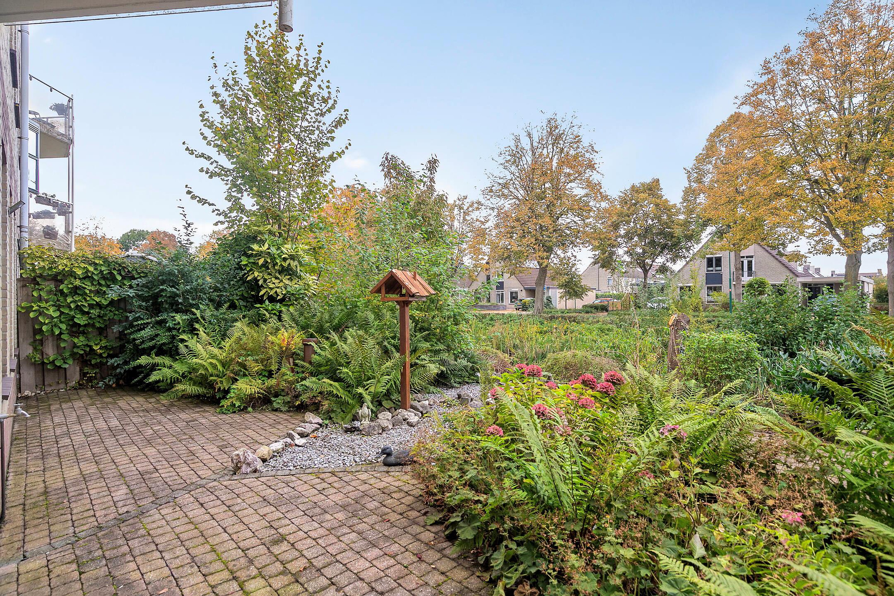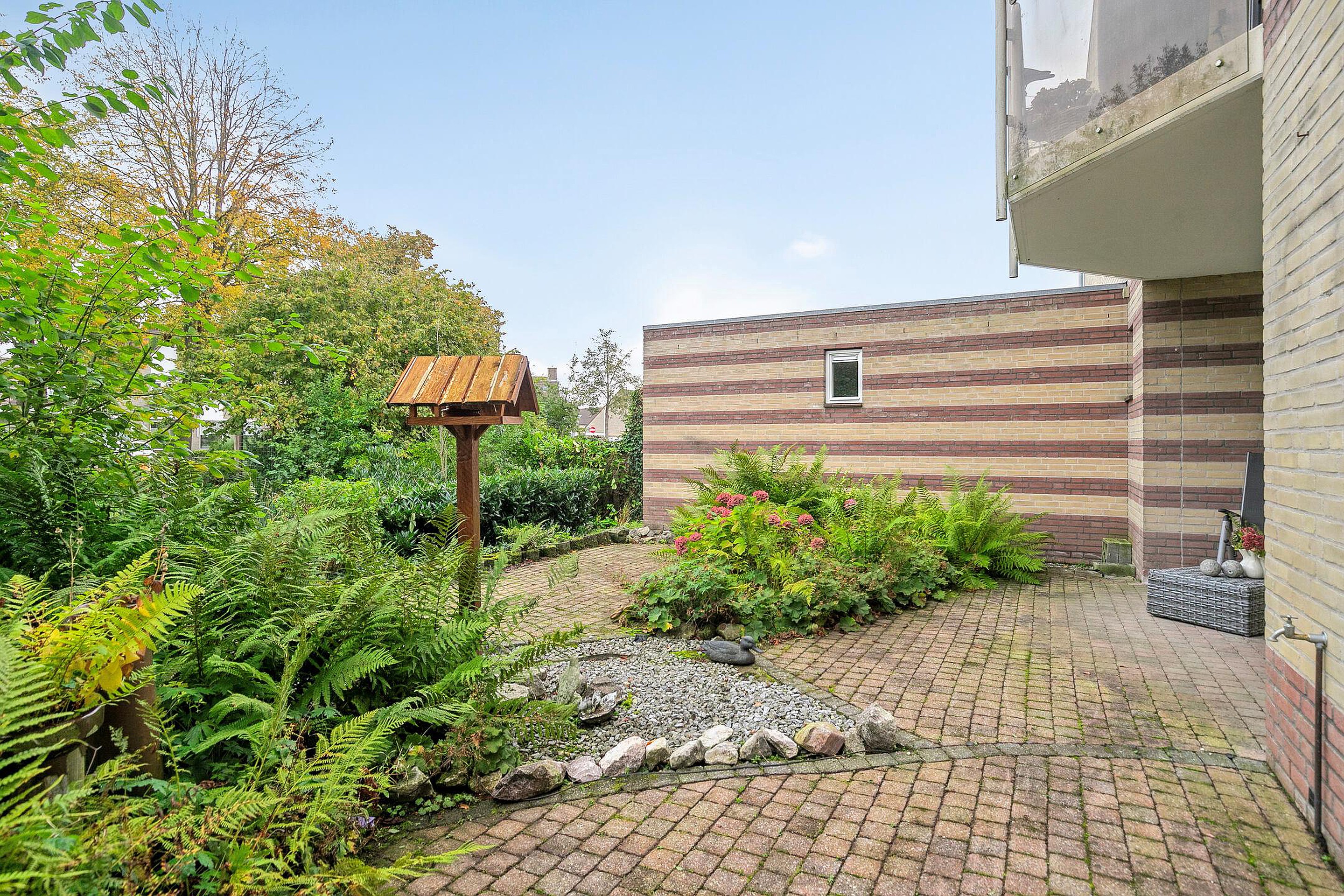 De fraai aangelegde tuin aan de achterzijde is een heerlijke verlenging van de woonkamer. U geniet er van volop privacy en groen uitzicht. Dankzij de overkapping kunt u hier het hele jaar door een beschut plekje vinden, terwijl de omringende beplanting zorgt voor een natuurlijke, rustige sfeer. Een plek waar u ongetwijfeld vaak te vinden zult zijn met een kop koffie of een goed boek.