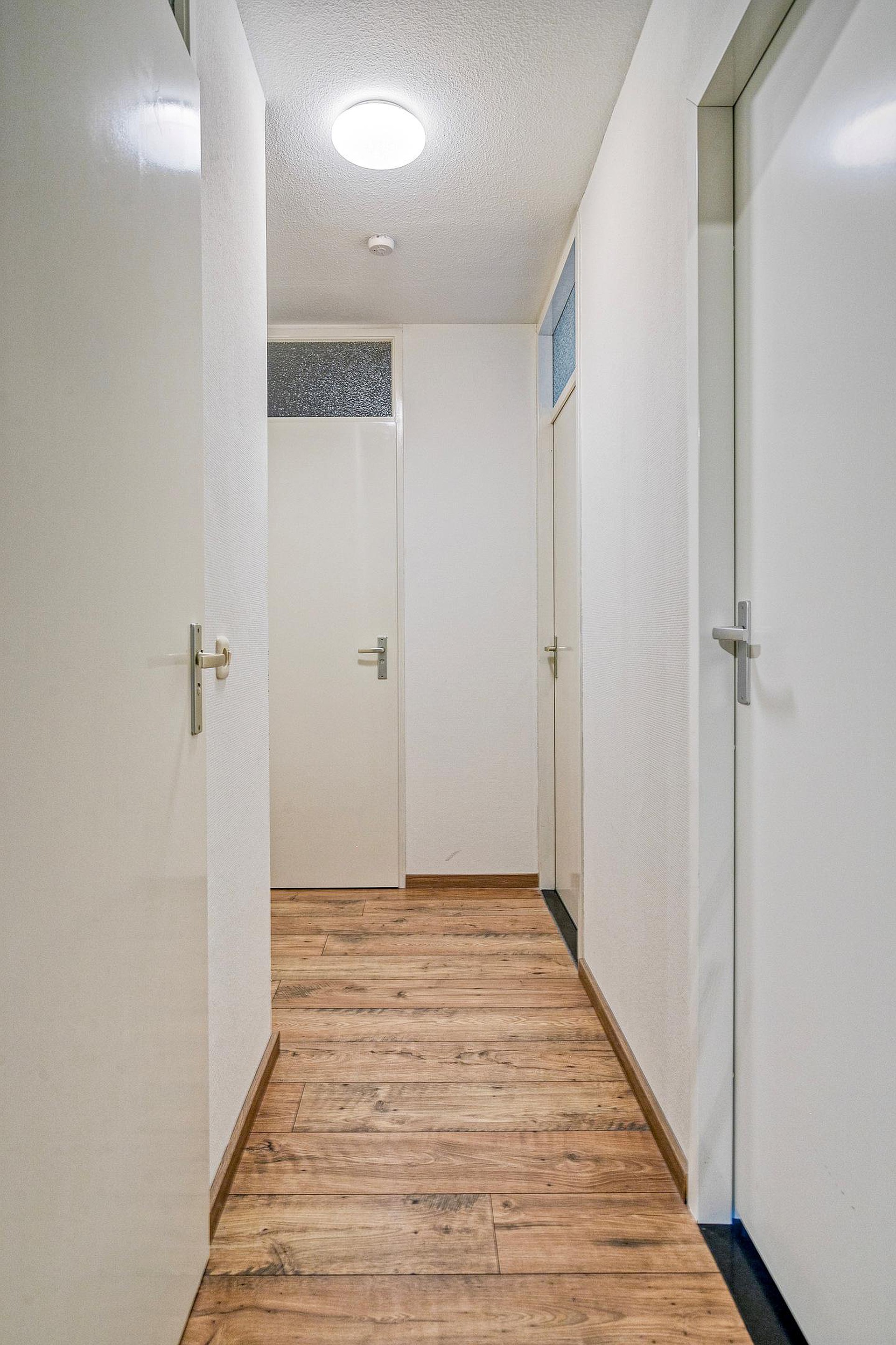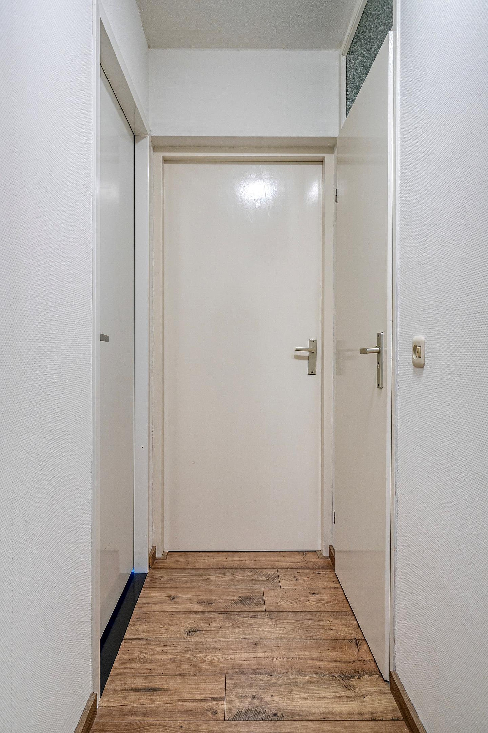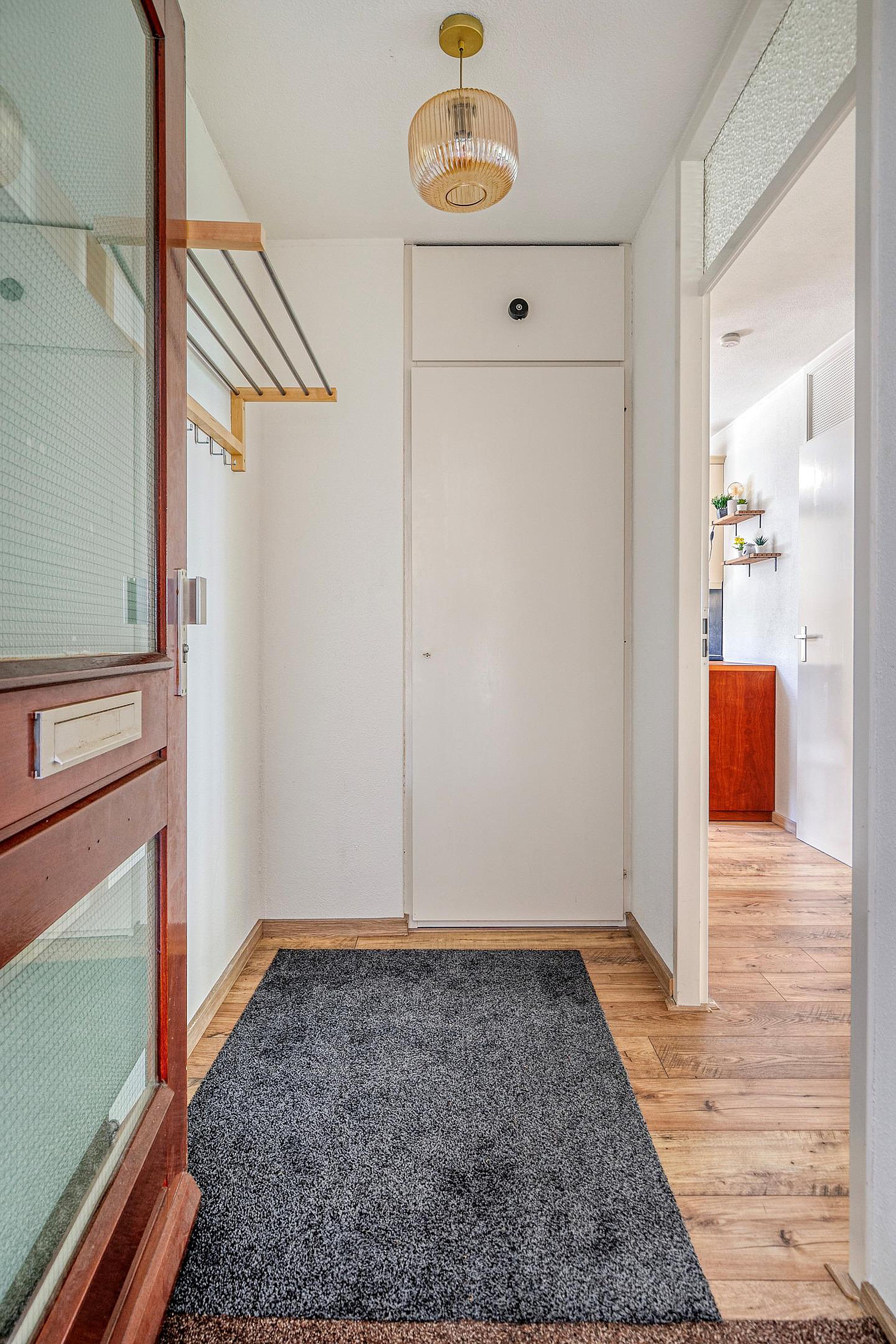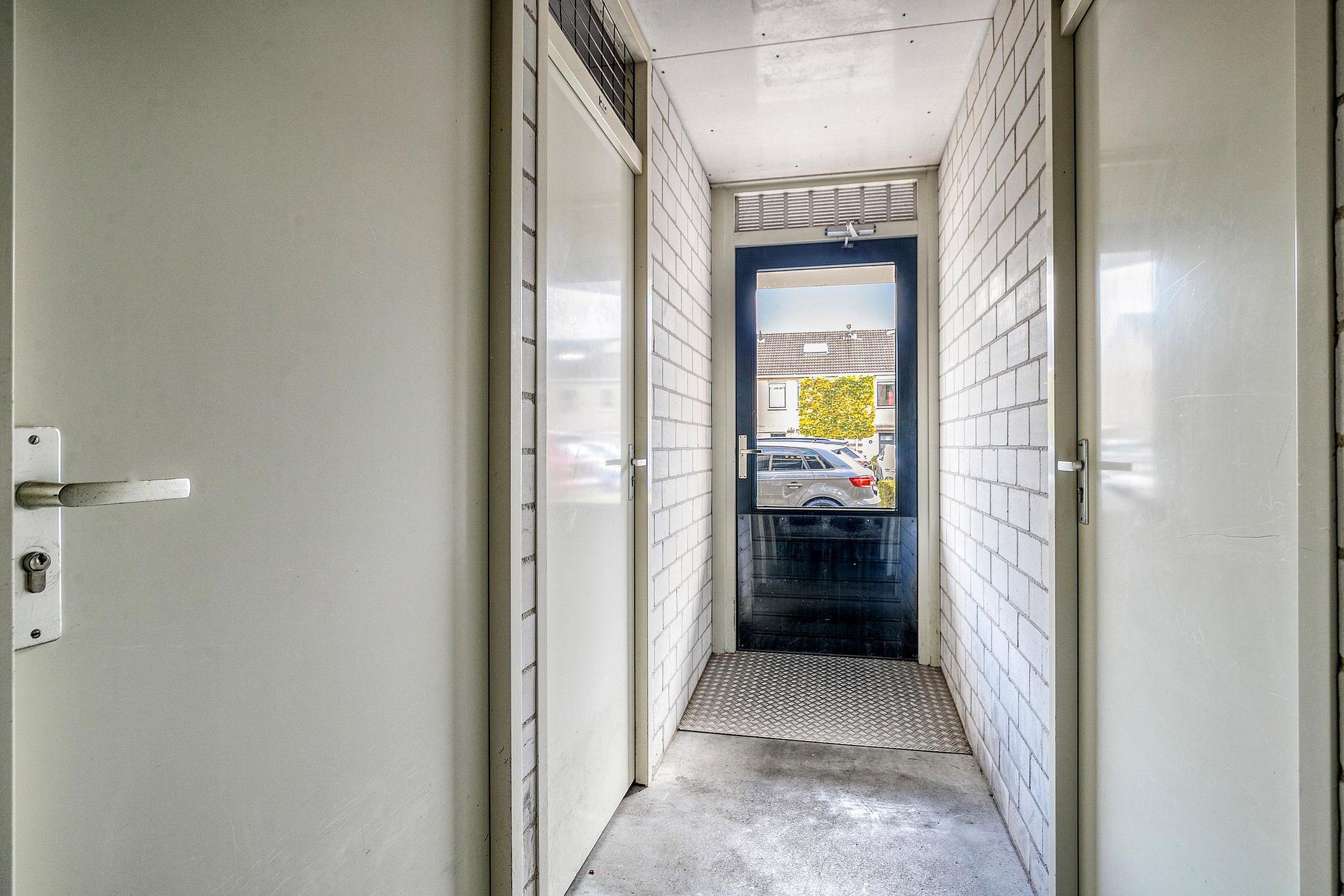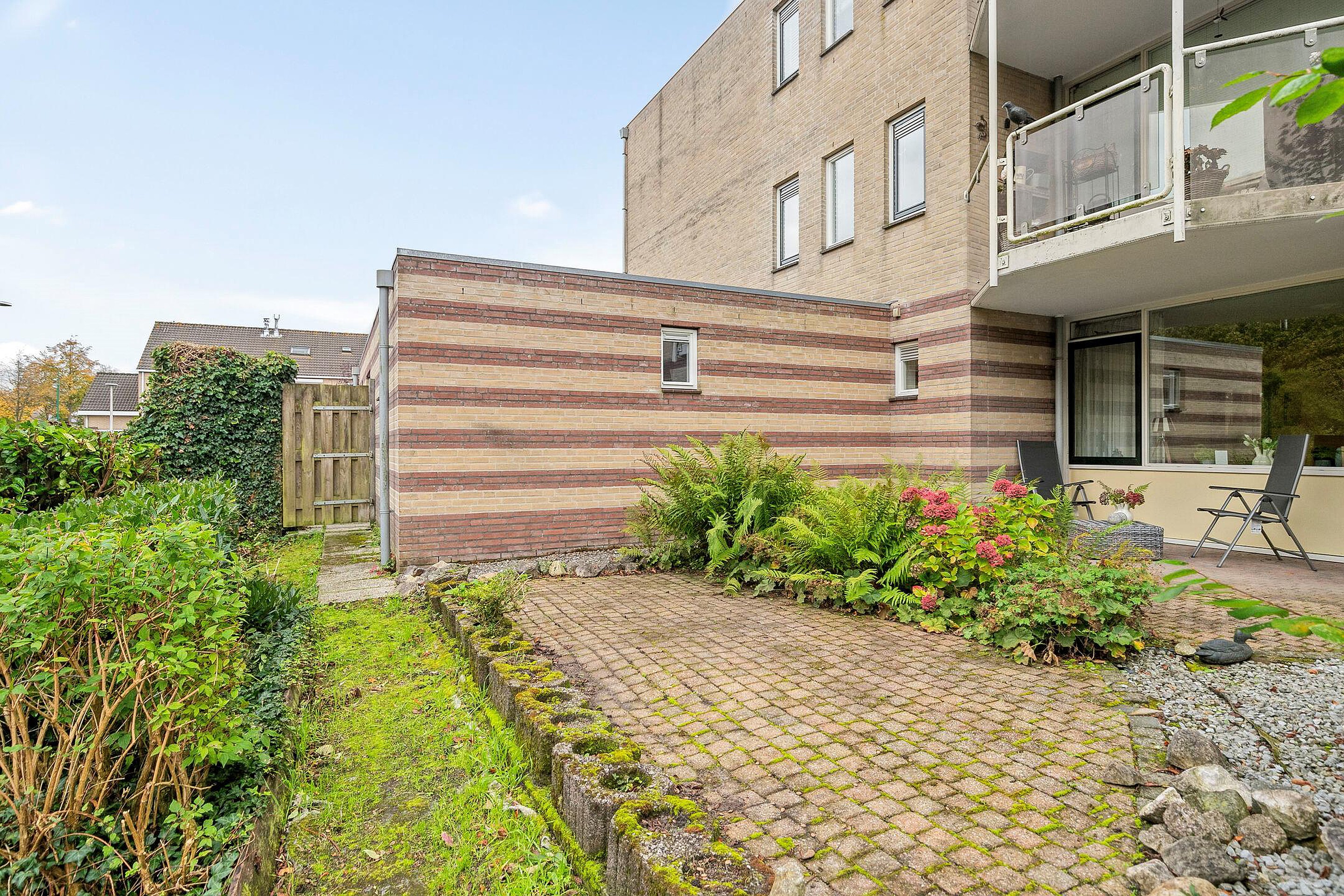 Via de nette, gemeenschappelijke entree met brievenbussen en bellentableau bereikt u het appartement op de begane grond. Alles bevindt zich hier op loopniveau, zonder trappen of liften – ideaal voor wie comfort en gemak hoog in het vaandel heeft staan. Bij het appartement hoort tevens een externe berging en een eigen parkeerplaats, zodat u altijd dichtbij kunt parkeren.