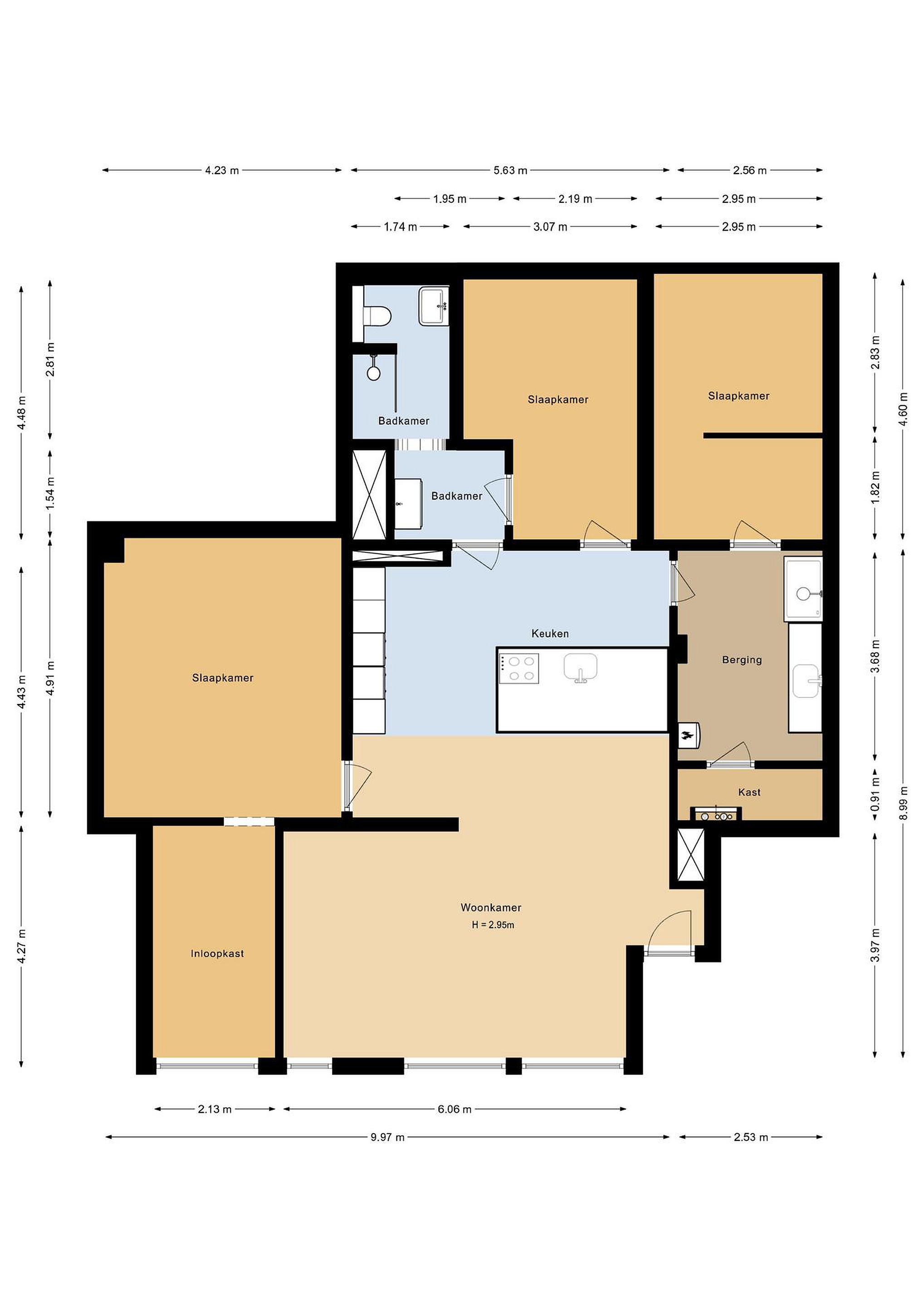 ✔ 5 kamers, waaronder 3 ruime slaapkamers en een extra werkkamer/inloopkast