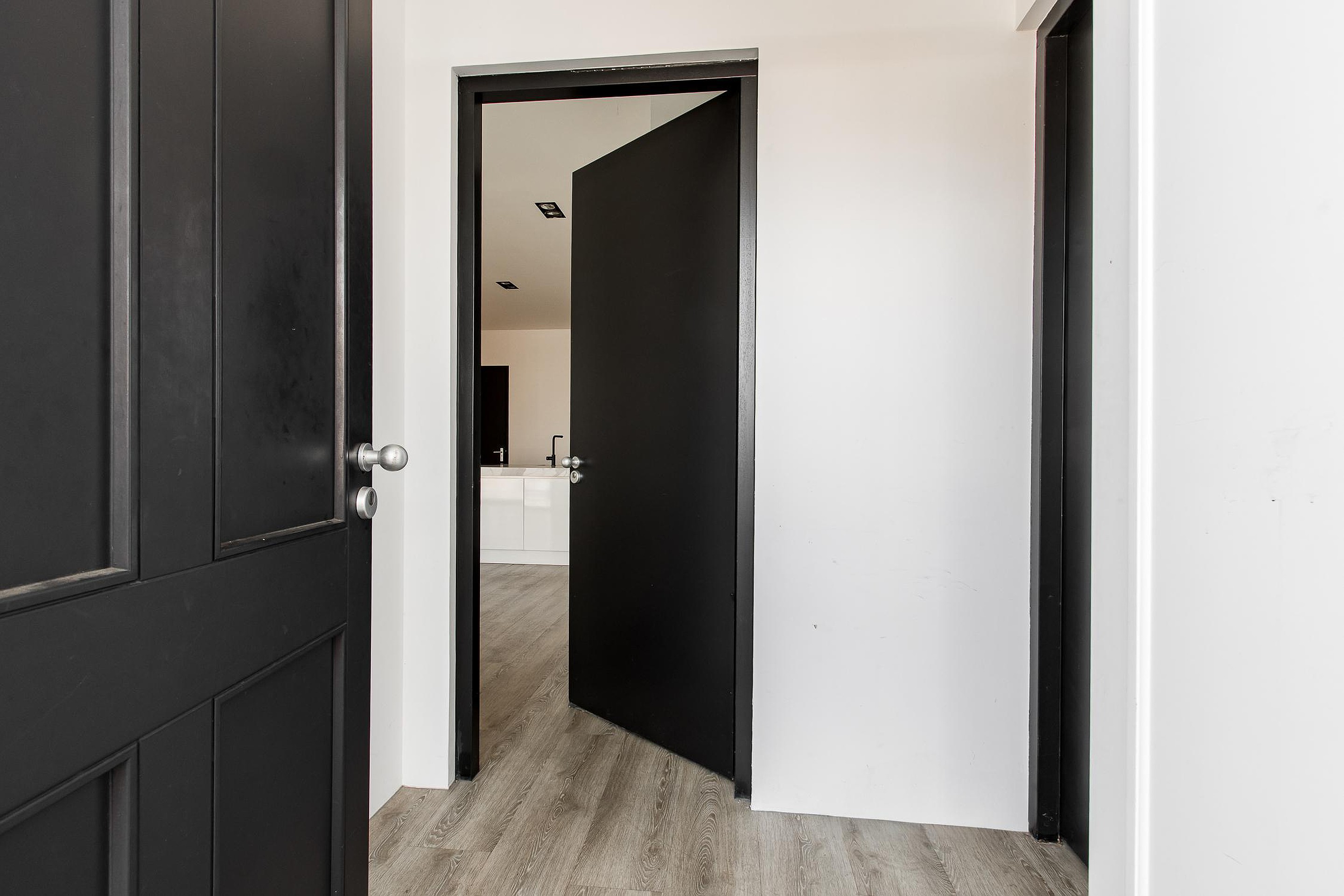 Hoofdslaapkamer: Aan de voorzijde van het appartement ligt de ruime master bedroom (ca. 20 m2) met directe toegang tot een extra kamer van ca. 9 m2, ideaal als inloopkast of kantoor.