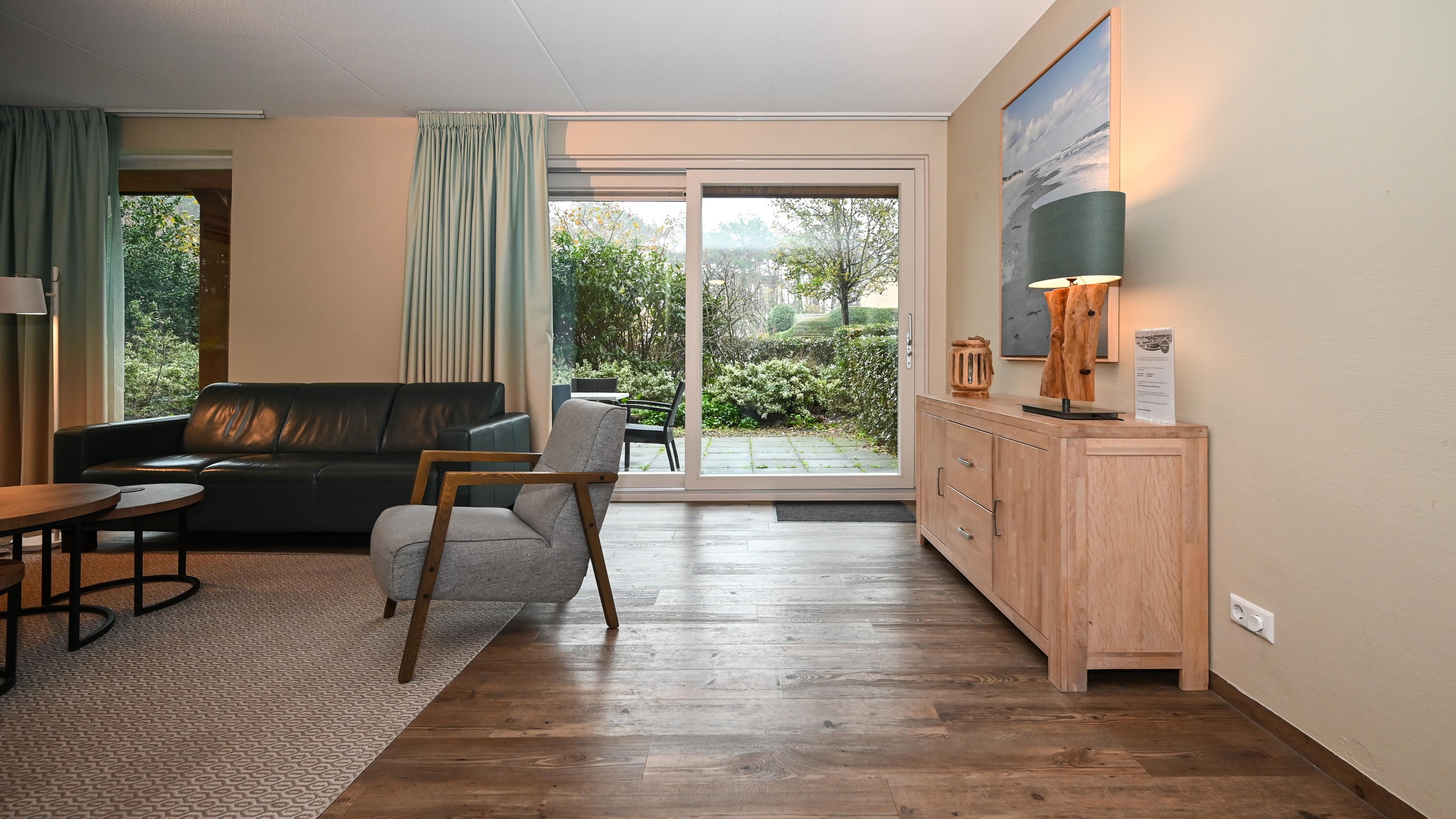Bij binnenkomst betreedt u een sfeervolle, royaal opgezette woonkamer met aangrenzend een open keuken, compleet met eettafel en voorzien van alle moderne gemakken. Het appartement biedt drie comfortabele tweepersoonsslaapkamers met boxspringbedden, waarvan er twee direct toegang geven tot het terras dankzij een schuifpui. Verder beschikt appartement 15 over een separate toiletruimte en een badkamer met ligbad, douche, wastafel en een ruime Finse sauna. Daarnaast is er een praktische bergkast aanwezig met een was-droogcombinatie, ideaal voor een langer verblijf. Tot slot bevindt zich in het appartement een afsluitbare eigenarenkast waar u persoonlijke spullen kunt opbergen.
