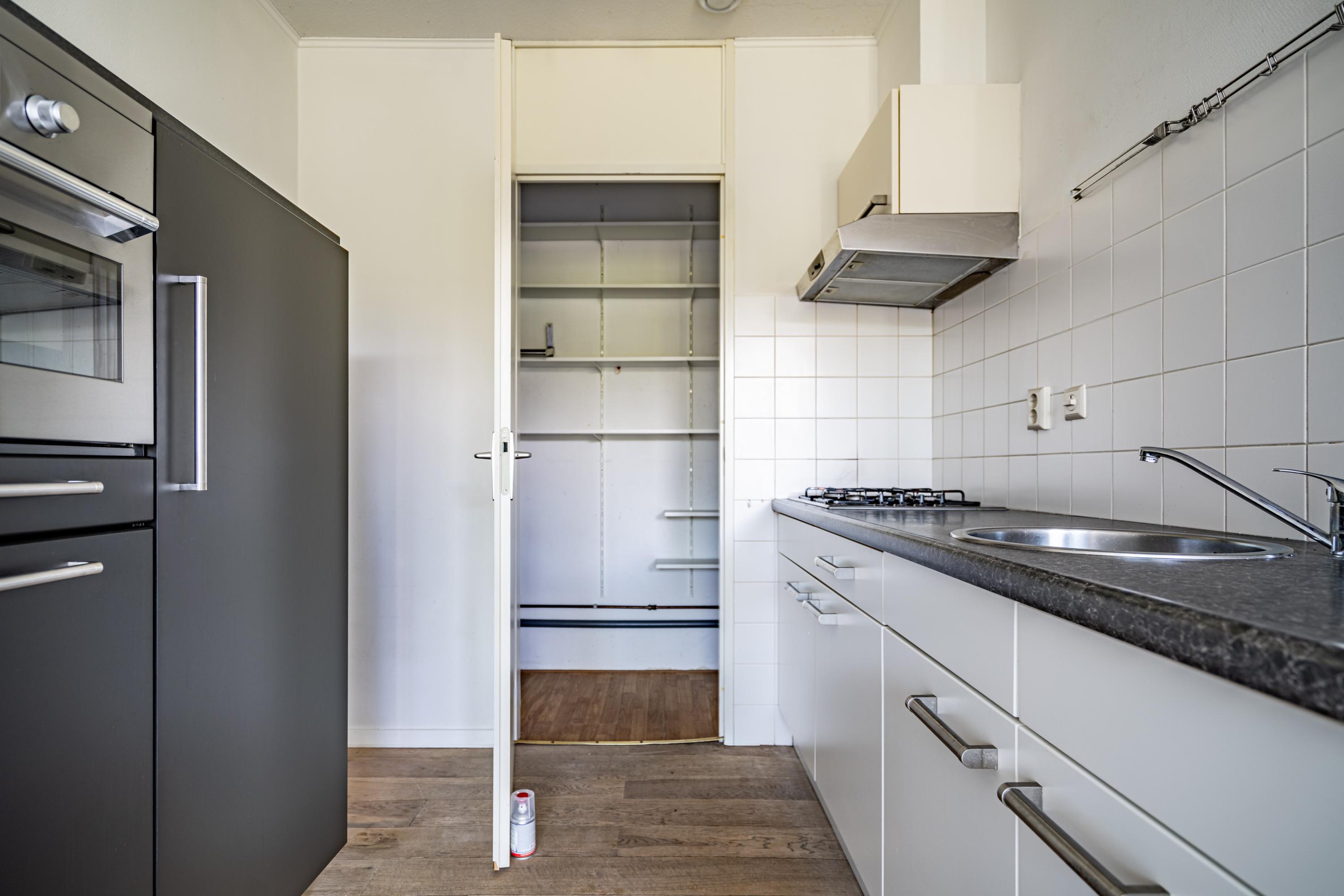 De keuken heeft een rechte opstelling en is voorzien van diverse inbouwapparatuur. Vanuit de keuken is ook een bergkast bereikbaar waar de CV-installatie zich bevindt.