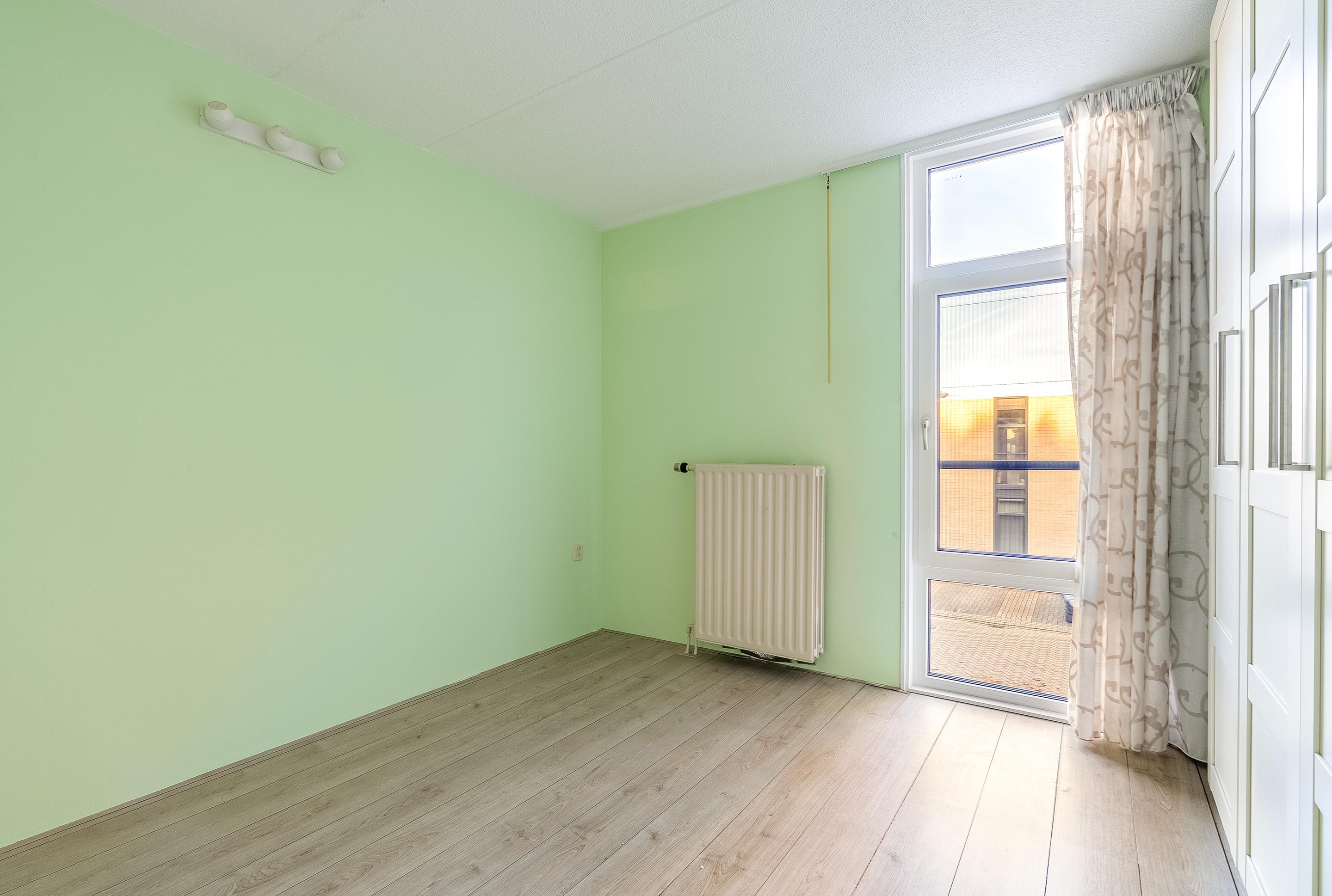 De slaapkamer is ruim genoeg voor het plaatsen van een ruime kledingkast en een tweepersoonsbed. Vanuit de slaapkamer bereiken we de badkamer welke recent opgeknapt is.