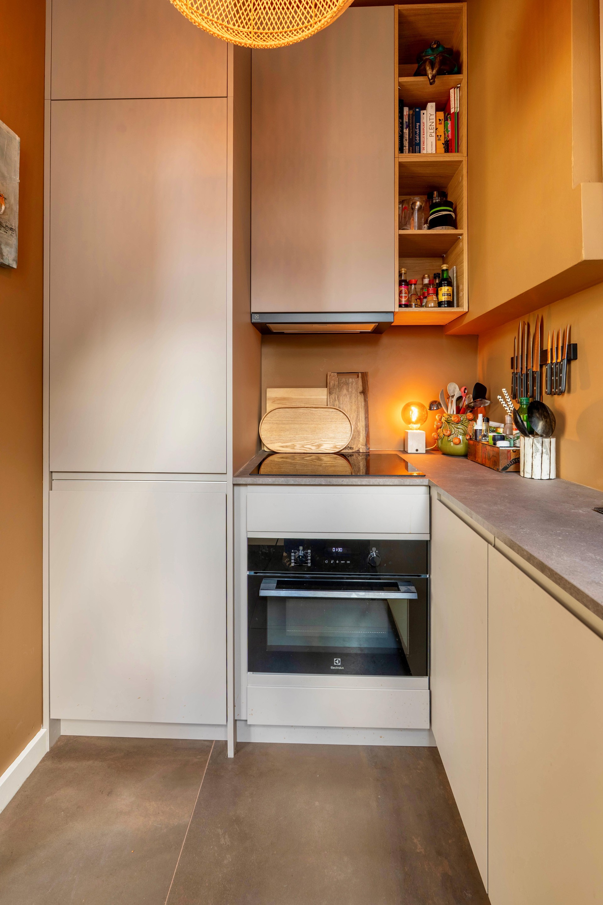 De halfopen keuken is recent volledig vernieuwd en uitgevoerd in een moderne en rustige stijl. Voorzien van diverse inbouwapparatuur, waaronder een elektrische kookplaat, oven, afzuigkap, koelkast, vaatwasser, wasmachine en Quooker. Praktisch ingedeeld en naadloos passend bij de uitstraling van de woning. De badkamer is eveneens recent vernieuwd en centraal gelegen. Uitgevoerd met een inloopdouche, toilet en wastafel. Fris, comfortabel en eigentijds afgewerkt.