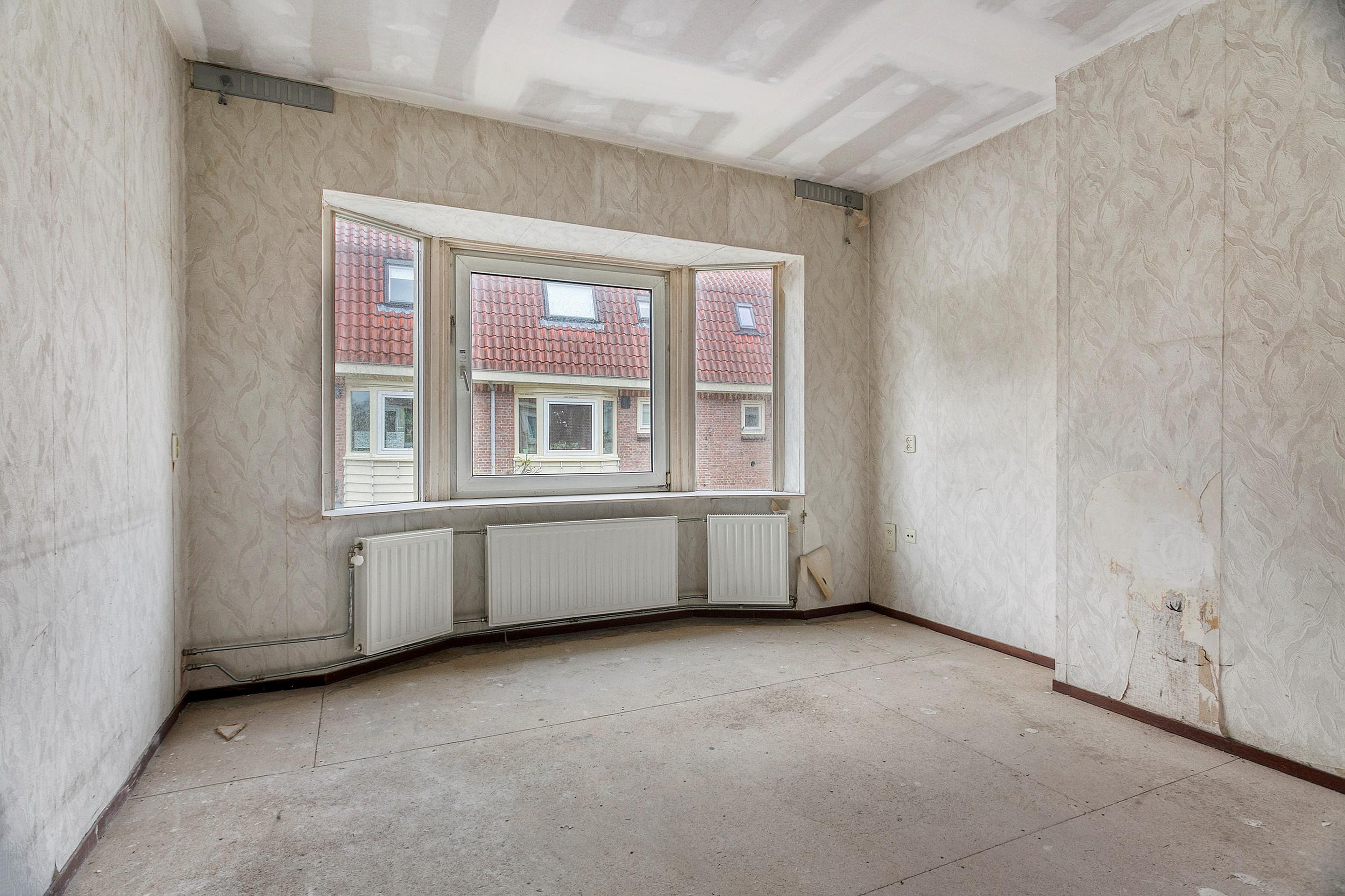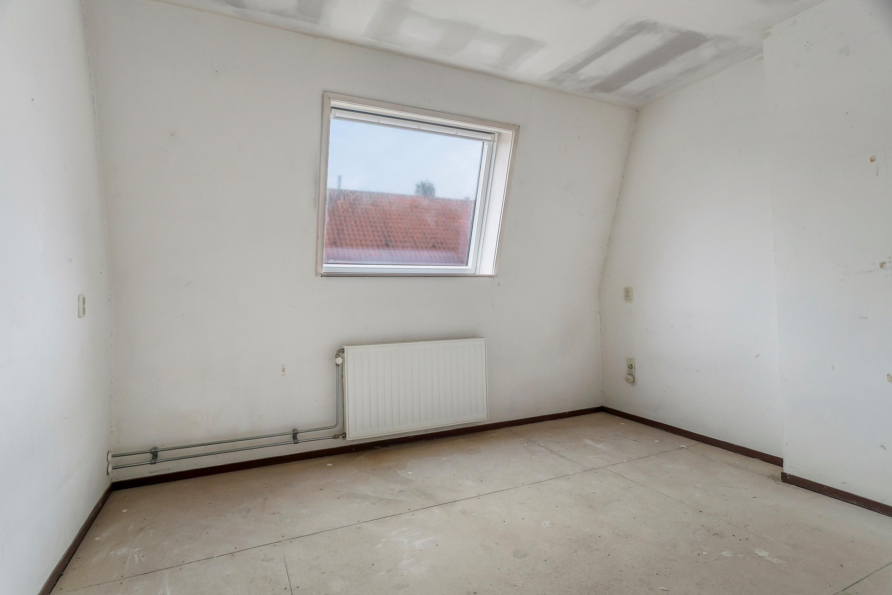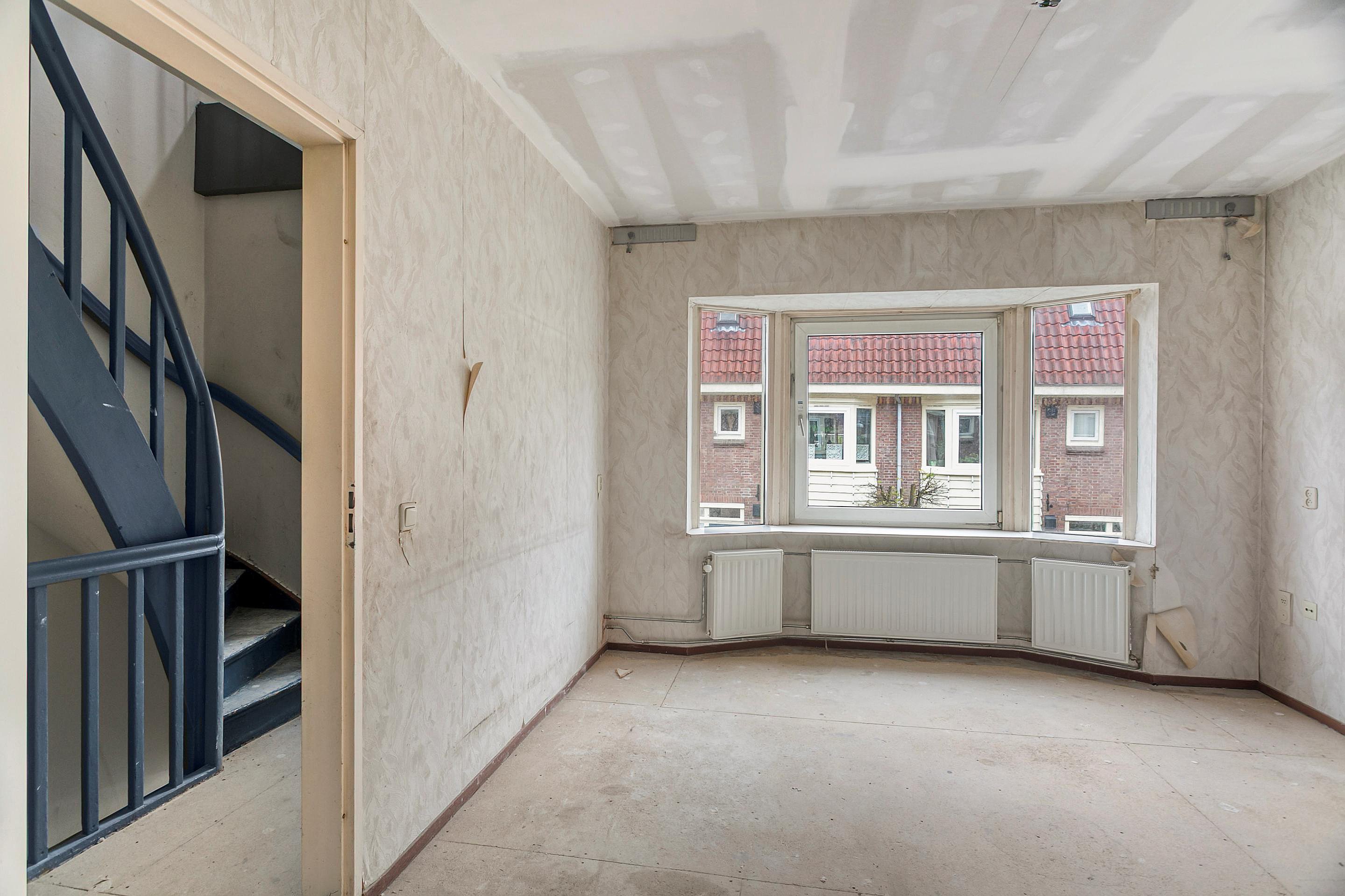 De interne trap leidt naar de eerste verdieping. Hier bevindt zich de woonkamer, met ruimte voor een zit- en eethoek en ramen aan de voorzijde die zorgen voor een prettige lichtinval.