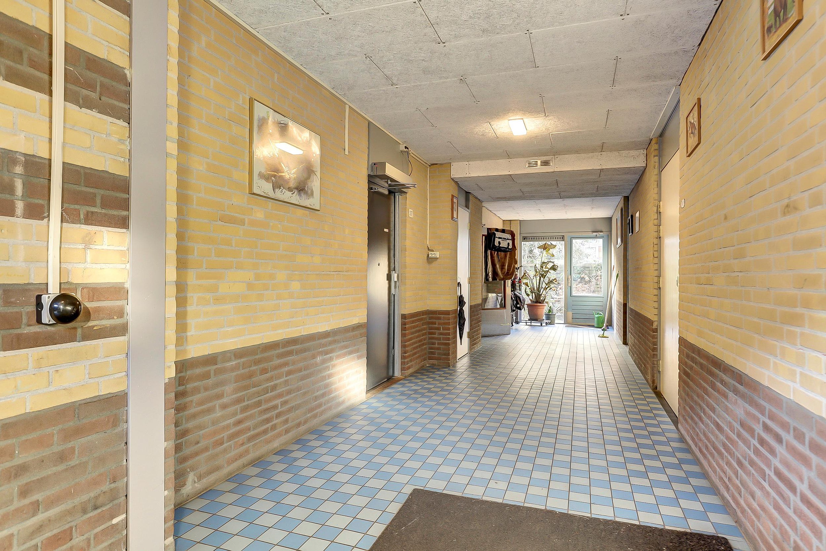 Een ruime eigen berging op de begane grond dicht bij de algemene entree. Ook nog een grote groene binnentuin om even tot rust te komen van de hectiek van de grote stad.