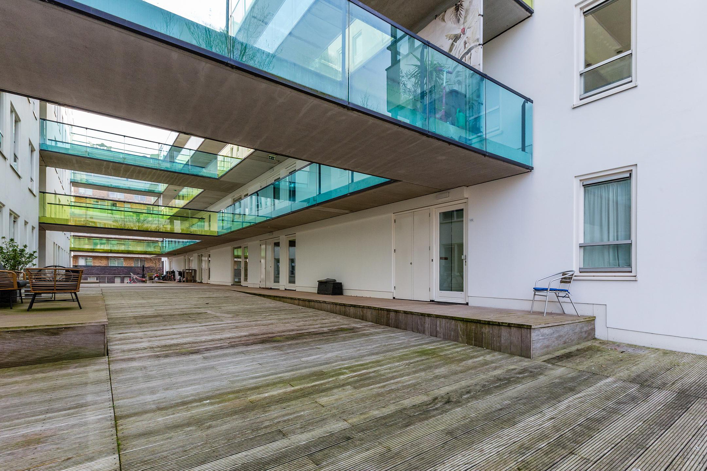 The complex was built in 2008 and offers a high level of comfort and security, including multiple elevators, a C-lock key system, communal bicycle storage area, and a spacious secured entrance with intercom. It is no coincidence that apartment complex De Meester was nominated in 2010 for the Amsterdam Architecture Prize, the Gouden A.A.P.