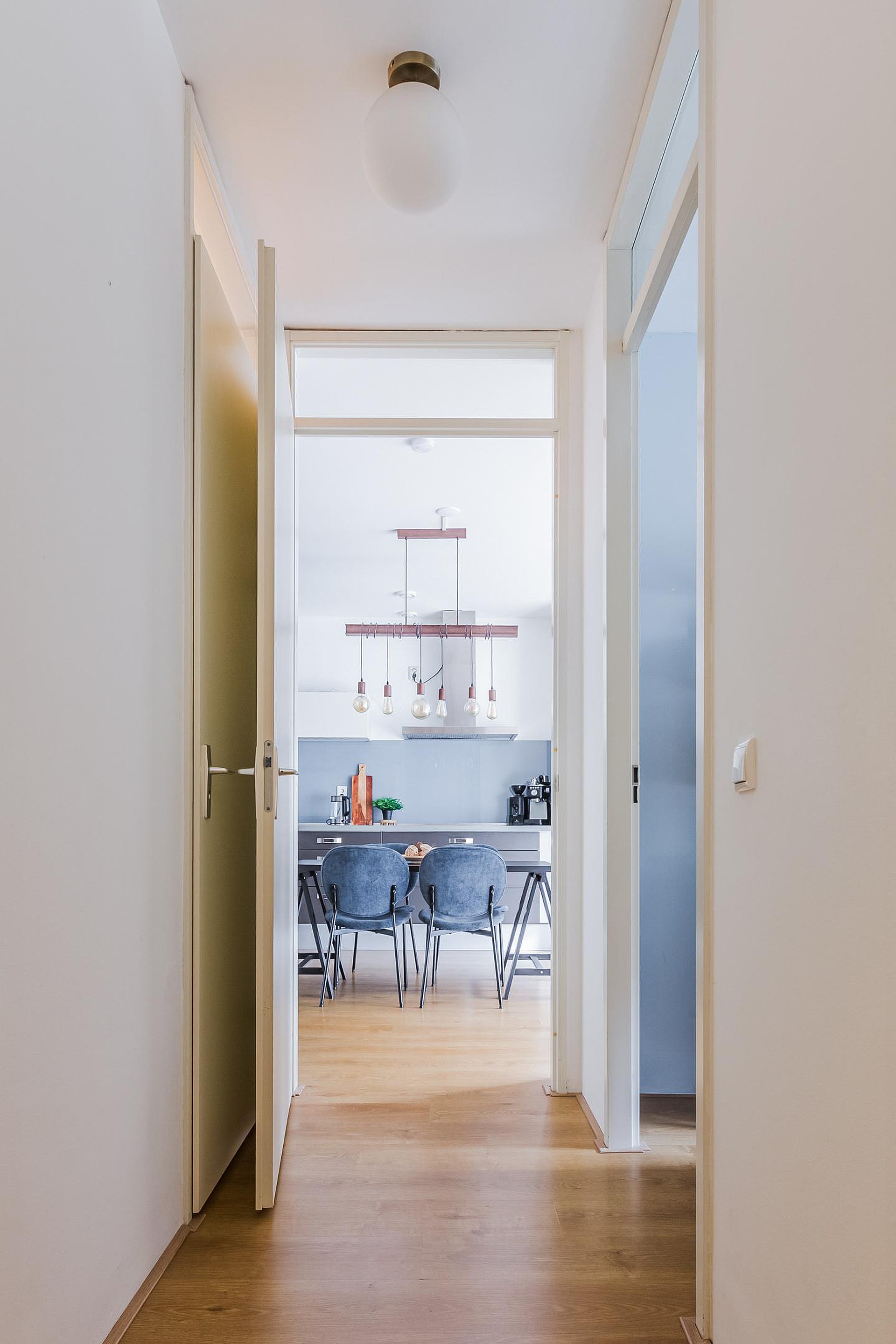 Via the second hallway, you reach the remaining rooms: two bright bedrooms, a well-maintained bathroom with washbasin and bathtub, a separate toilet with small sink, and a separate laundry/drying room. The continuous flooring throughout the apartment creates a calm and well-finished appearance. In addition, the apartment is equipped with mechanical ventilation, multiple smoke detectors, and there is the option for a fibre-optic internet connection.