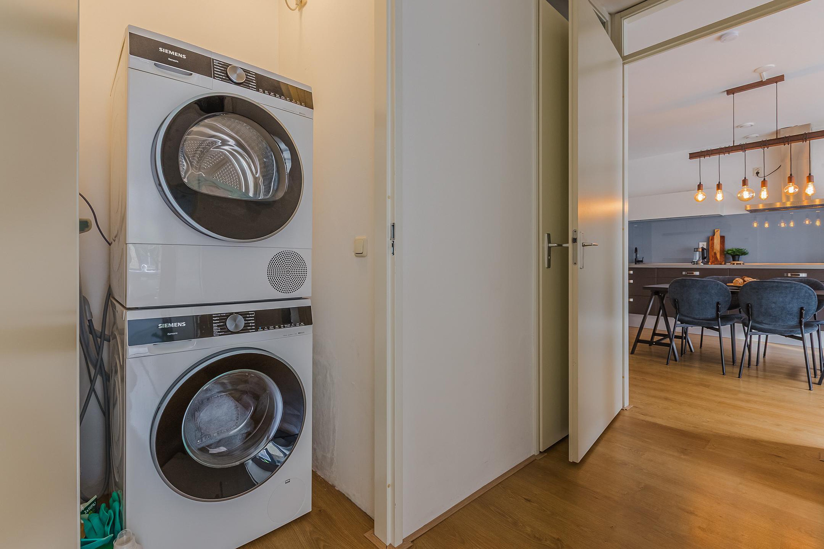 - Inpandige berging met aansluitingen voor wasmachine en droger;