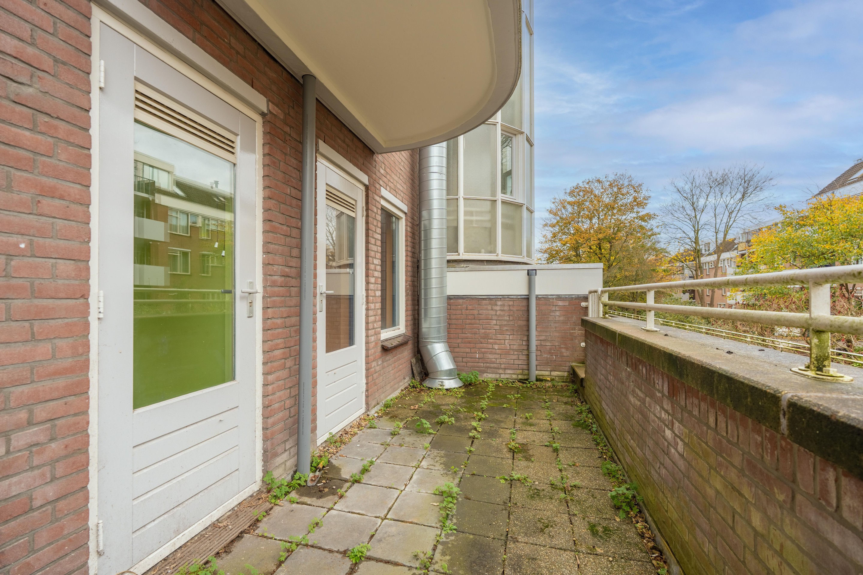 Aan de achterzijde liggen nog twee slaapkamers, waarvan allebei directe toegang heeft tot het balkon. Dit balkon ligt op het noorden en biedt een rustige plek in de middag- en avondzon. Aan deze kant van het gebouw kijk je uit op de gezamenlijke binnentuin: een groene, verzorgde plek die uitsluitend toegankelijk is voor bewoners.