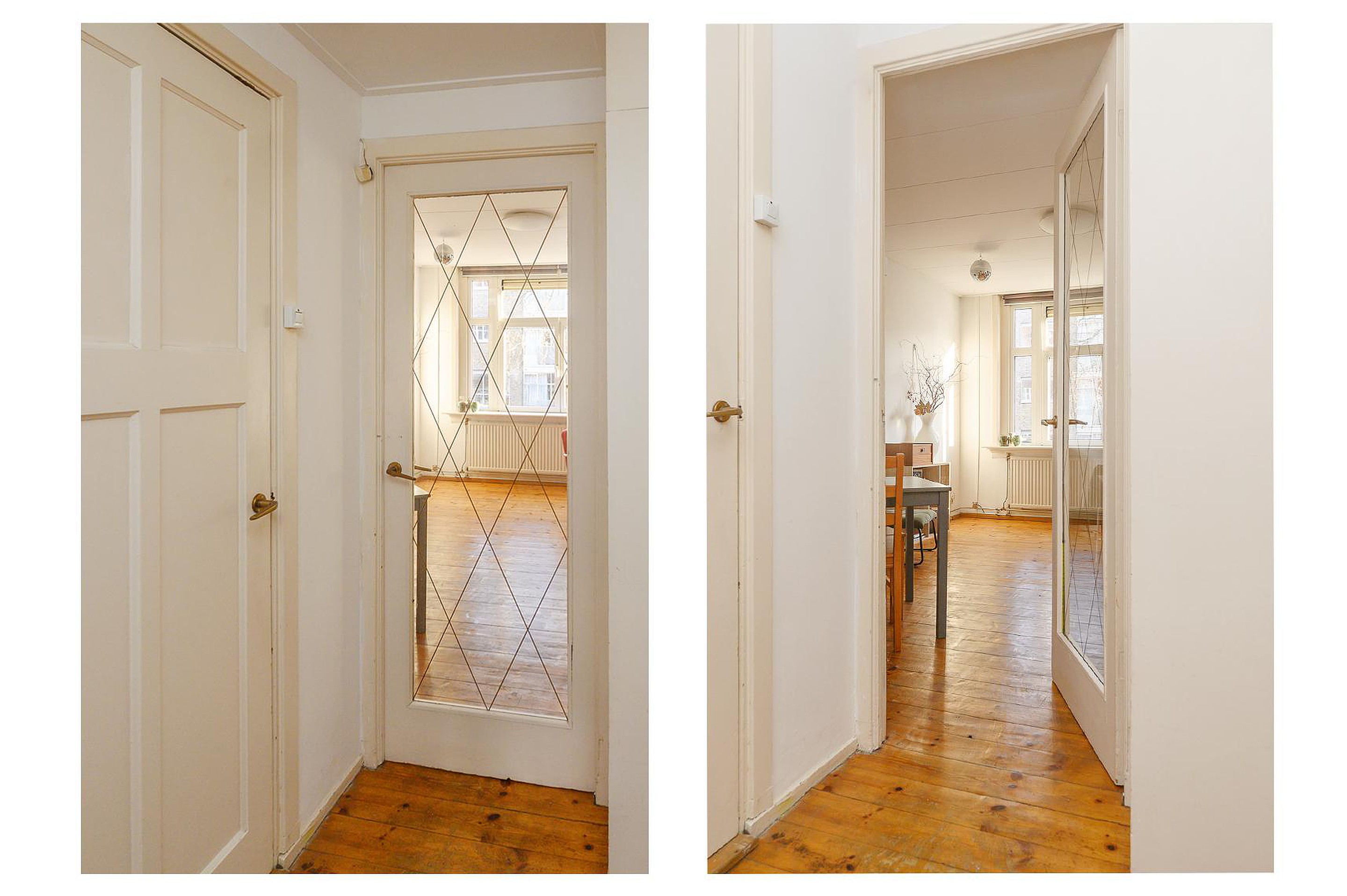 Het appartement is voorzien van kunststof kozijnen met dubbele beglazing aan de voorzijde en aan de achterzijde van houten kozijnen met dubbele beglazing.