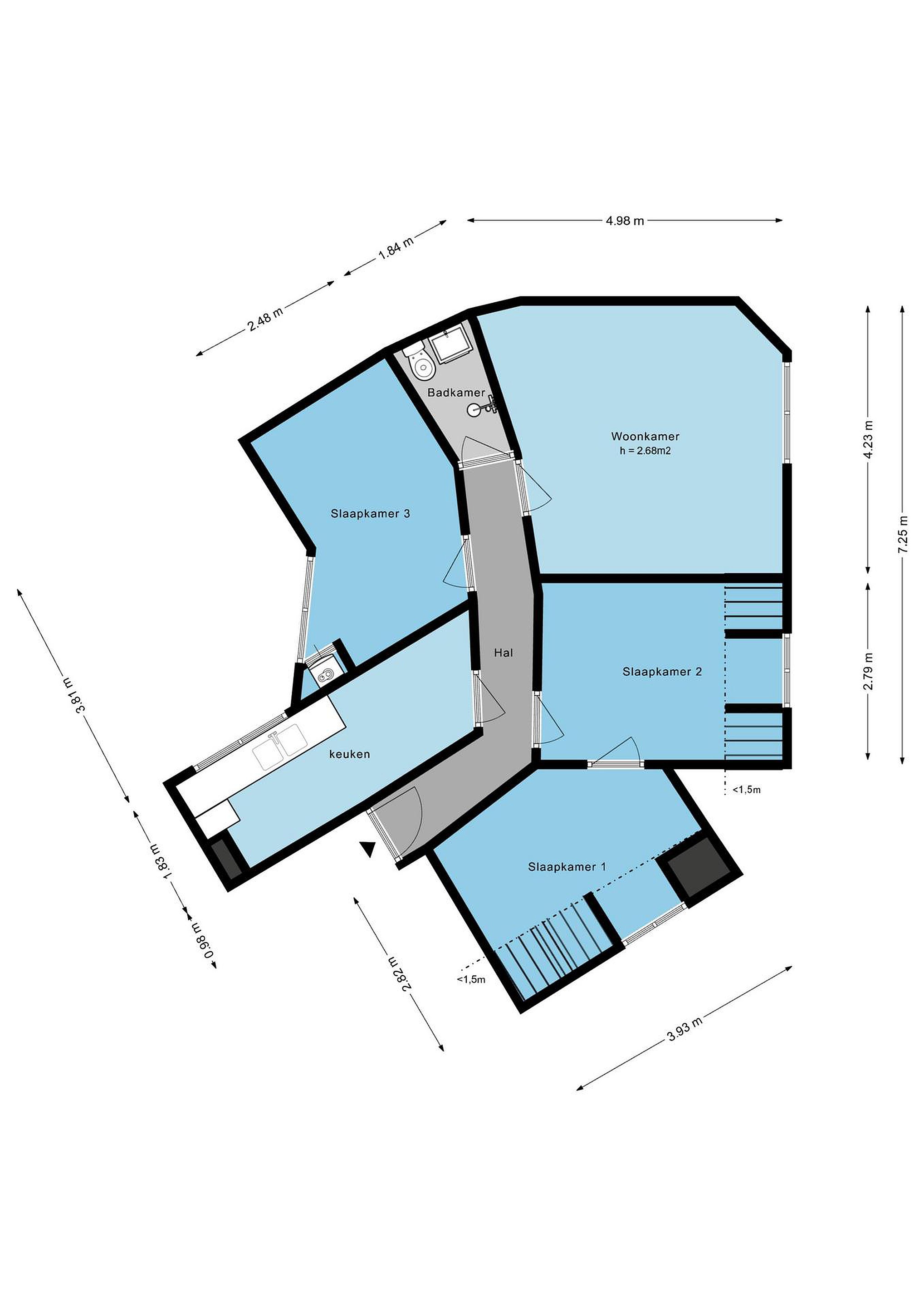 - Drie slaapkamers;