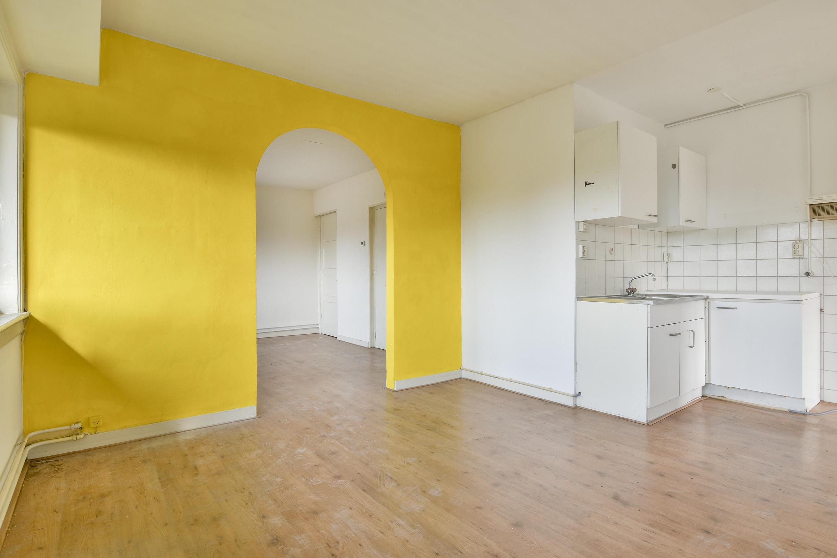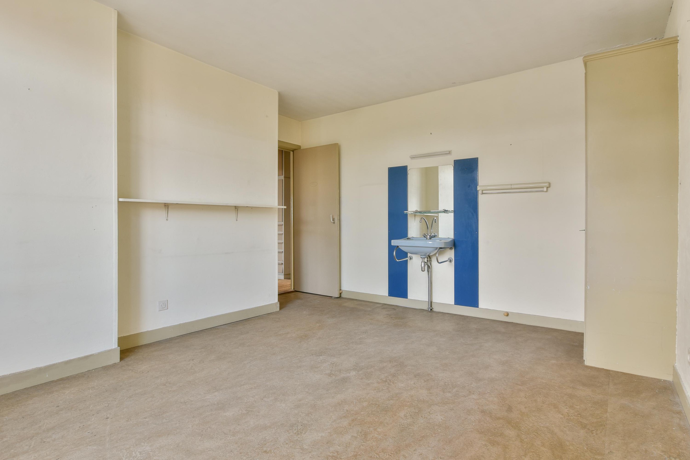 Aangrenzend bevindt zich de keuken, uitgerust met een eenvoudig keukenblok. Zowel de keuken als de slaapkamer bieden toegang tot het tweede balkon aan de oostzijde, ideaal voor een ontbijt in de ochtendzon.