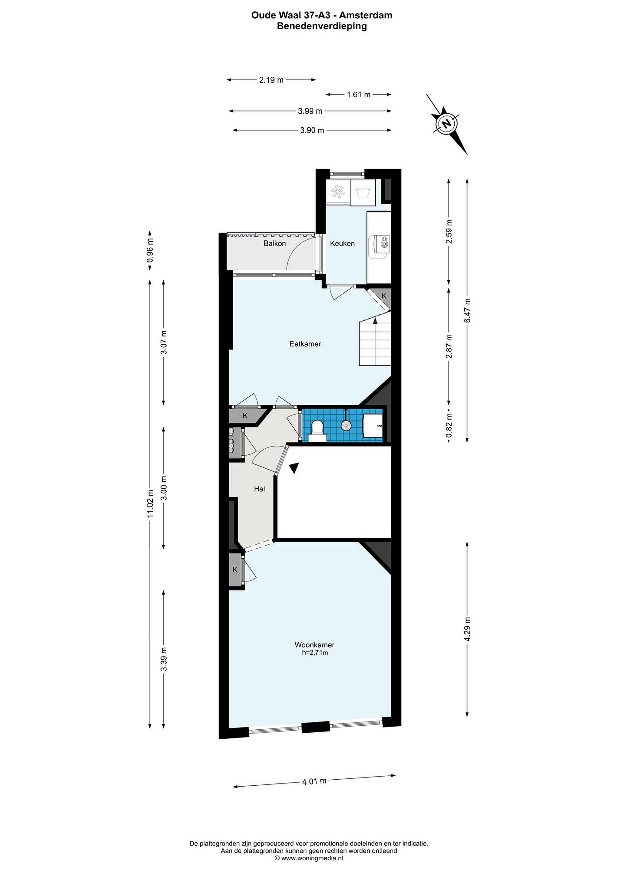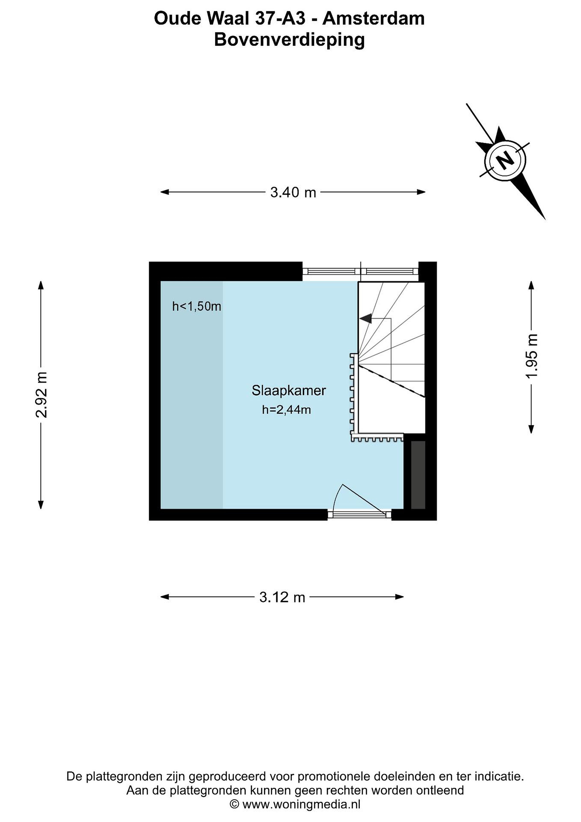Woonoppervlakte: 40.5 m2 + 7.6 m2 extra kamer