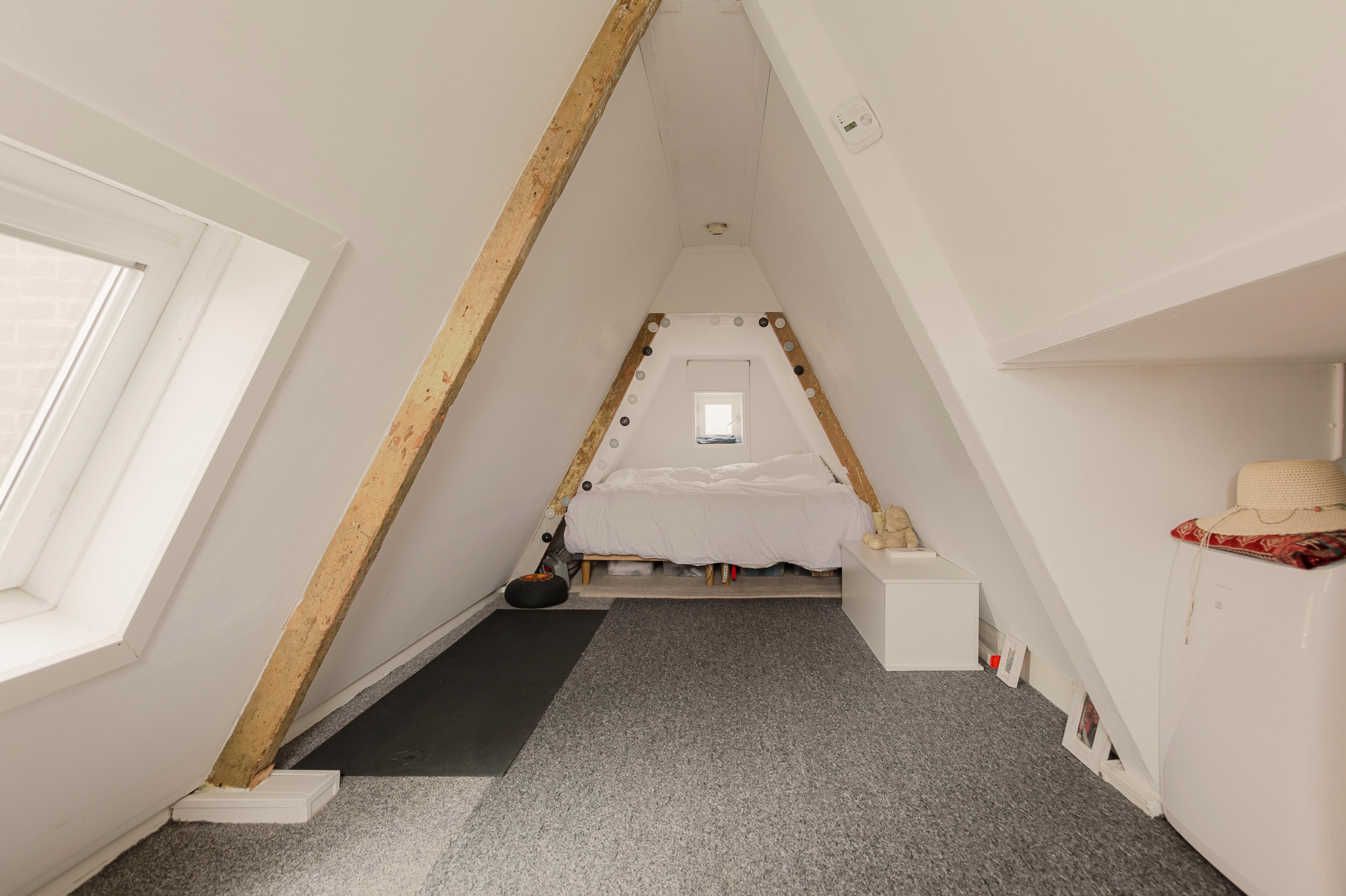 Echter hier is er ook nog een kapverdieping waar de slaapgelegenheid is.